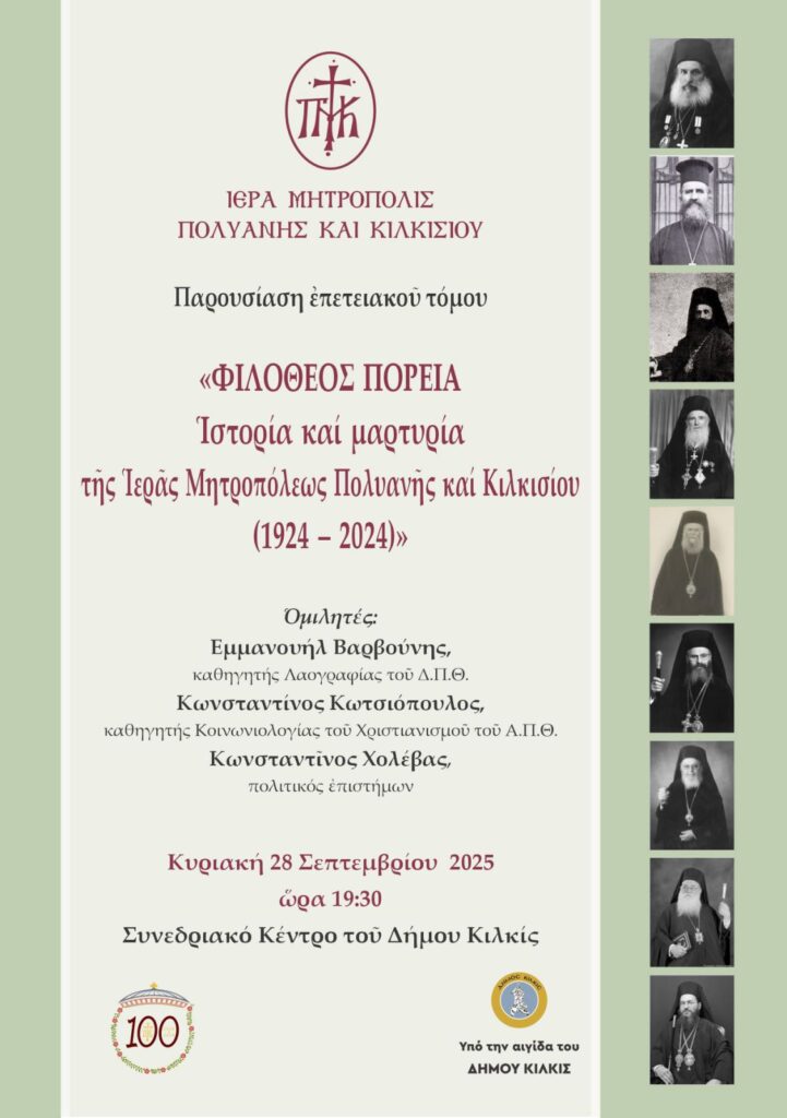 Παρουσίαση Επετειακού Τόμου της Ι. Μητροπόλεως Πολυανής και Κιλκισίου για την εκατονταετηρίδα