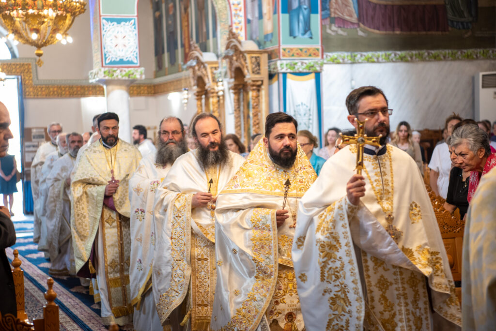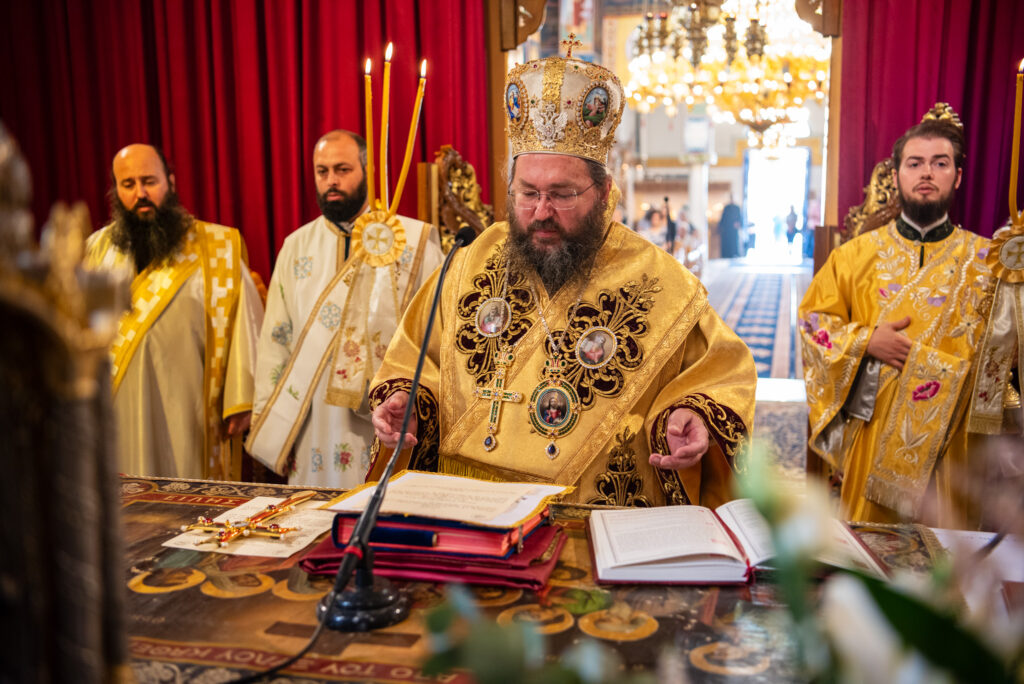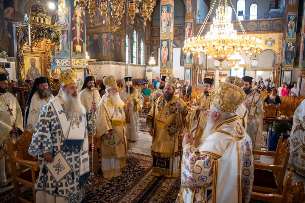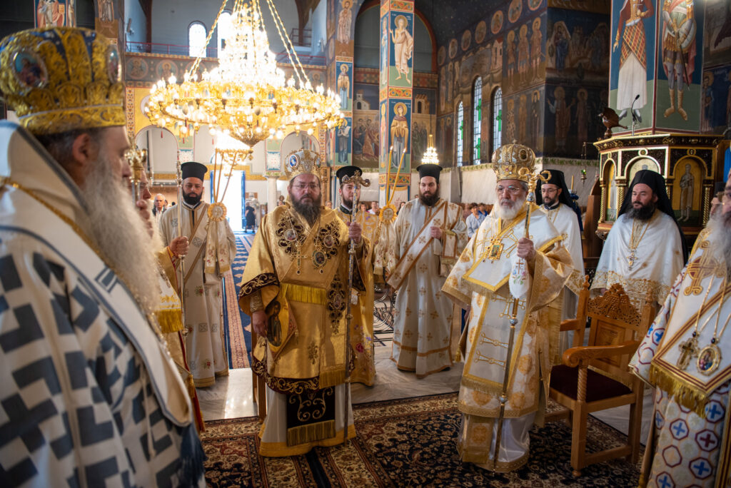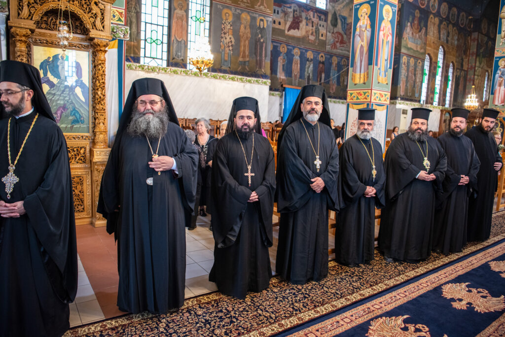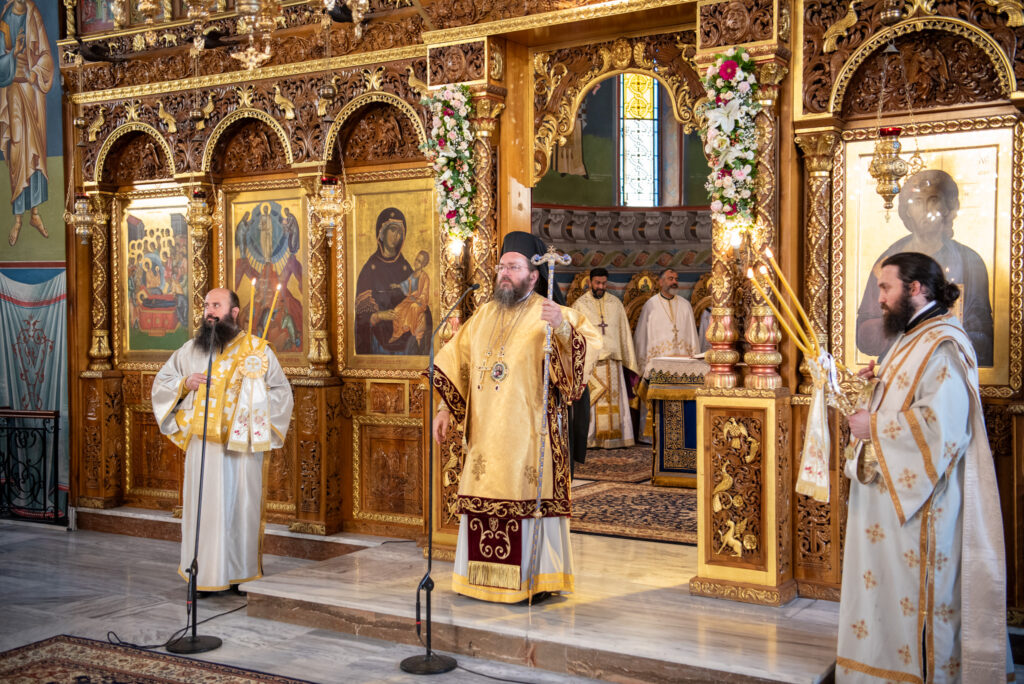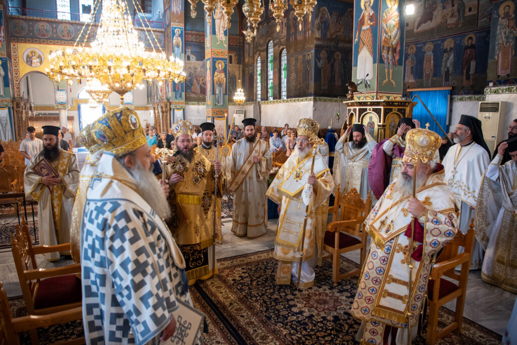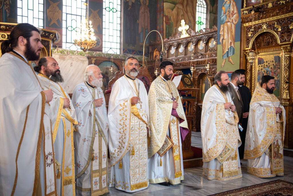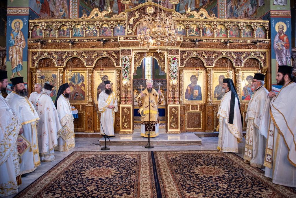 Του Όρθρου χοροστάτησε ο Σεβασμιώτατος Μητροπολίτης Σταγών και Μετεώρων κ. Θεόκλητος, ενώ της επακολουθησάσης πανηγυρικής πολυαρχιερατικής Θείας Λειτουργίας προέστη ο εορτάζων Μητροπολίτης κ. Βαρθολομαίος. Μαζί του συλλειτούργησαν οι Σεβ. Μητροπολίτες Δημητριάδος και Αλμυρού κ. Ιγνάτιος, Σιδηροκάστρου κ. Μακάριος, Σταγών κ. Θεόκλητος και Λαγκαδά, Λητής και Ρεντίνης κ. Πλάτων. Τους πλαισίωσαν Ιερείς και Διάκονοι με επικεφαλής τον Πρωτοσύγκελλο της τοπικής Μητροπόλεως Παν. Αρχιμ. Επιφάνιο Θεοδωρίδη.