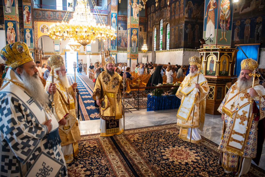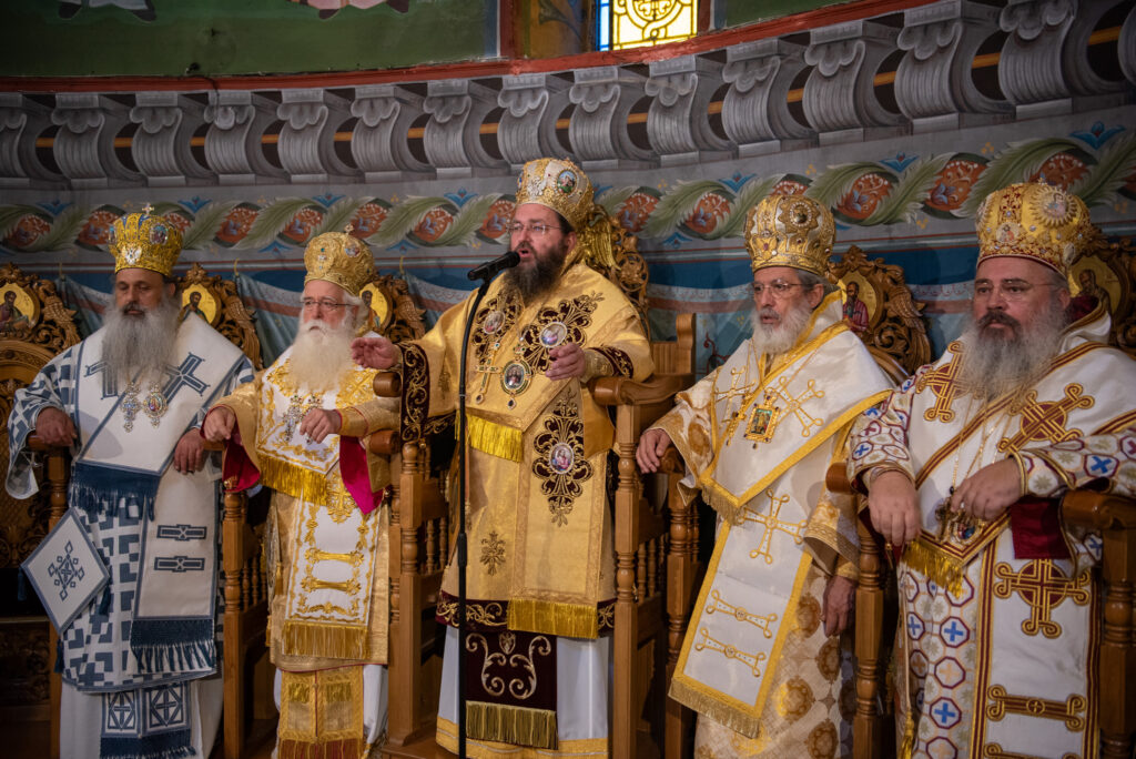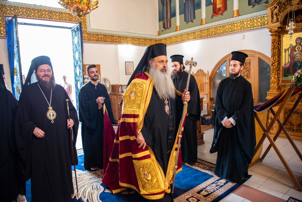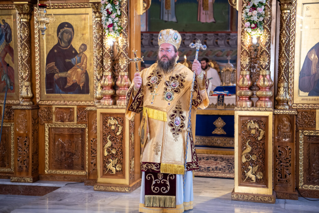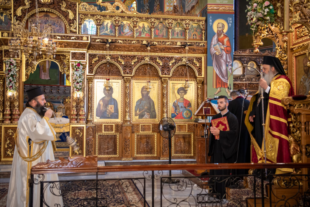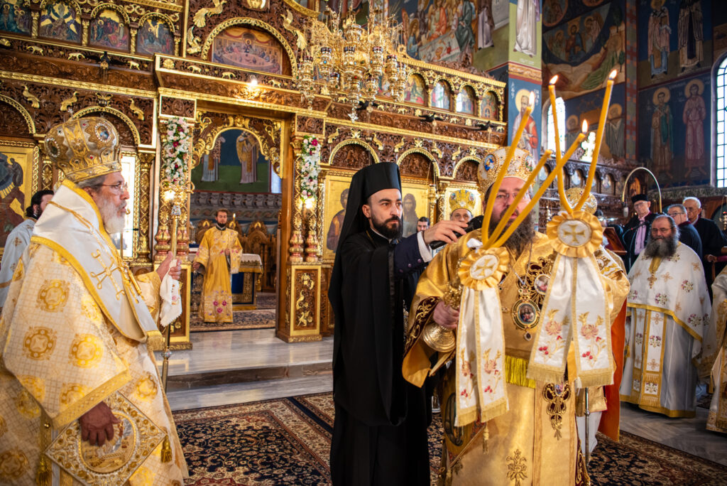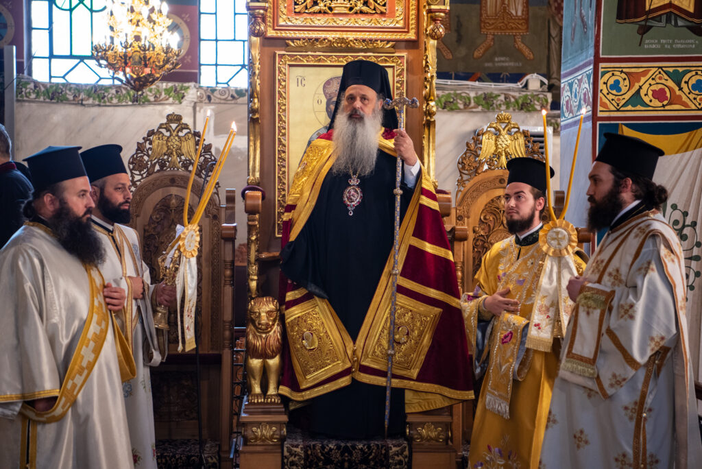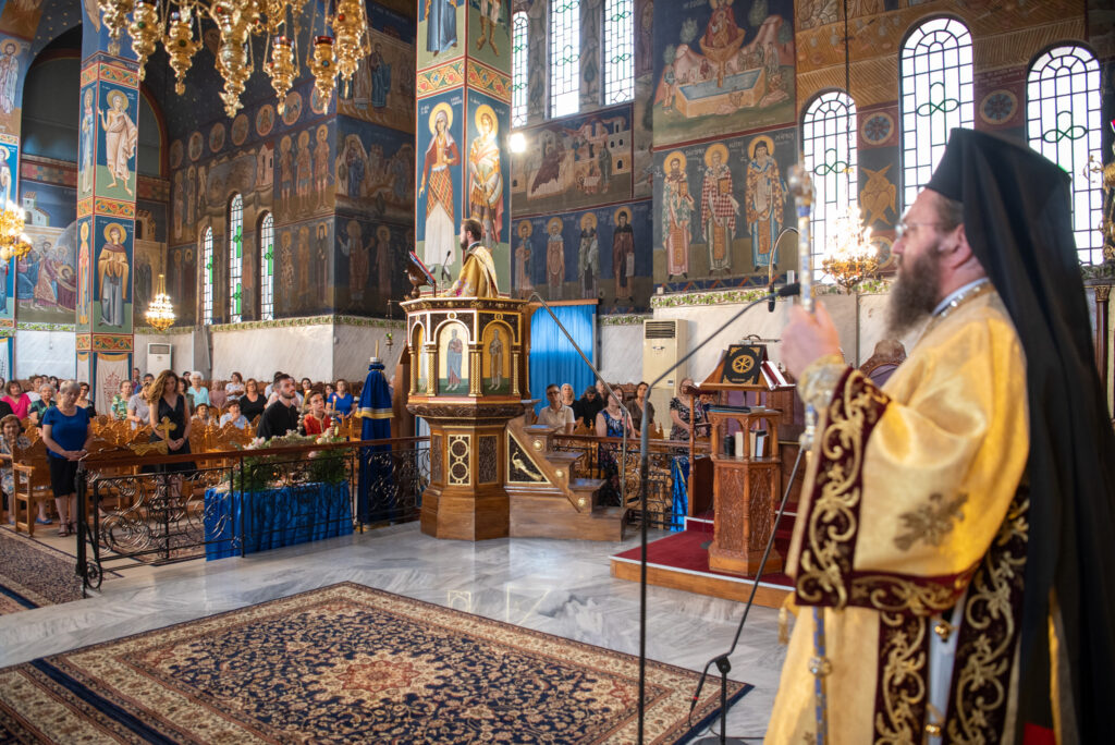 Του Όρθρου χοροστάτησε ο Σεβασμιώτατος Μητροπολίτης Σταγών και Μετεώρων κ. Θεόκλητος, ενώ της επακολουθησάσης πανηγυρικής πολυαρχιερατικής Θείας Λειτουργίας προέστη ο εορτάζων Μητροπολίτης κ. Βαρθολομαίος. Μαζί του συλλειτούργησαν οι Σεβ. Μητροπολίτες Δημητριάδος και Αλμυρού κ. Ιγνάτιος, Σιδηροκάστρου κ. Μακάριος, Σταγών κ. Θεόκλητος και Λαγκαδά, Λητής και Ρεντίνης κ. Πλάτων. Τους πλαισίωσαν Ιερείς και Διάκονοι με επικεφαλής τον Πρωτοσύγκελλο της τοπικής Μητροπόλεως Παν. Αρχιμ. Επιφάνιο Θεοδωρίδη.
