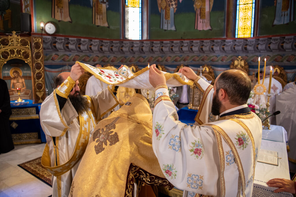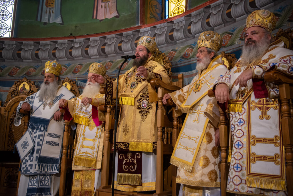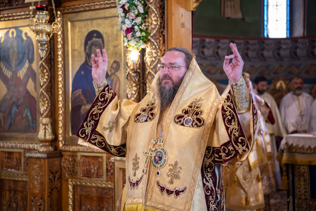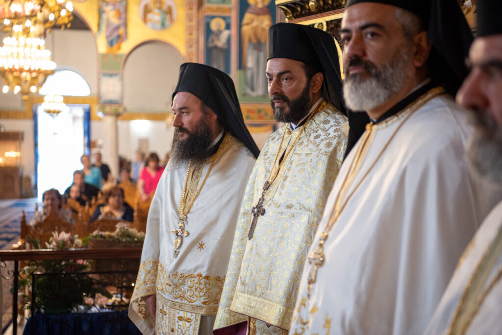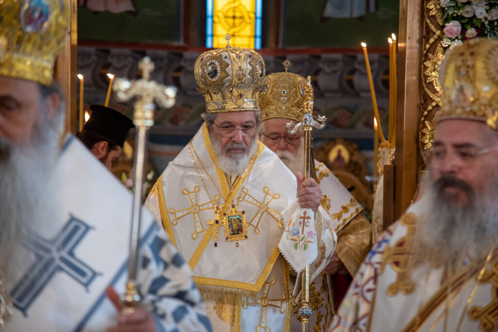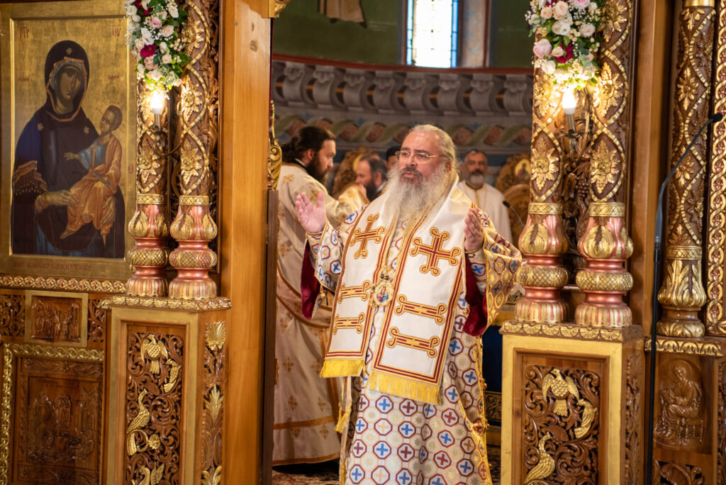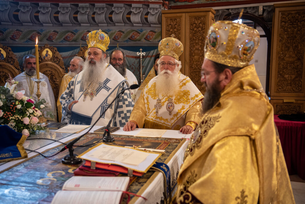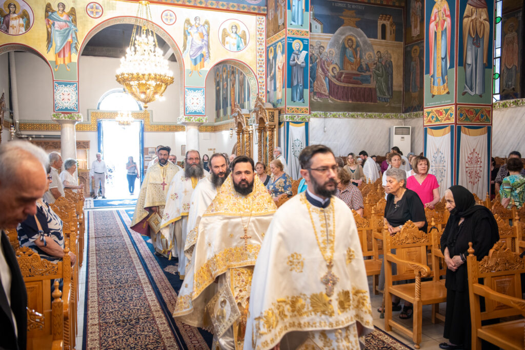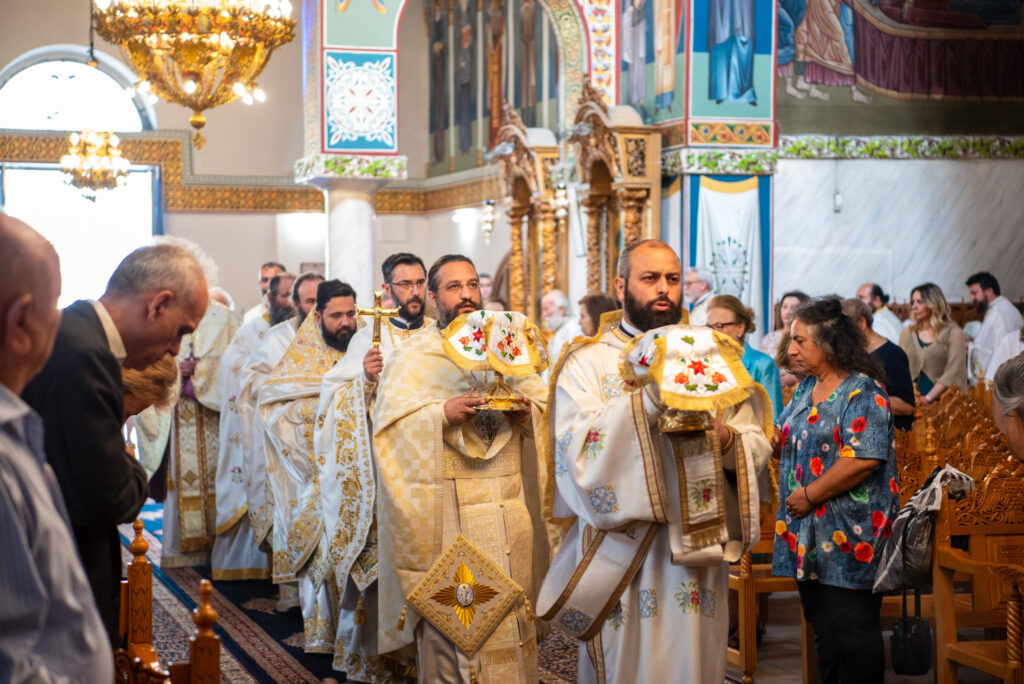 Του Όρθρου χοροστάτησε ο Σεβασμιώτατος Μητροπολίτης Σταγών και Μετεώρων κ. Θεόκλητος, ενώ της επακολουθησάσης πανηγυρικής πολυαρχιερατικής Θείας Λειτουργίας προέστη ο εορτάζων Μητροπολίτης κ. Βαρθολομαίος. Μαζί του συλλειτούργησαν οι Σεβ. Μητροπολίτες Δημητριάδος και Αλμυρού κ. Ιγνάτιος, Σιδηροκάστρου κ. Μακάριος, Σταγών κ. Θεόκλητος και Λαγκαδά, Λητής και Ρεντίνης κ. Πλάτων. Τους πλαισίωσαν Ιερείς και Διάκονοι με επικεφαλής τον Πρωτοσύγκελλο της τοπικής Μητροπόλεως Παν. Αρχιμ. Επιφάνιο Θεοδωρίδη.