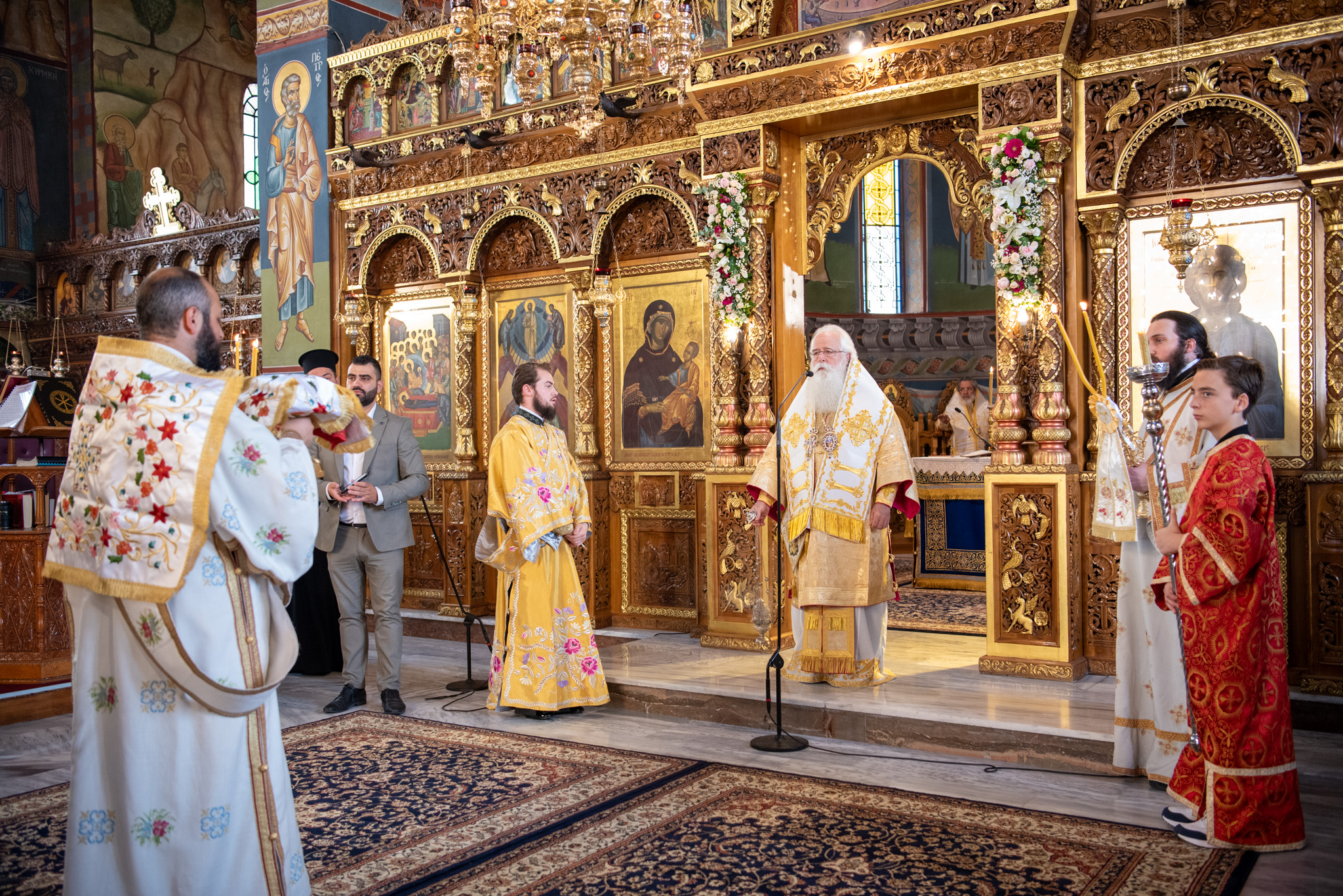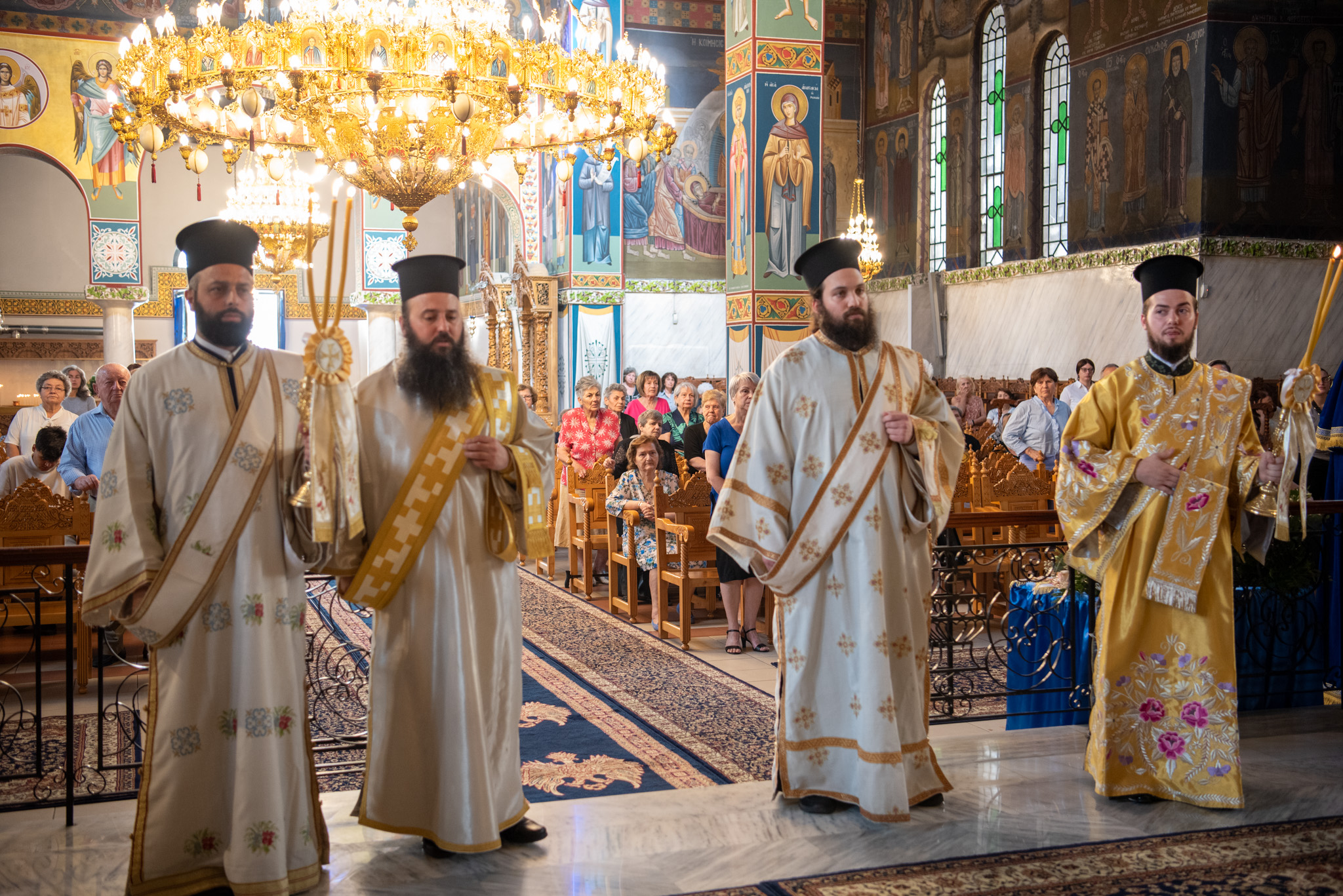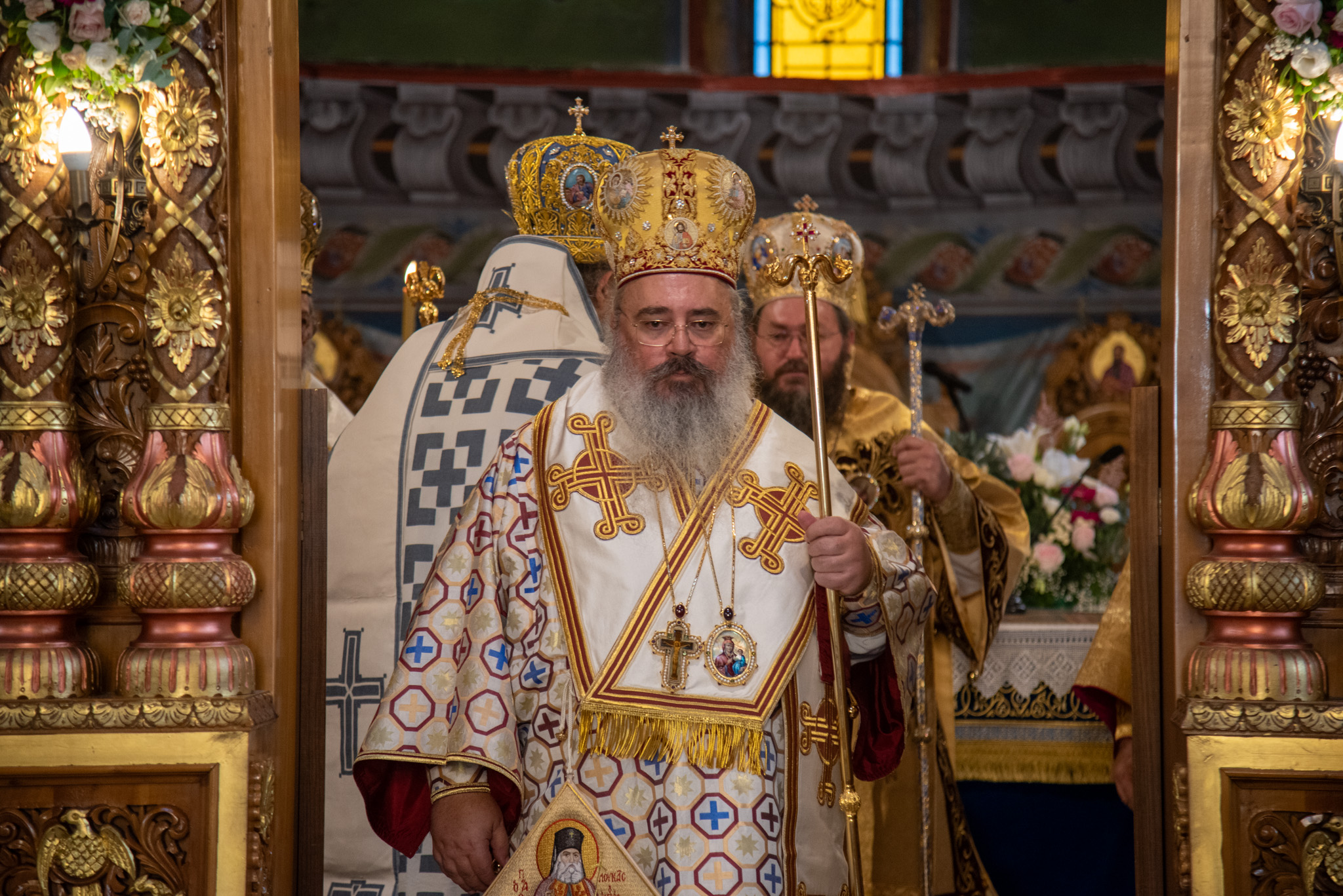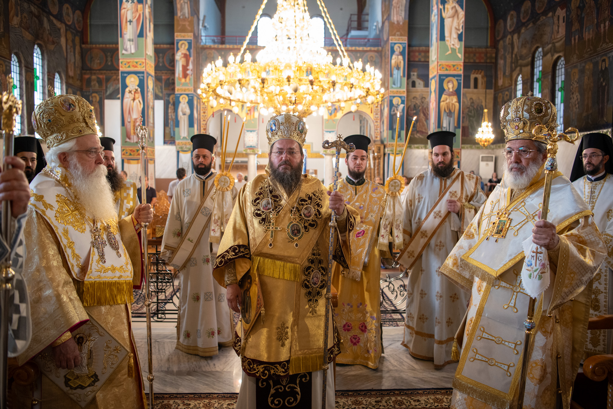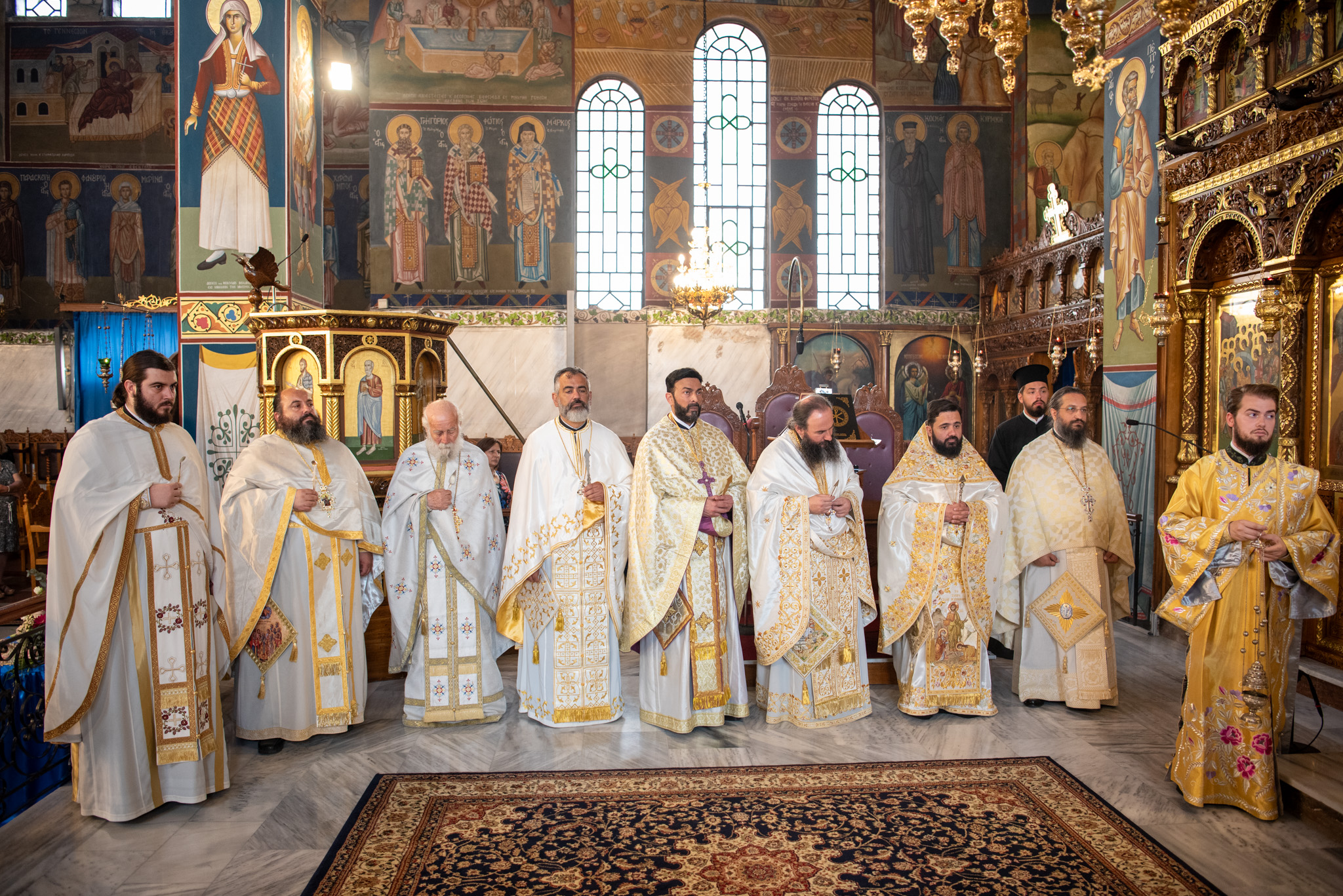 Του Όρθρου χοροστάτησε ο Σεβασμιώτατος Μητροπολίτης Σταγών και Μετεώρων κ. Θεόκλητος, ενώ της επακολουθησάσης πανηγυρικής πολυαρχιερατικής Θείας Λειτουργίας προέστη ο εορτάζων Μητροπολίτης κ. Βαρθολομαίος. Μαζί του συλλειτούργησαν οι Σεβ. Μητροπολίτες Δημητριάδος και Αλμυρού κ. Ιγνάτιος, Σιδηροκάστρου κ. Μακάριος, Σταγών κ. Θεόκλητος και Λαγκαδά, Λητής και Ρεντίνης κ. Πλάτων. Τους πλαισίωσαν Ιερείς και Διάκονοι με επικεφαλής τον Πρωτοσύγκελλο της τοπικής Μητροπόλεως Παν. Αρχιμ. Επιφάνιο Θεοδωρίδη.