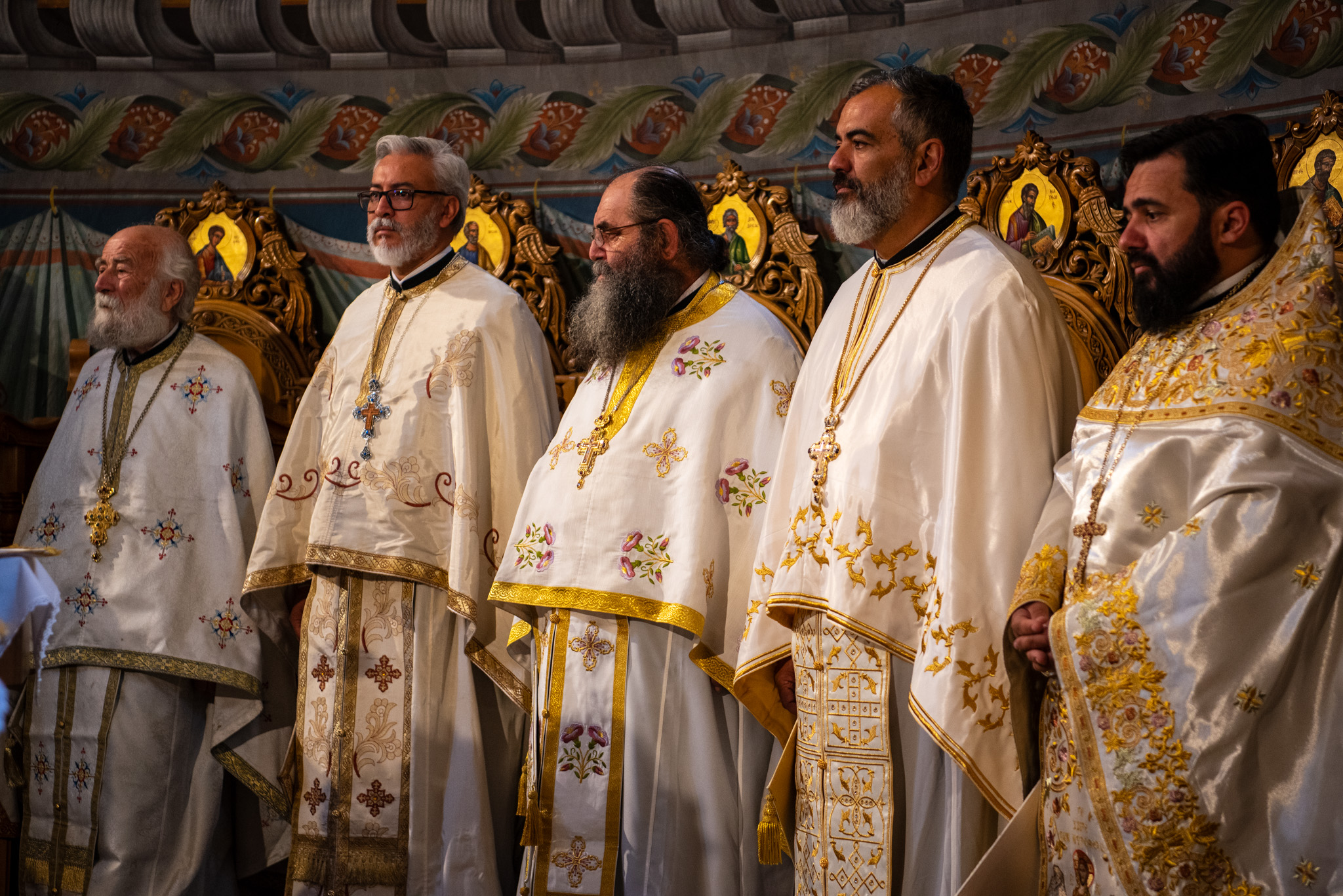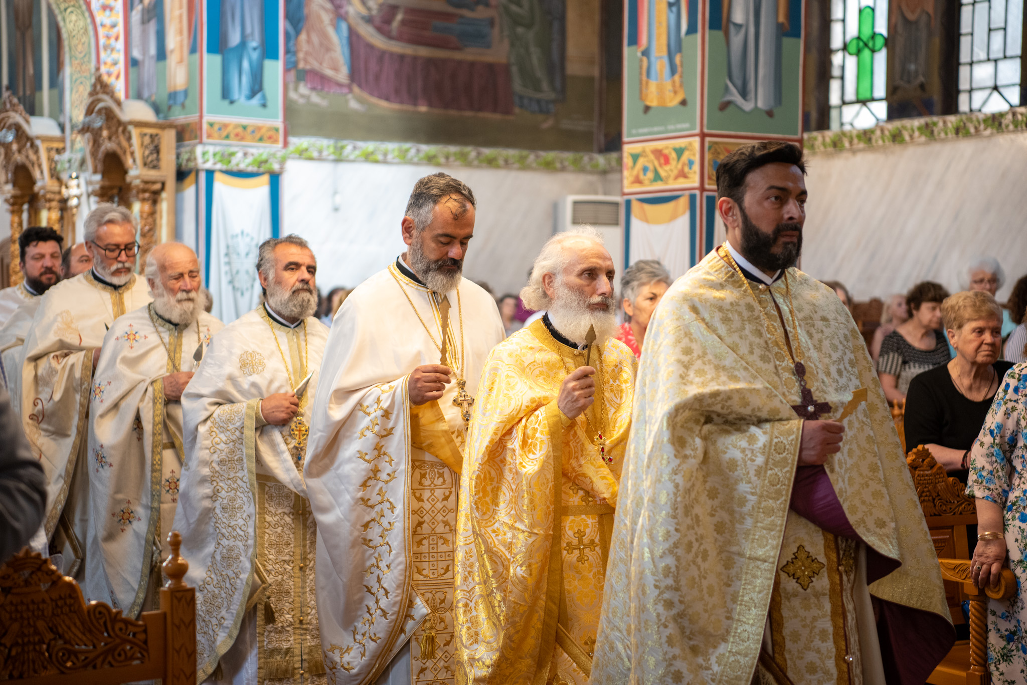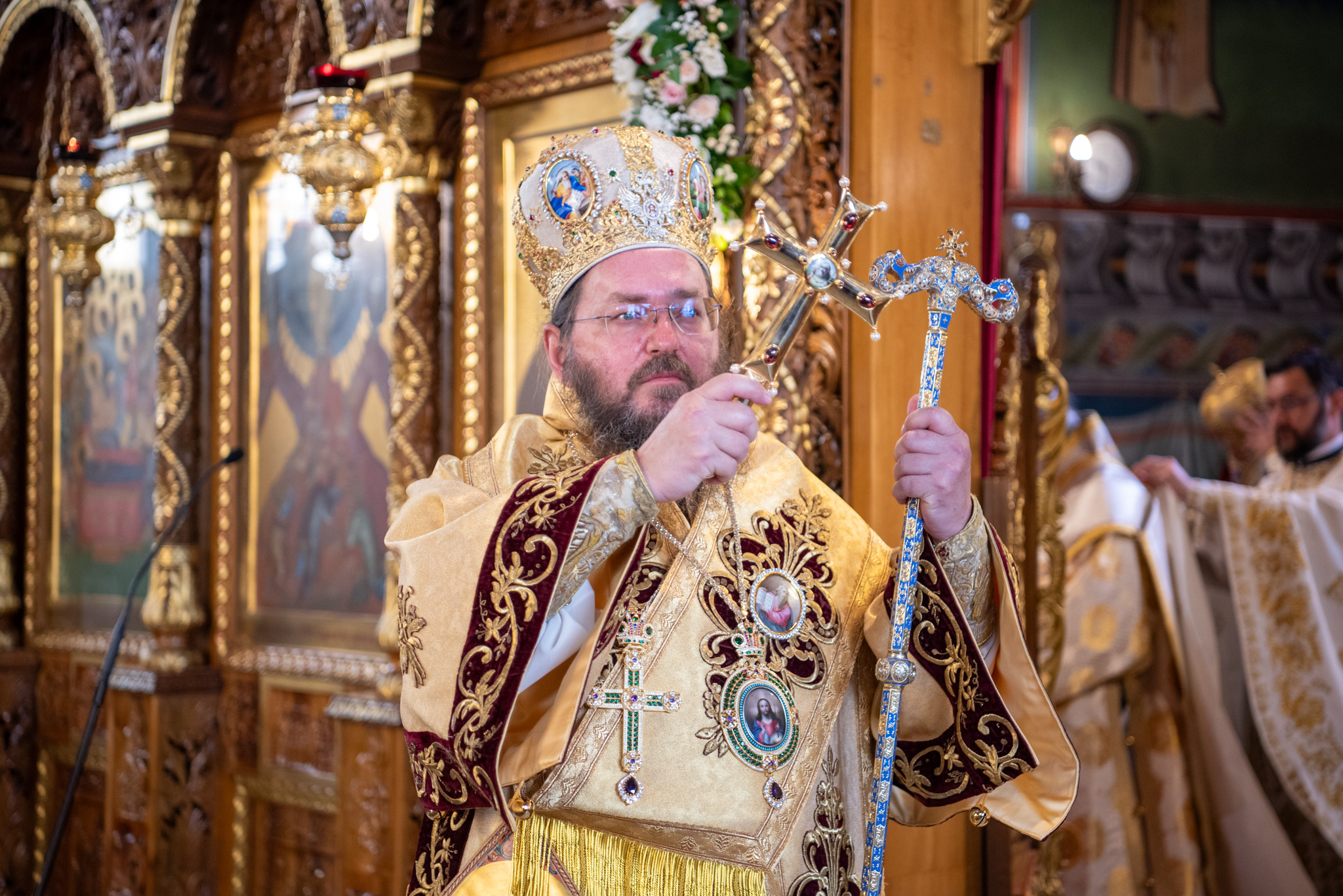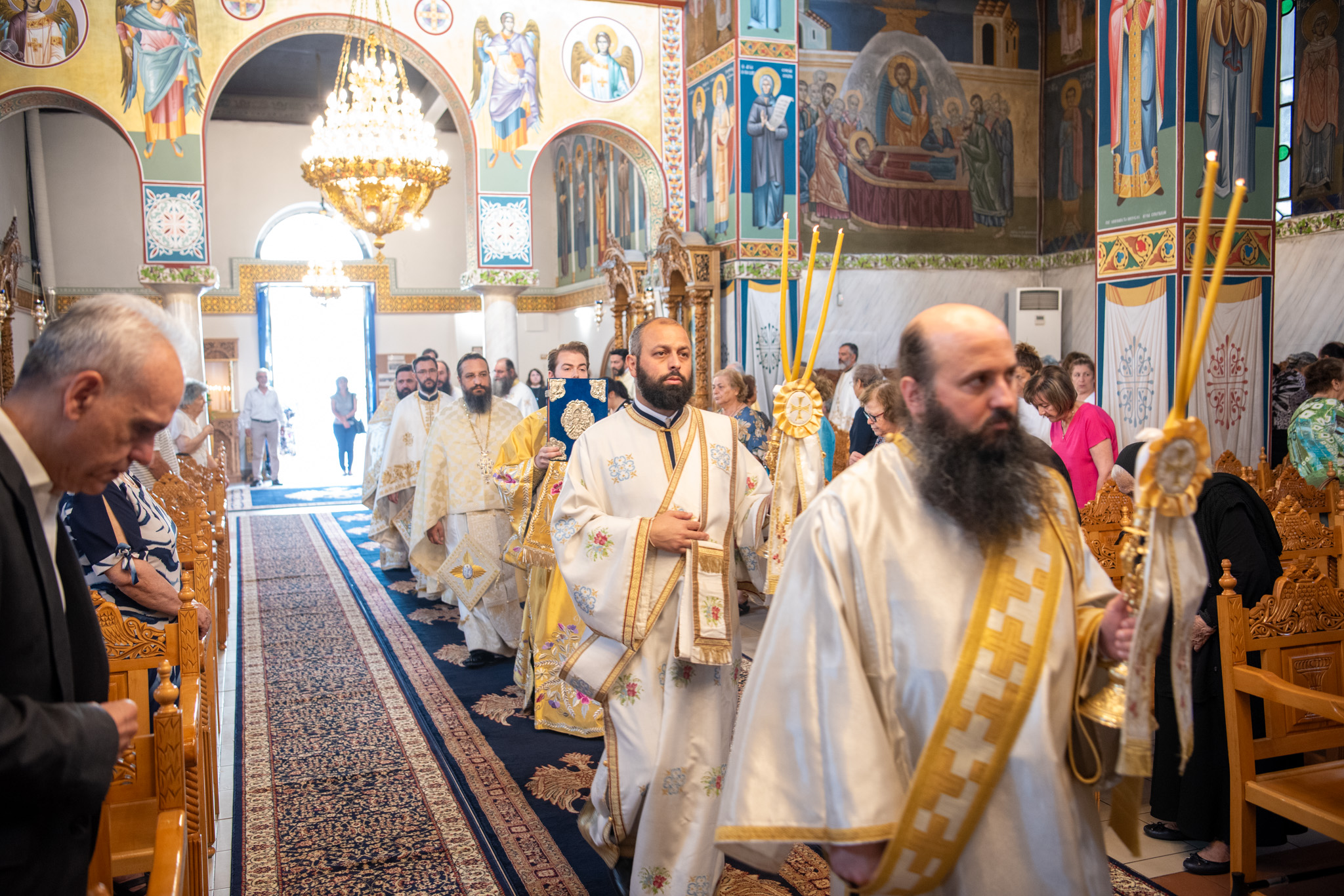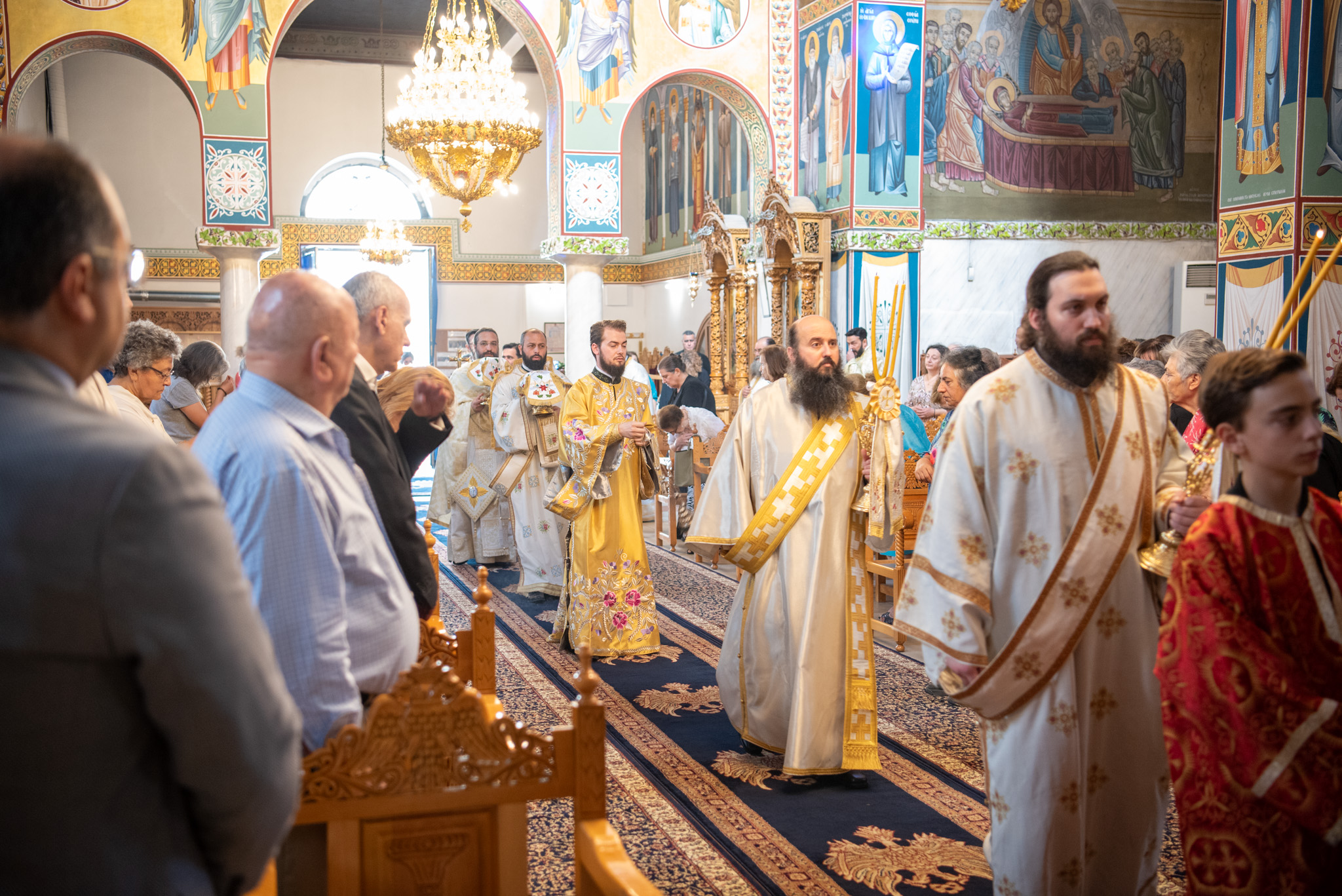 Του Όρθρου χοροστάτησε ο Σεβασμιώτατος Μητροπολίτης Σταγών και Μετεώρων κ. Θεόκλητος, ενώ της επακολουθησάσης πανηγυρικής πολυαρχιερατικής Θείας Λειτουργίας προέστη ο εορτάζων Μητροπολίτης κ. Βαρθολομαίος. Μαζί του συλλειτούργησαν οι Σεβ. Μητροπολίτες Δημητριάδος και Αλμυρού κ. Ιγνάτιος, Σιδηροκάστρου κ. Μακάριος, Σταγών κ. Θεόκλητος και Λαγκαδά, Λητής και Ρεντίνης κ. Πλάτων. Τους πλαισίωσαν Ιερείς και Διάκονοι με επικεφαλής τον Πρωτοσύγκελλο της τοπικής Μητροπόλεως Παν. Αρχιμ. Επιφάνιο Θεοδωρίδη.
