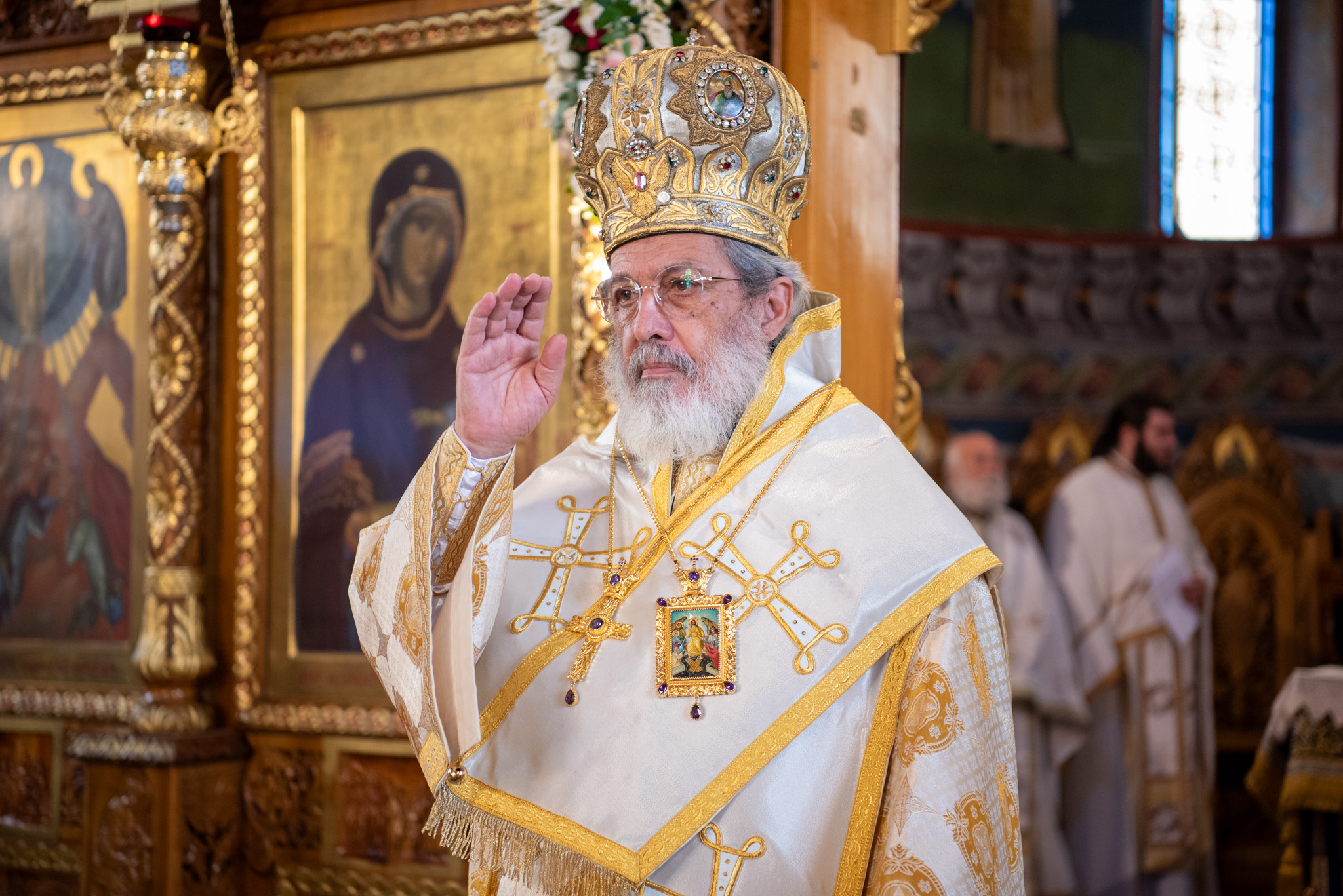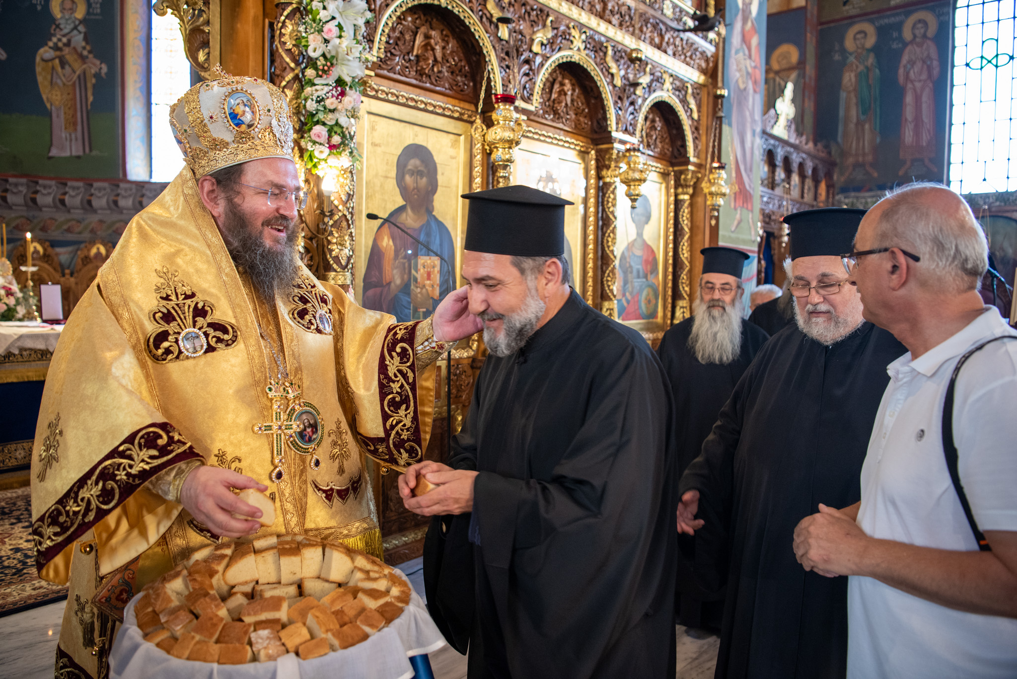 Προσήλθαν επίσης για να ευχηθούν στον εορτάζοντα Μητροπολίτη ο Θεοφ. Επίσκοπος Αμορίου κ. Νικηφόρος, ο Σεβασμιώτατος Μητροπολίτης Γουμενίσσης κ. Δημήτριος και ο Σεβασμιώτατος Μητροπολίτης Δράμας κ. Δωρόθεος.