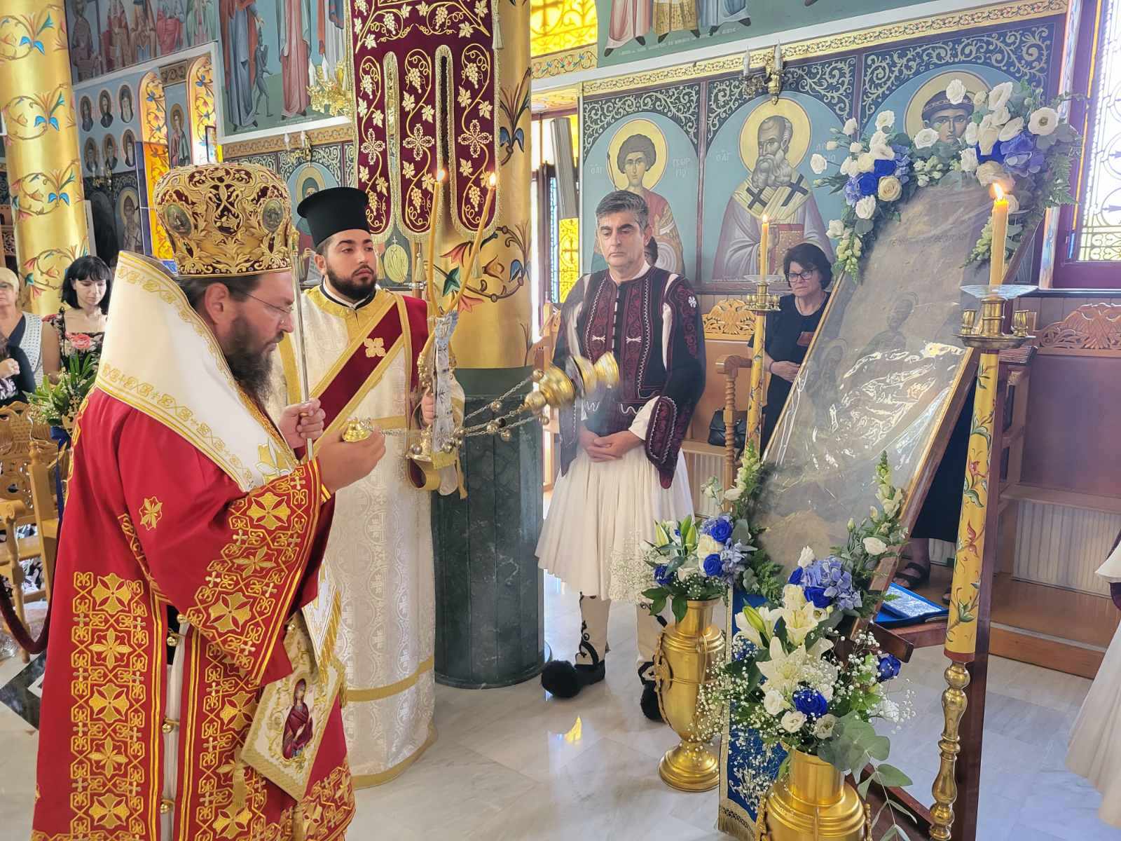 Πρόσθεσε ότι οι Ορθόδοξοι Χριστιανοί έχουμε πυξίδα και φάρο την Υπεραγία Θεοτόκο και το παράδειγμα της ζωής της και Εκείνη προσφέρει πρεσβεύοντας στον Υιό της την προστασία, την παρηγοριά, την ειρήνη και την ελπίδα!