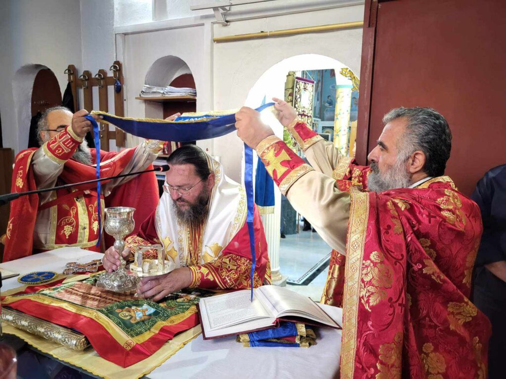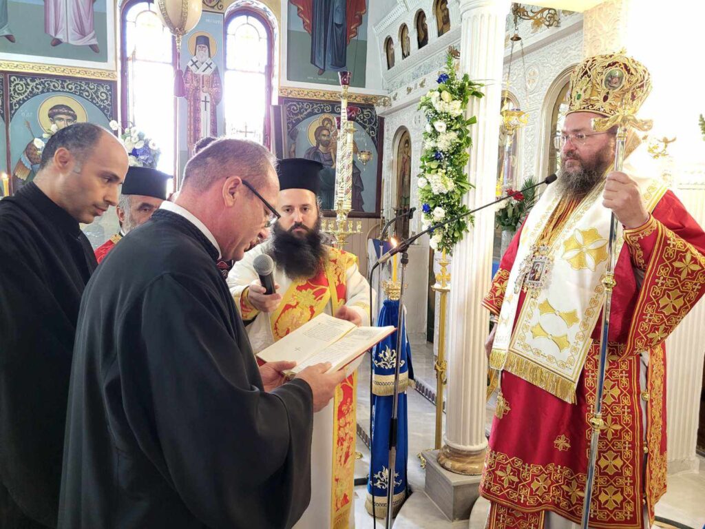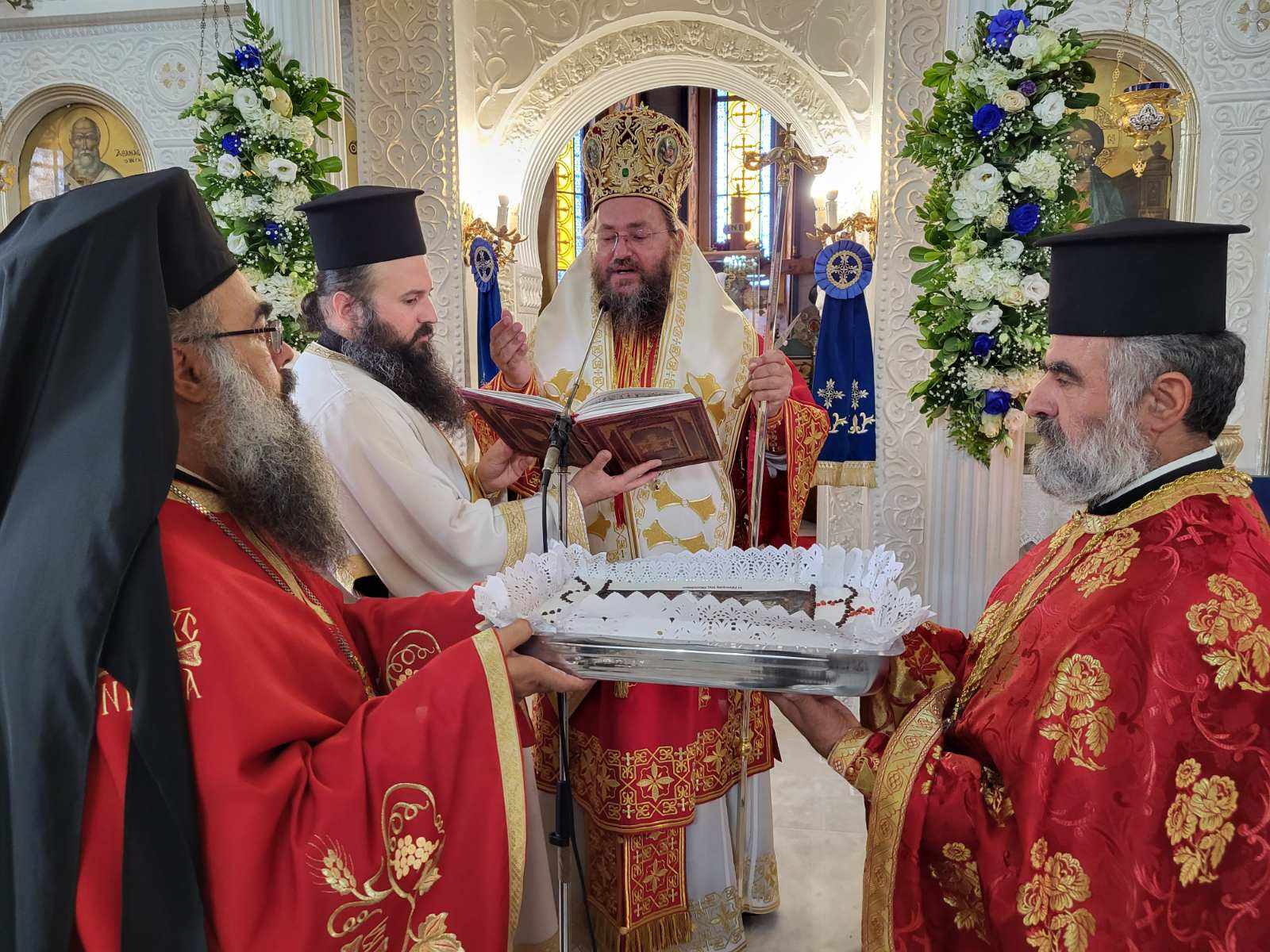 Στο τέλος ο Σεβασμιώτατος αφού ευλόγησε το κόλλυβο, χειροθέτησε τους κ.κ. Νικόλαο Σιρηνόπουλο και Ιωσήφ Κουτσιόγλου σε Αναγνώστες, οι οποίοι διακονούν στον προαναφερόμενο Ναό, αναφωνόντας την ευχή/ιαχή “Άξιοι”.