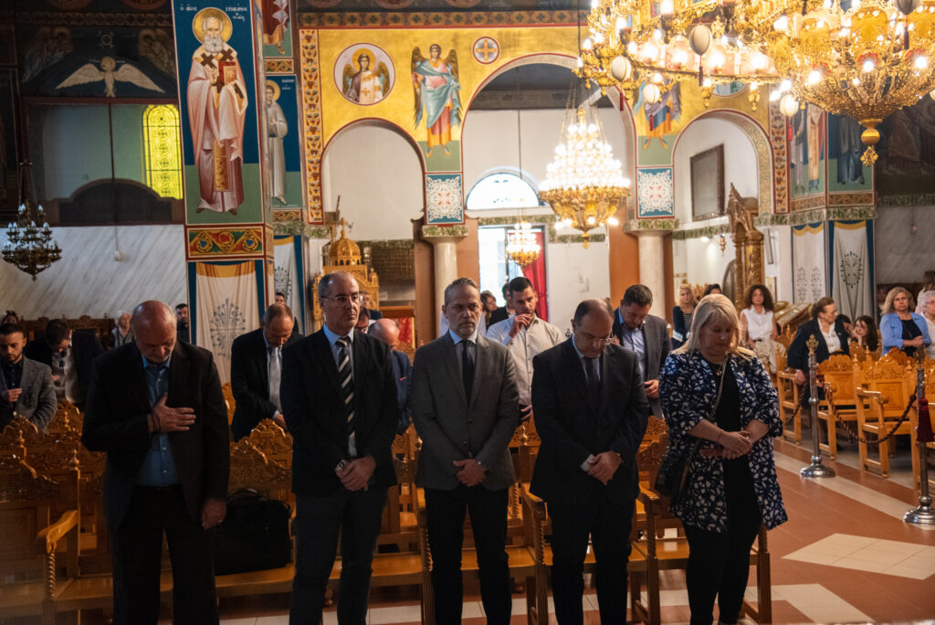 Ακολούθως ο Σεβασμιώτατος τέλεσε την αρτοκλασία υπέρ υγείας όλων όσων υπηρετούν την Δικαιοσύνη και μίλησε σχετικά με τον σήμερα τιμώμενο Άγιο, ευχόμενος ο Ιερομάρτυρας Διονύσιος να εμπνέει με τη σοφία του τους Λειτουργούς της Δικαιοσύνης και να τους συντρέχει με την προστασία του στο ιδιαίτερα δύσκολο και ευθυνοφόρο έργο τους.