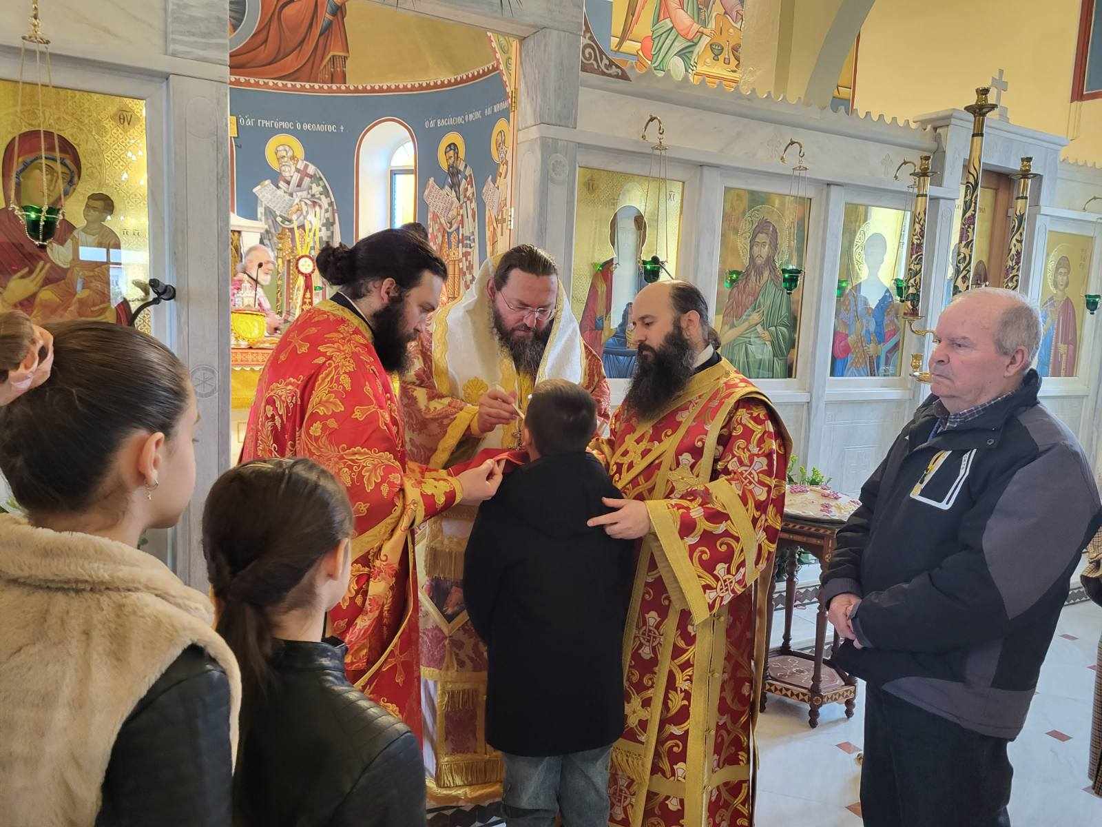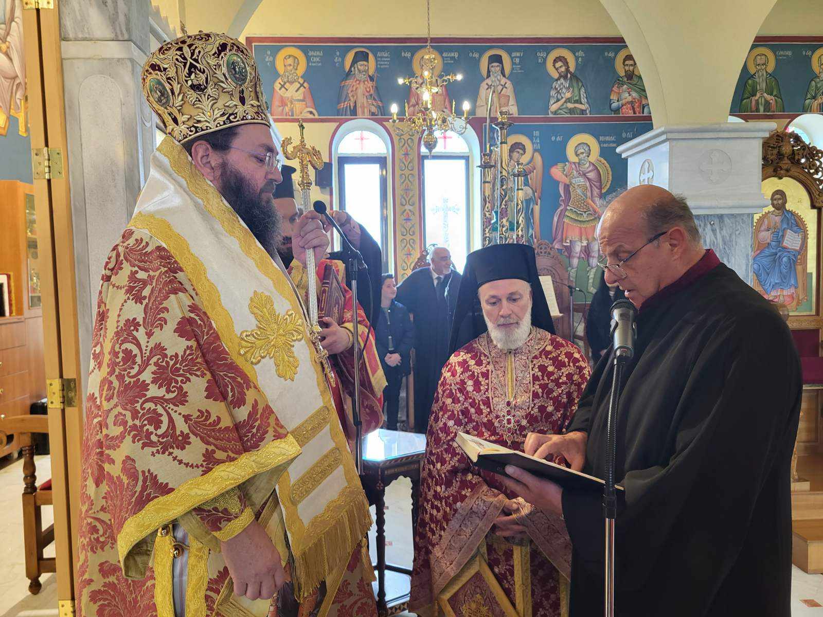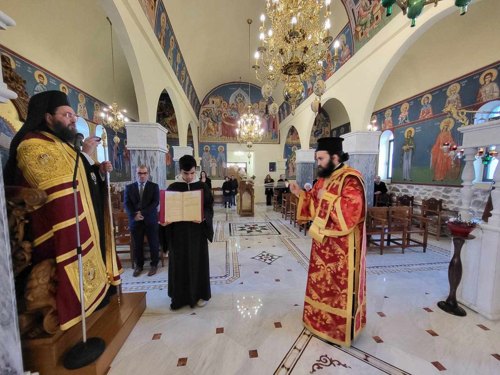 Προ της απολύσεως ο Σεβασμιώτατος χειροθέτησε σε Αναγνώστη τον Ιεροψάλτη του Ναού κ. Νικόλαο Μουρατίδη και συνεχάρη τον Εφημέριο Παν. Αρχιμ. Ευγένιο Ιωάννου για τον συνεχή ευπρεπισμό του Ναού, με τη συνδρομή των πιστών και τη χάρη του Αγίου Θεού.