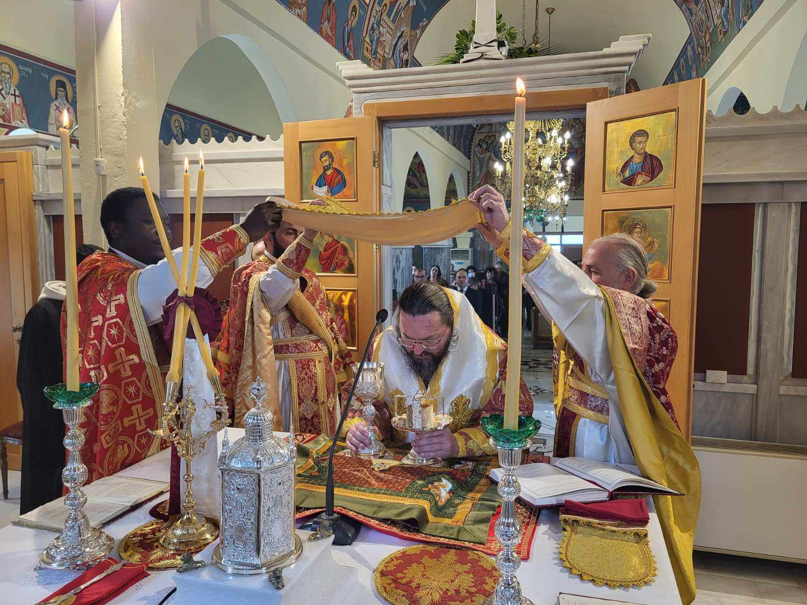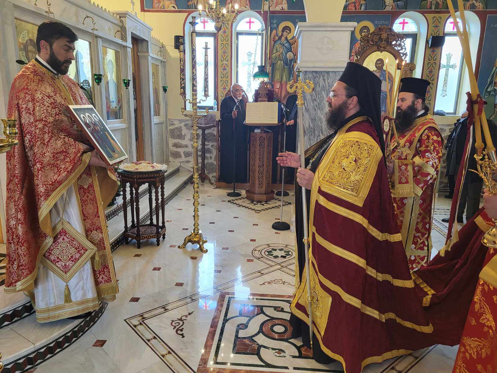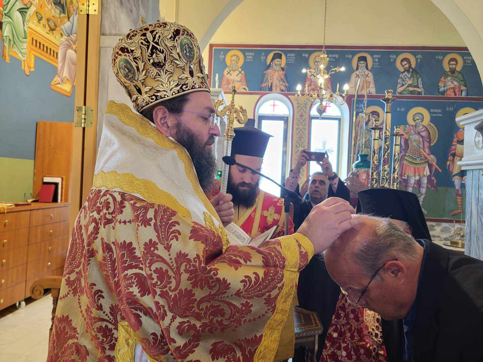 Προ της απολύσεως ο Σεβασμιώτατος χειροθέτησε σε Αναγνώστη τον Ιεροψάλτη του Ναού κ. Νικόλαο Μουρατίδη και συνεχάρη τον Εφημέριο Παν. Αρχιμ. Ευγένιο Ιωάννου για τον συνεχή ευπρεπισμό του Ναού, με τη συνδρομή των πιστών και τη χάρη του Αγίου Θεού.