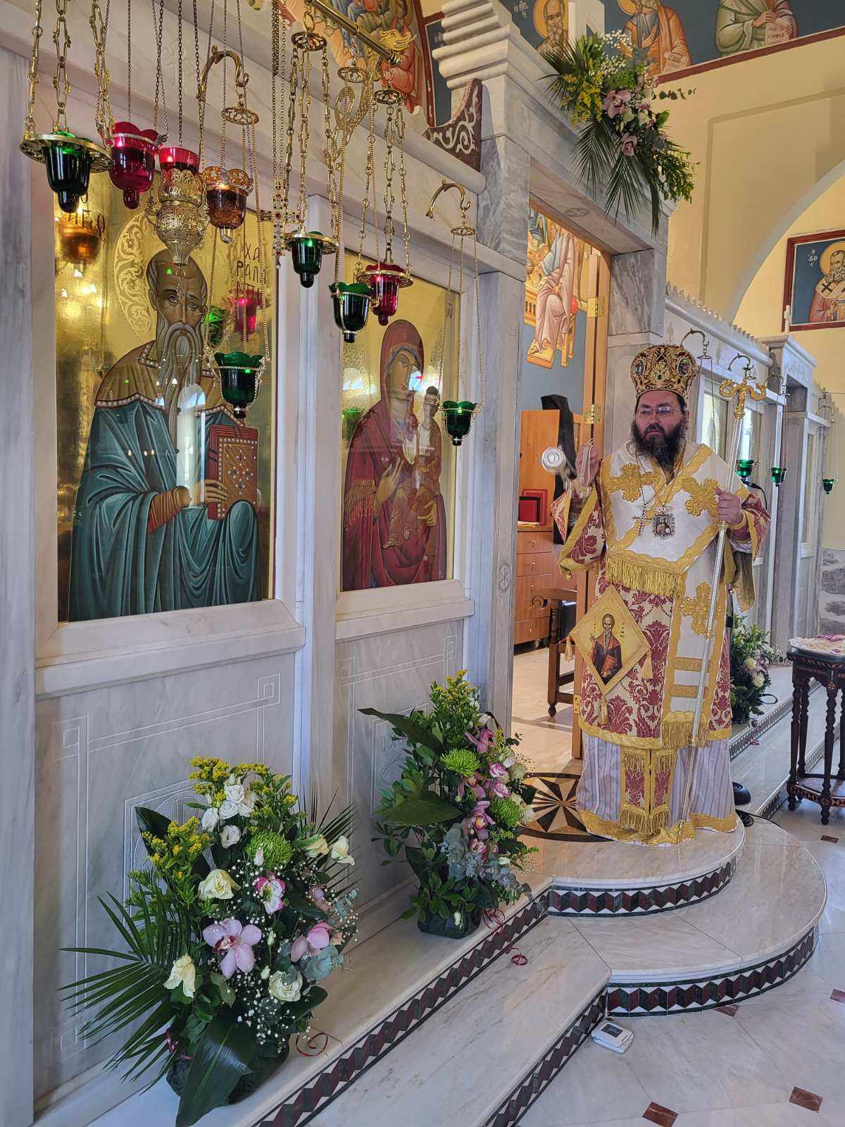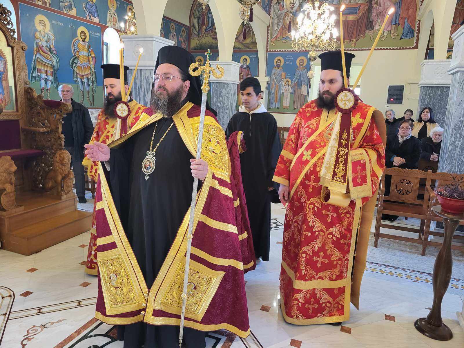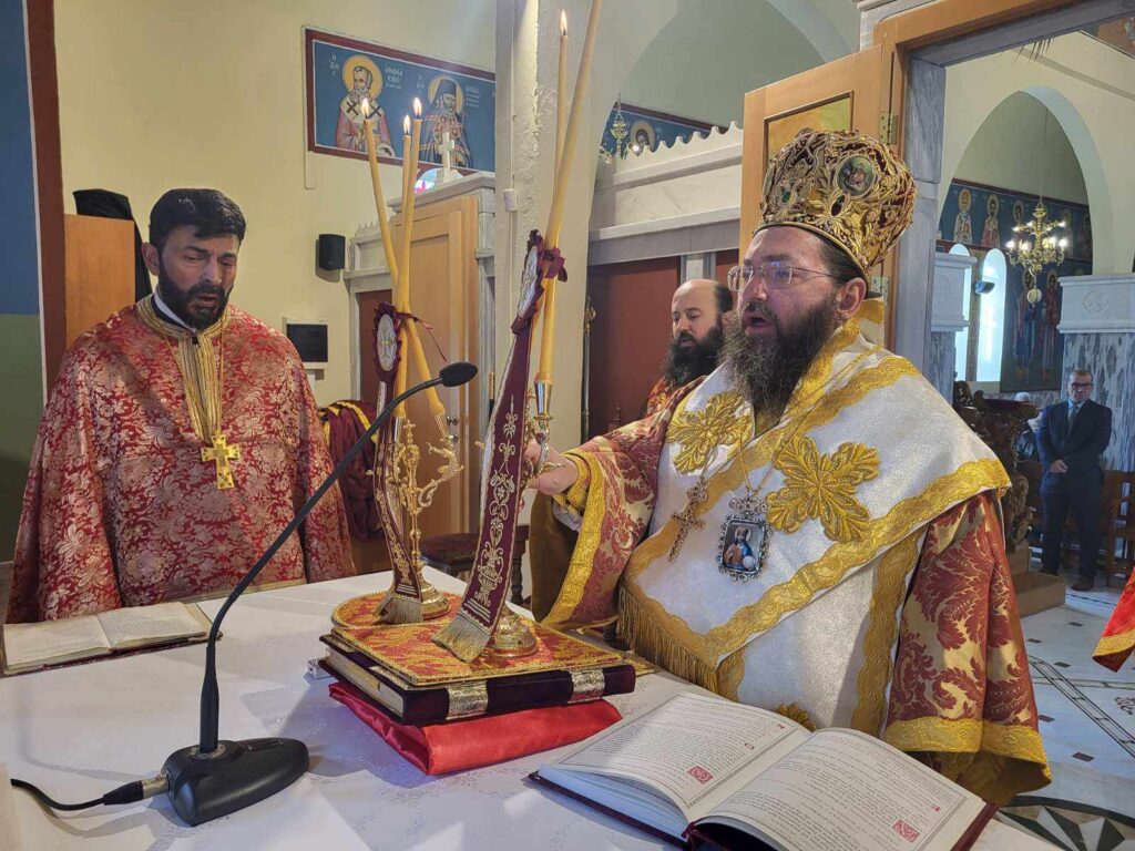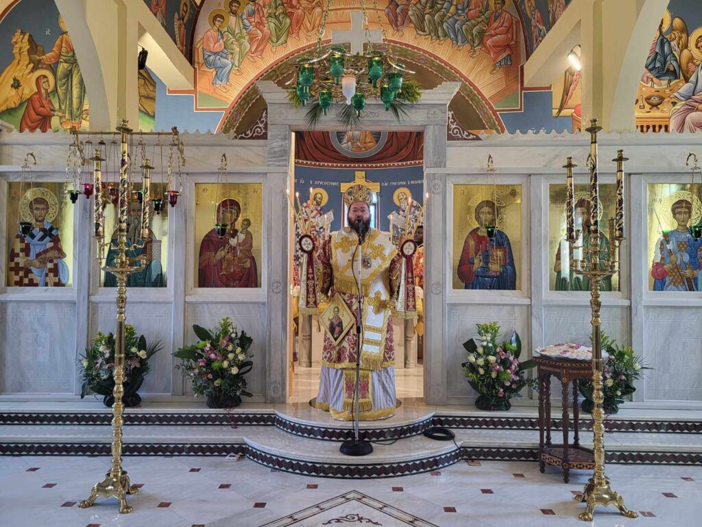 “Αγαπητοί μου αδελφοί, σήμερα σε αυτόν τον περικαλλέστατο Ιερό Ναό του Αγίου Χαραλάμπους στο Μαυρονέρι, θαυμάζουμε την καλλιτεχνία και την καλλιέπεια που διέπει το κτίσμα του Ιερού Ναού και αντανακλά το κάλλος και την ομορφιά της παρουσίας του Θεού στη ζωή μας!
