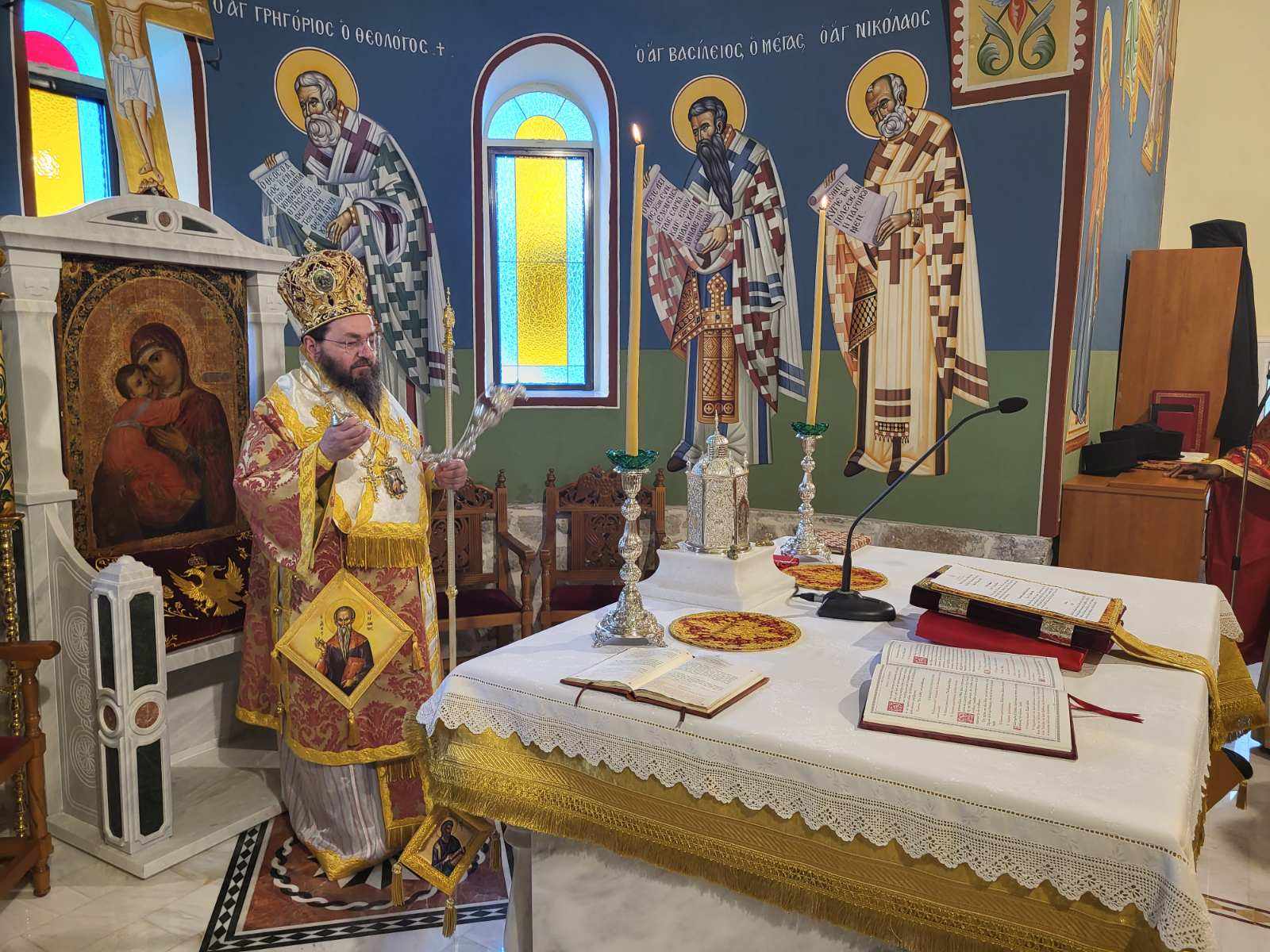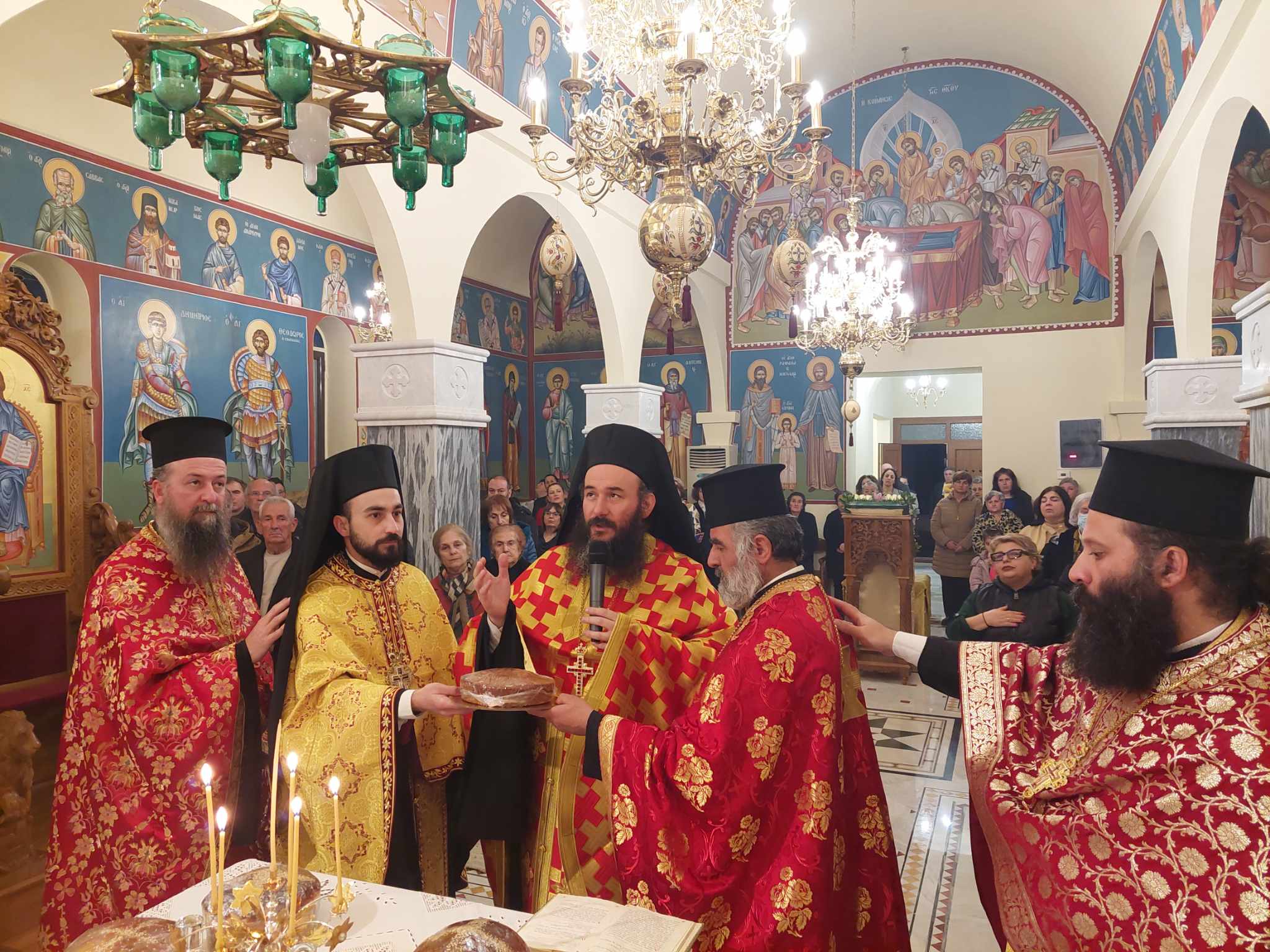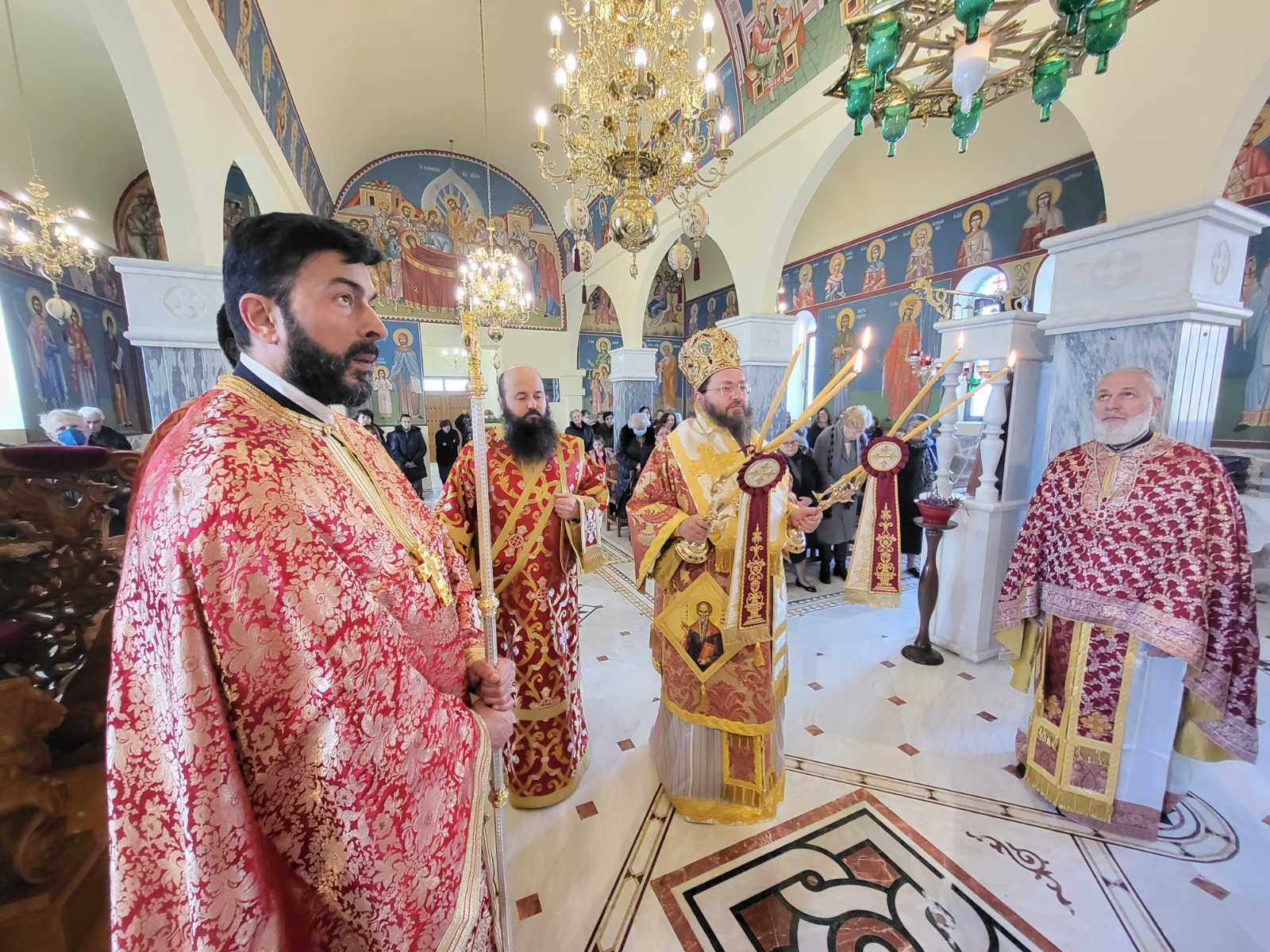 “Αγαπητοί μου αδελφοί, σήμερα σε αυτόν τον περικαλλέστατο Ιερό Ναό του Αγίου Χαραλάμπους στο Μαυρονέρι, θαυμάζουμε την καλλιτεχνία και την καλλιέπεια που διέπει το κτίσμα του Ιερού Ναού και αντανακλά το κάλλος και την ομορφιά της παρουσίας του Θεού στη ζωή μας!