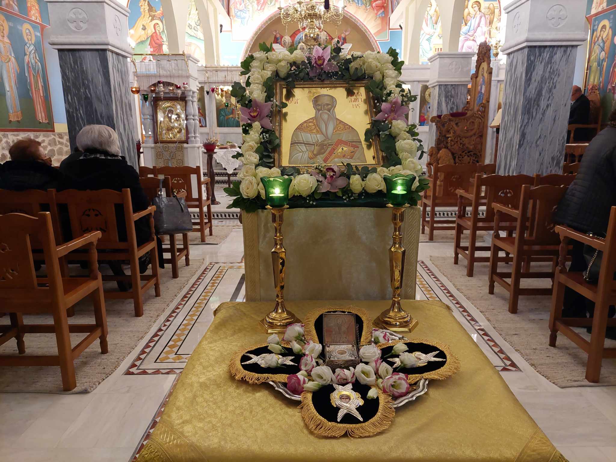 Ευλαβείς πιστοί, ενορίτες και προσκυνητές προσήλθαν στη χάρη του Αγίου να προσευχηθούν, να προσκυνήσουν την Ιερή του Εικόνα και το τεμάχιο του Ιερού του Λειψάνου και να εκζητήσουν την πρεσβεία του, καταθέτοντας τον σεβασμό, την τιμή και την αγάπη τους.