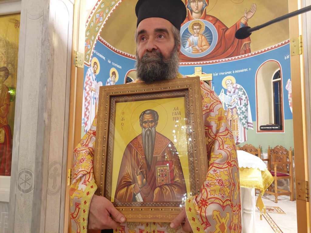 Σήμερα, λοιπόν, ο Άγιος Χαράλαμπος με τη μαρτυρική του ομολογία καταθέτει σε όλους μας μία πραγματικότητα: την ομορφιά και τη χάρη του Θεού ακόμη και μέσα σ’ αυτό το Μαρτύριο. Ας ακούσουμε τη φωνή του Μαρτυρίου του και ας αγαπήσουμε το παράδειγμά του ως δικό μας!”.