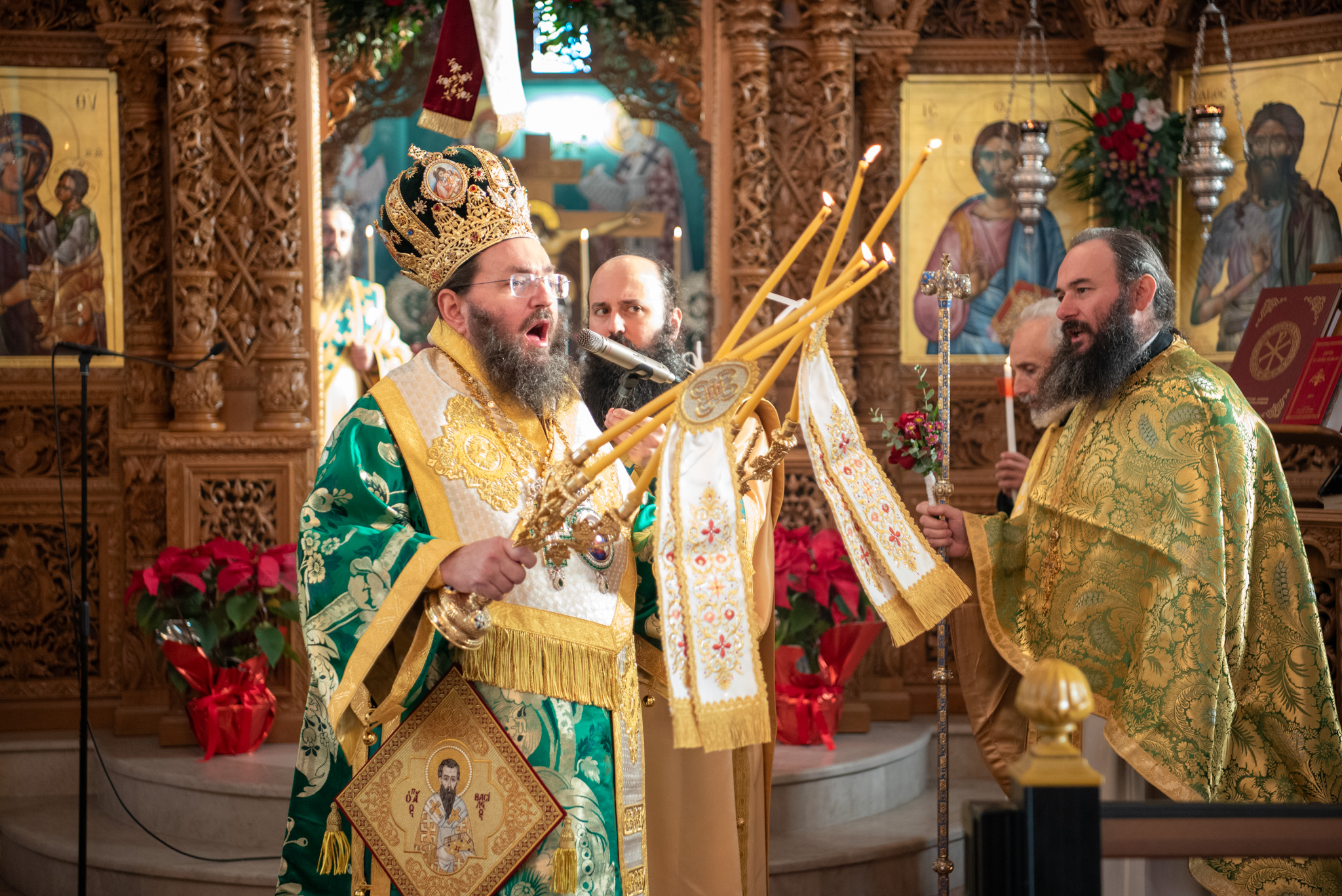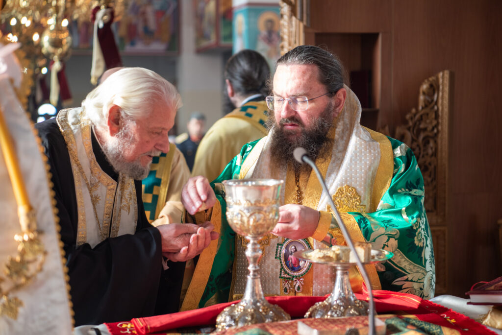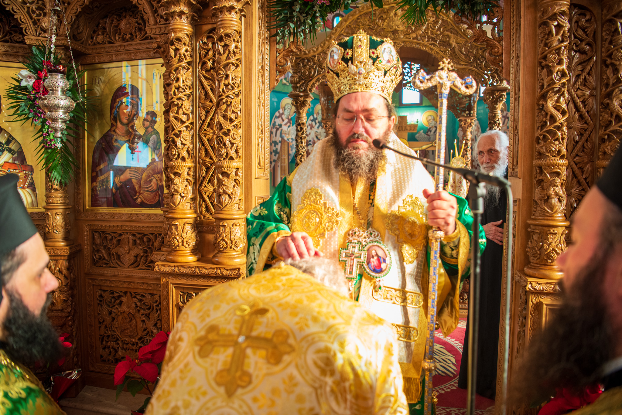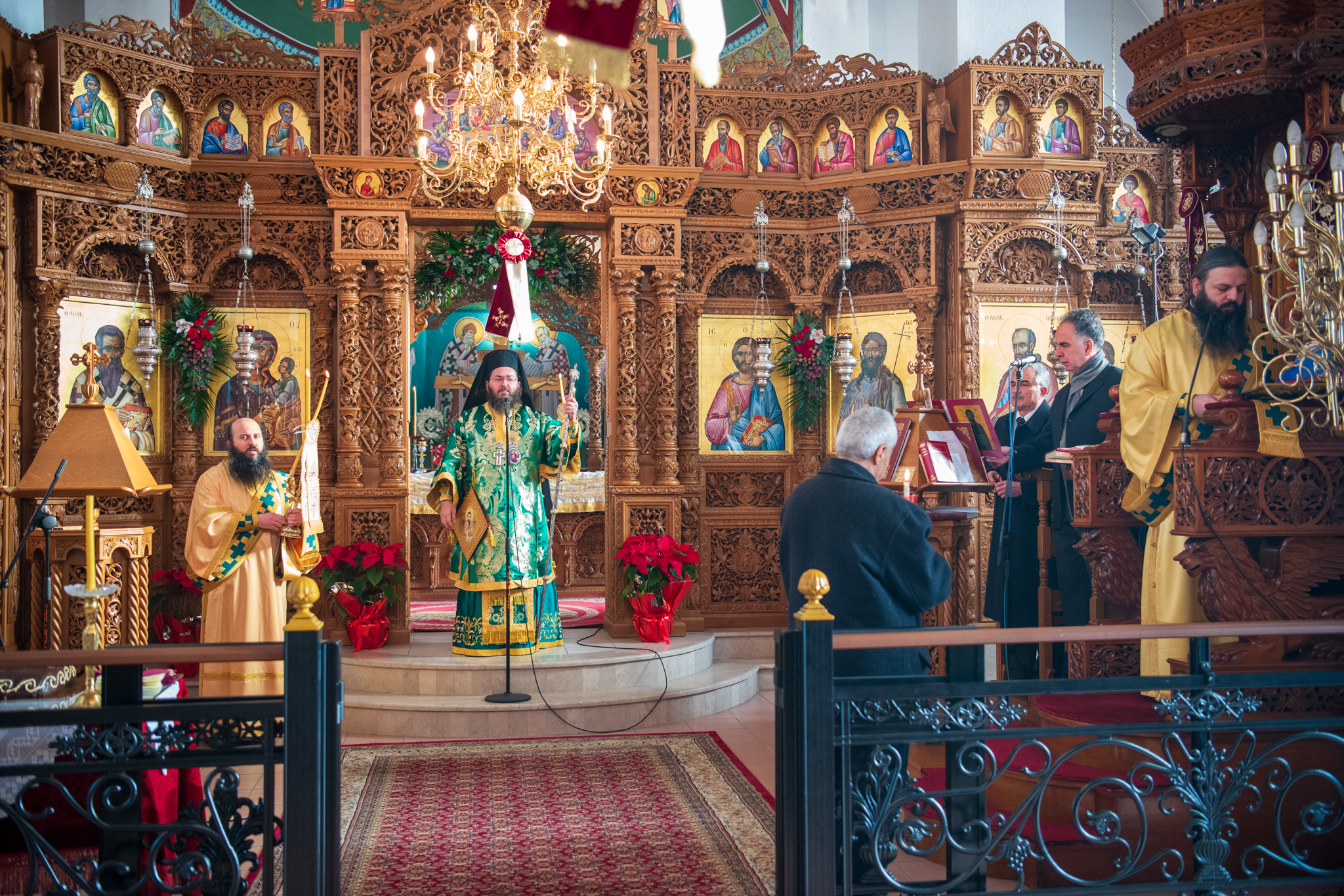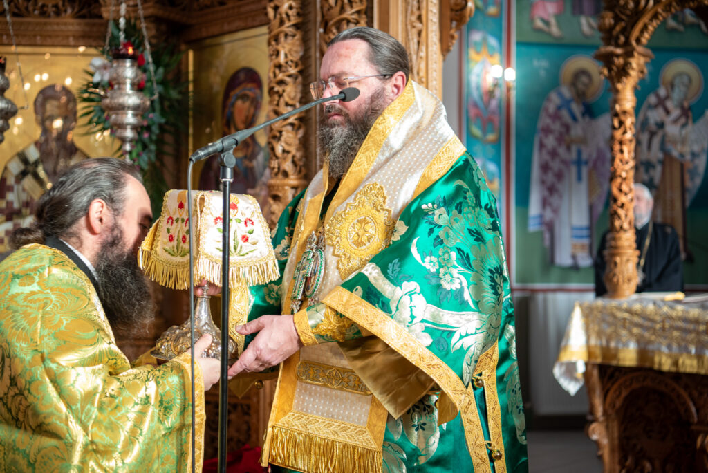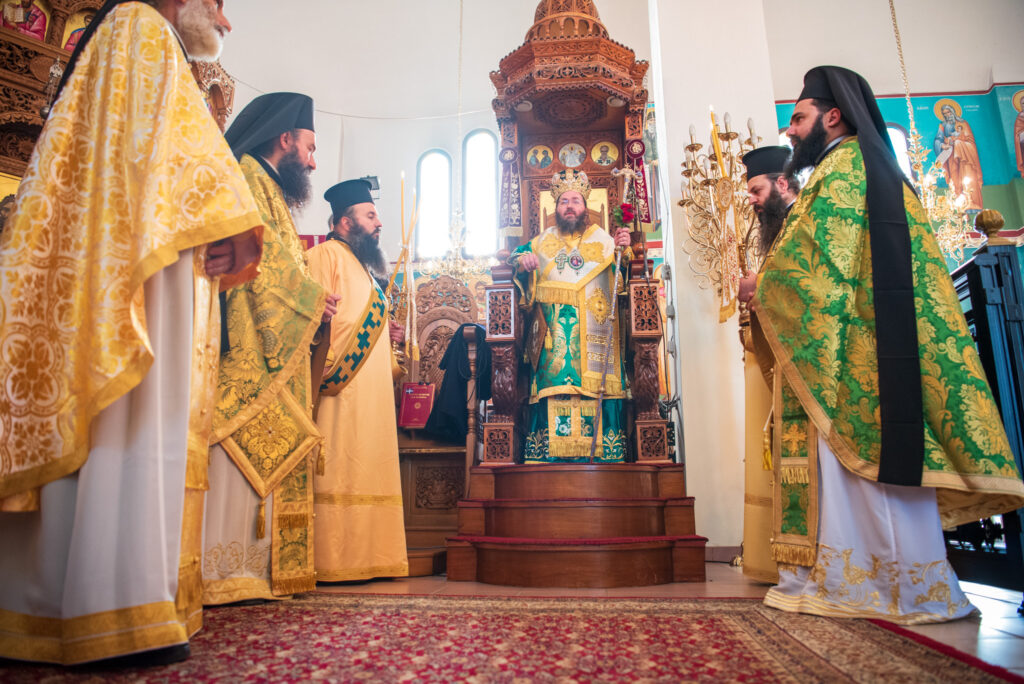 Του πανηγυρικού Όρθρου χοροστάτησε και της Θείας Λειτουργίας του Μ. Βασιλείου προέστη ο σεπτός Ποιμενάρχης του Κιλκίς, Σεβασμιώτατος Μητροπολίτης κ. Βαρθολομαίος, πλαισιούμενος από τον Πρωτοσυγκελλεύοντα της Ι. Μητροπόλεως Παν. Αρχιμ. Επιφάνιο Θεοδωρίδη, τον Παν. Αρχιμ. π. Βαρθολομαίο Τασιούλη και τον π. Βασίλειο Σαββίδη, τον Αρχιδιάκονο π. Φιλόθεο Τσαμπαζάκη και τον Ιεροδιάκονο π. Σάββα Αμοιρίδη, ενώ συμπροσευχόμενοι στο ιερό βήμα παρέστησαν ο πολιός Αρχιμανδρίτης π. Νικόλαος Πιλιτσόπουλος και ο π. Διογένης Λαζαρίδης.