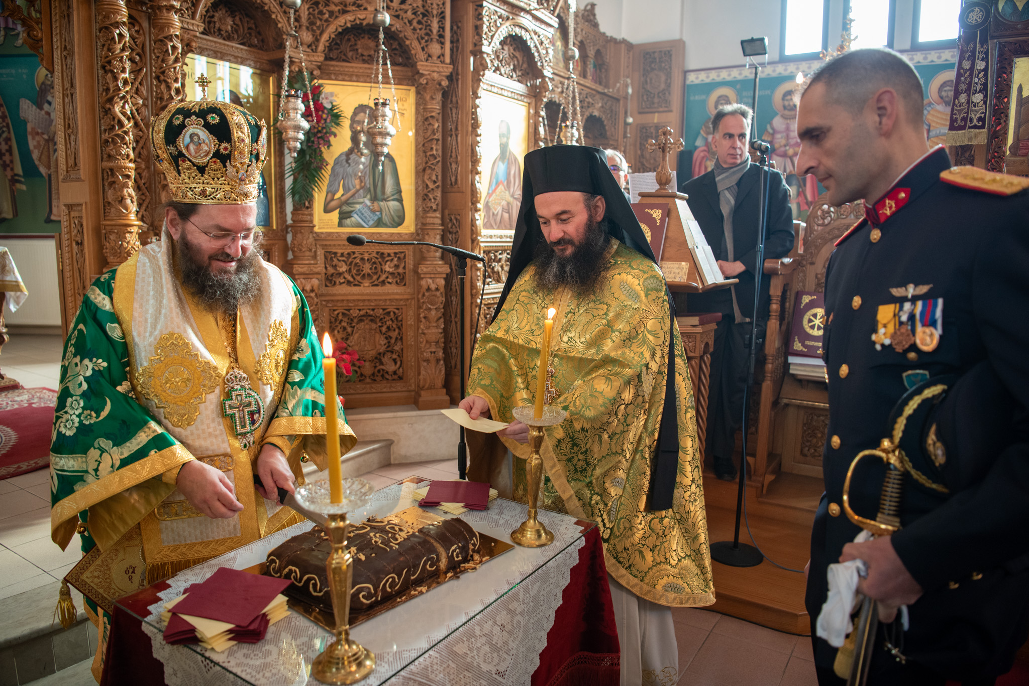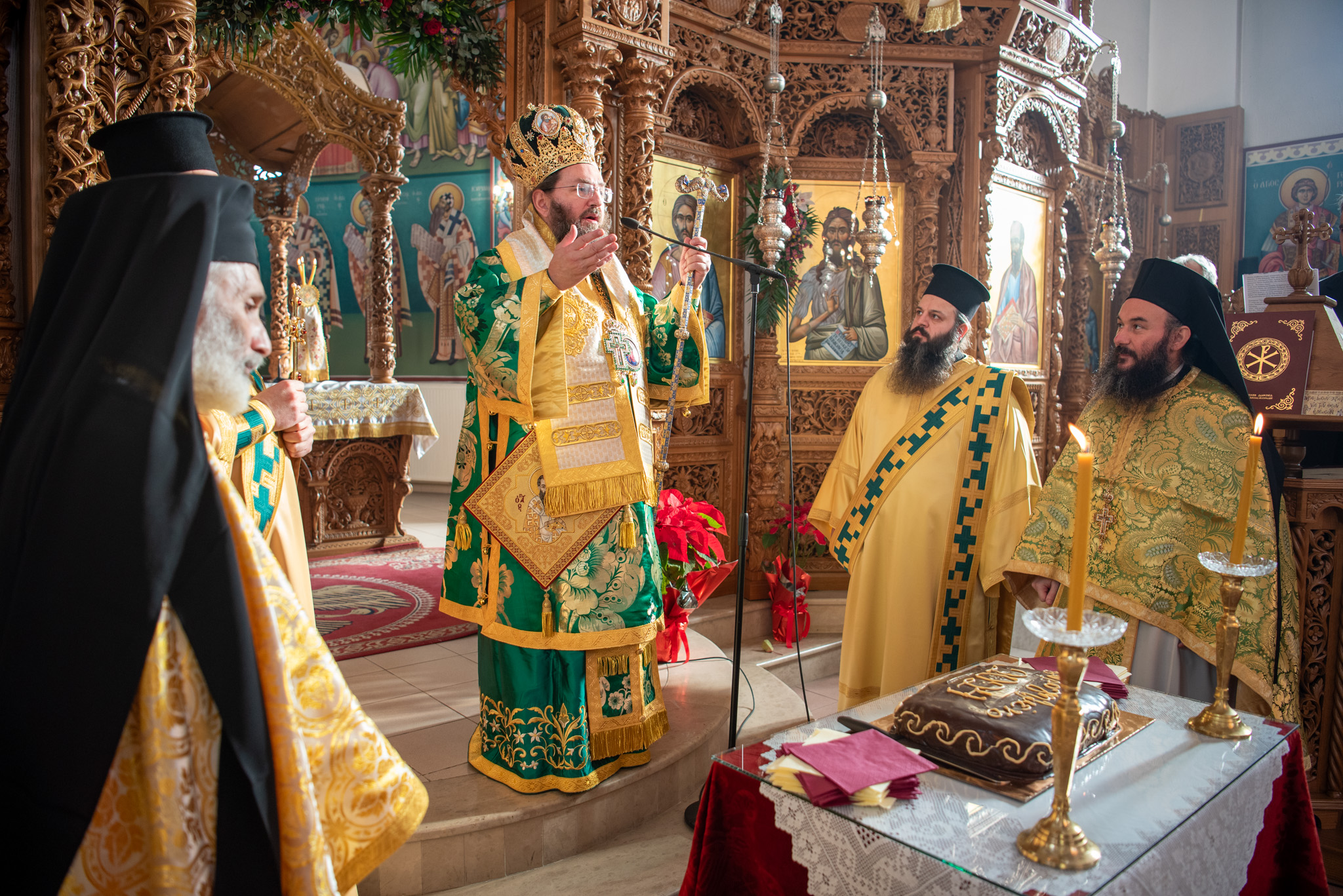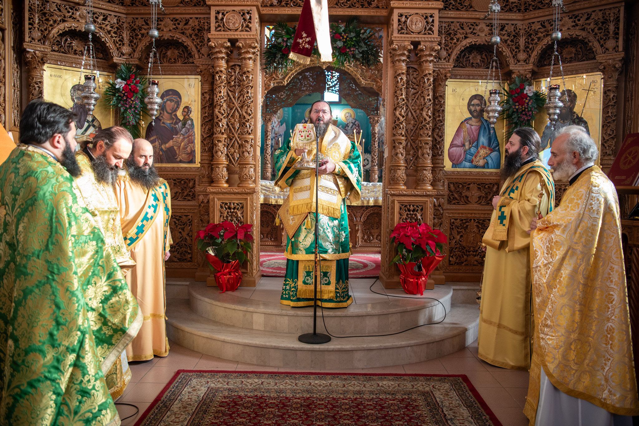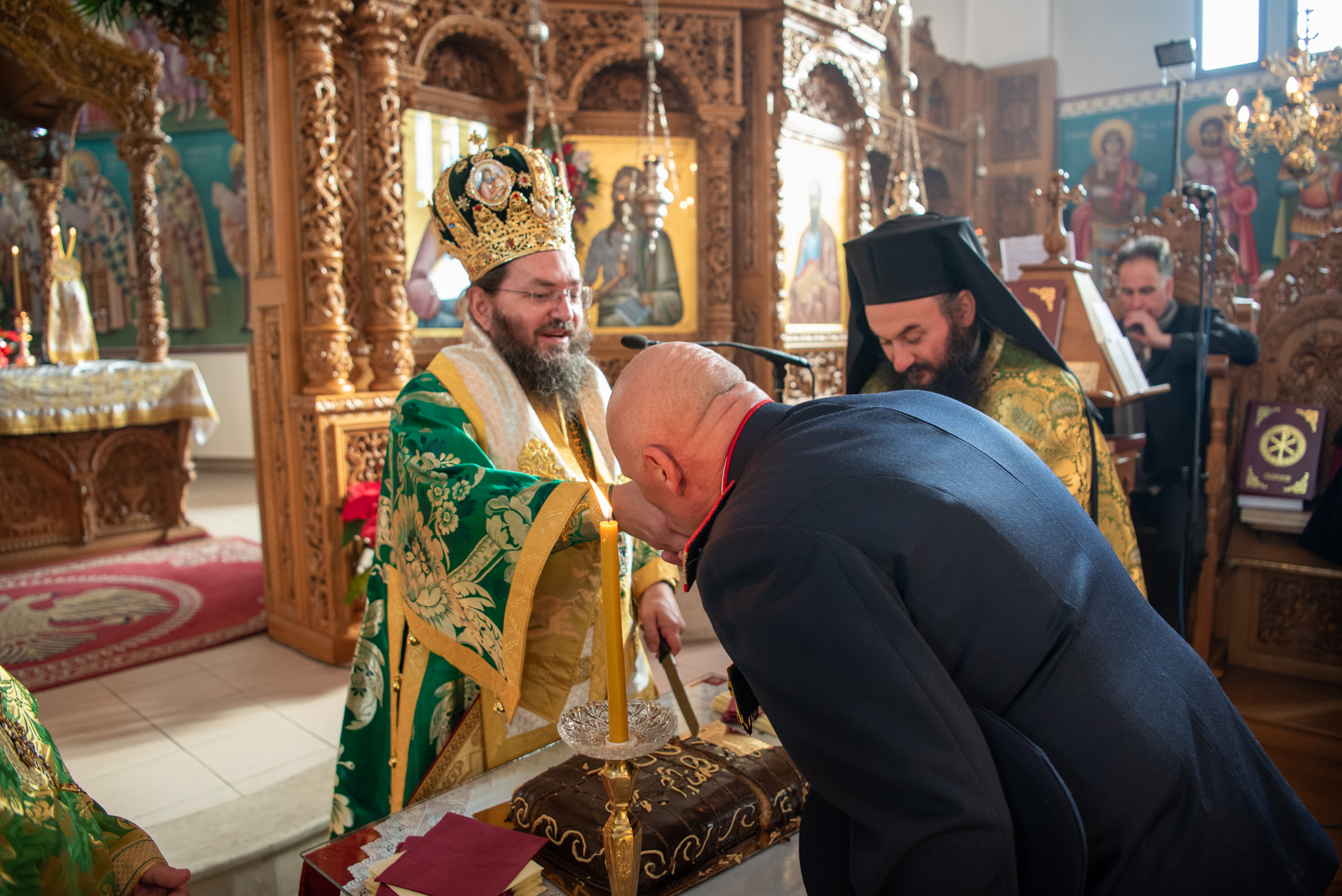 Του πανηγυρικού Όρθρου χοροστάτησε και της Θείας Λειτουργίας του Μ. Βασιλείου προέστη ο σεπτός Ποιμενάρχης του Κιλκίς, Σεβασμιώτατος Μητροπολίτης κ. Βαρθολομαίος, πλαισιούμενος από τον Πρωτοσυγκελλεύοντα της Ι. Μητροπόλεως Παν. Αρχιμ. Επιφάνιο Θεοδωρίδη, τον Παν. Αρχιμ. π. Βαρθολομαίο Τασιούλη και τον π. Βασίλειο Σαββίδη, τον Αρχιδιάκονο π. Φιλόθεο Τσαμπαζάκη και τον Ιεροδιάκονο π. Σάββα Αμοιρίδη, ενώ συμπροσευχόμενοι στο ιερό βήμα παρέστησαν ο πολιός Αρχιμανδρίτης π. Νικόλαος Πιλιτσόπουλος και ο π. Διογένης Λαζαρίδης.