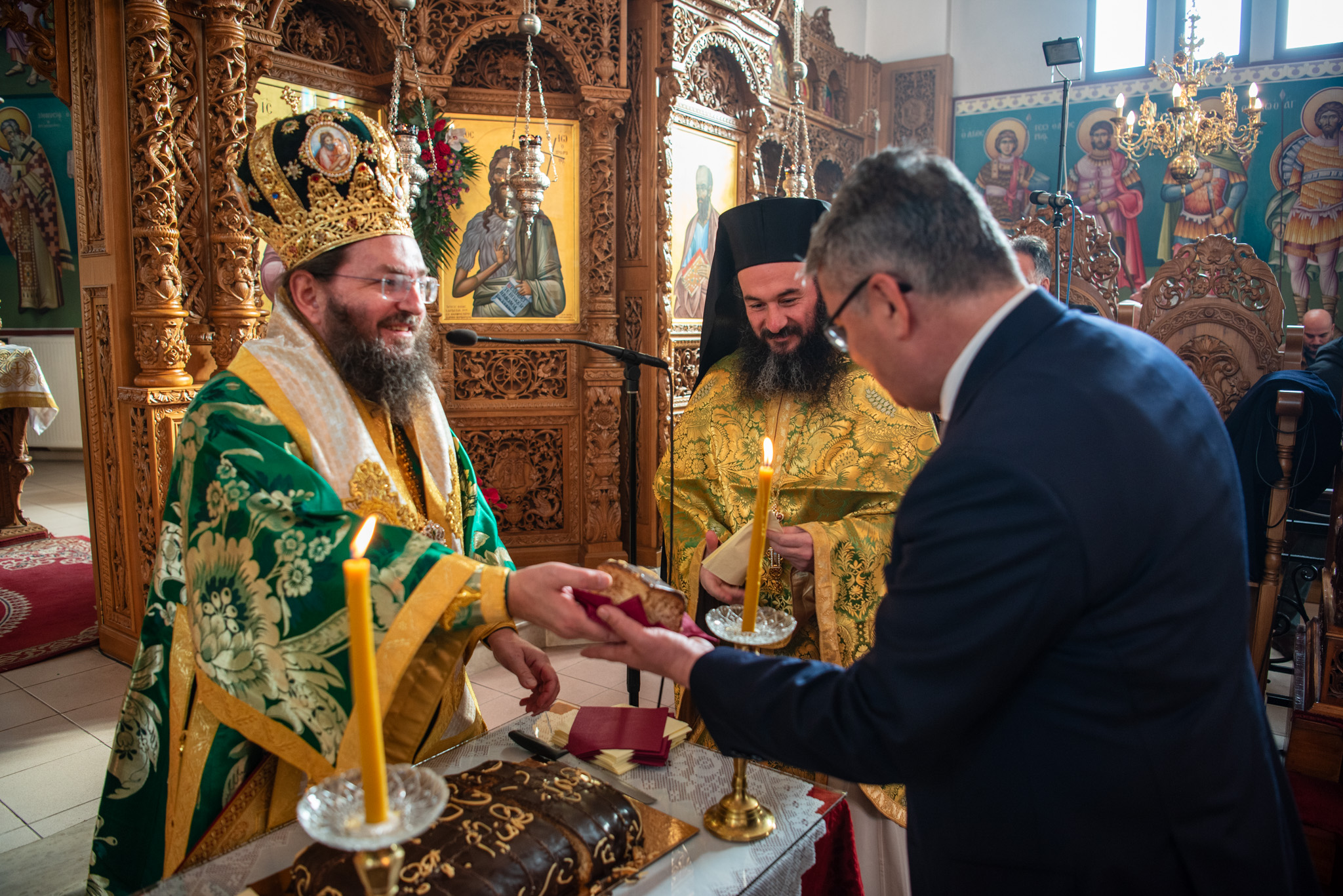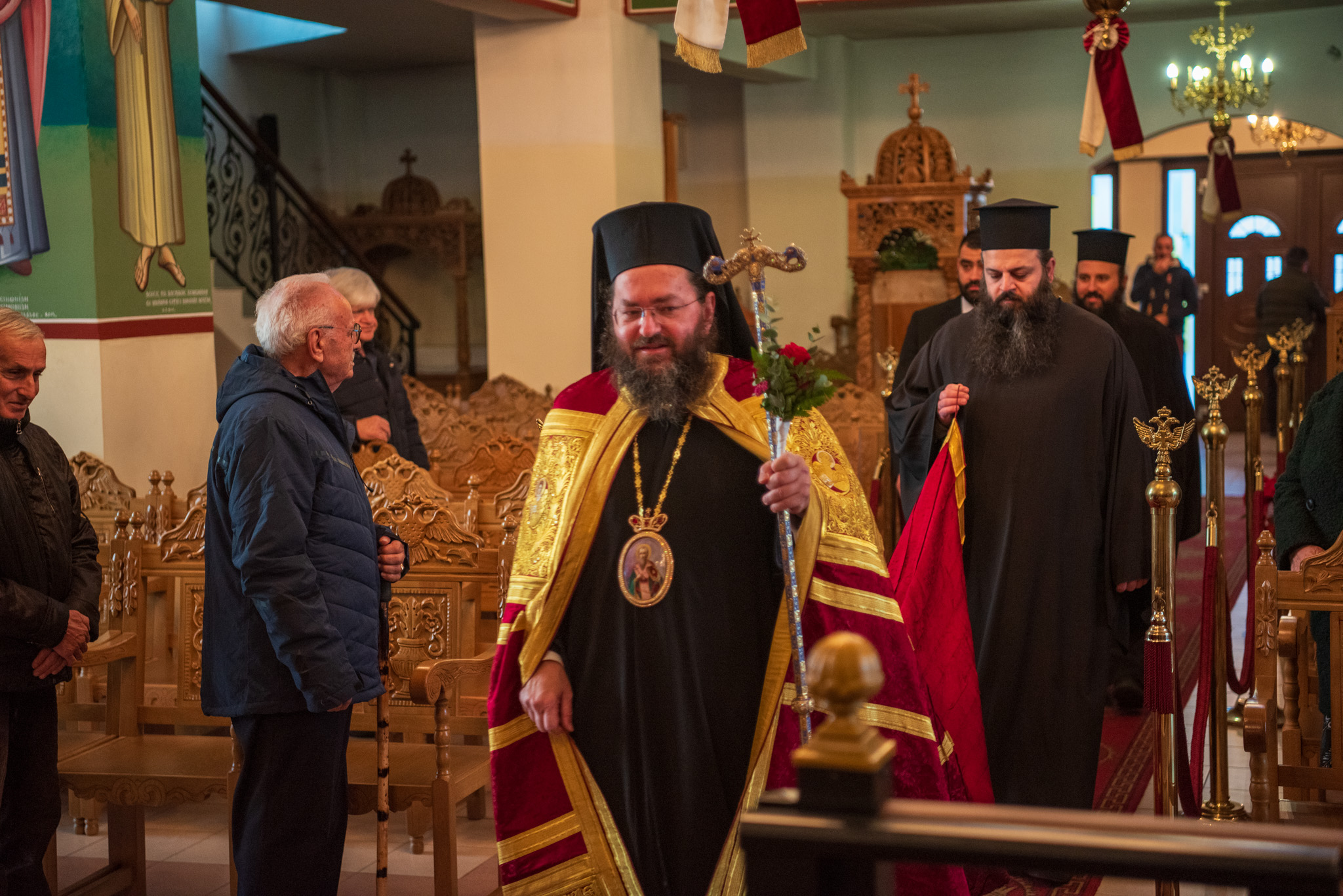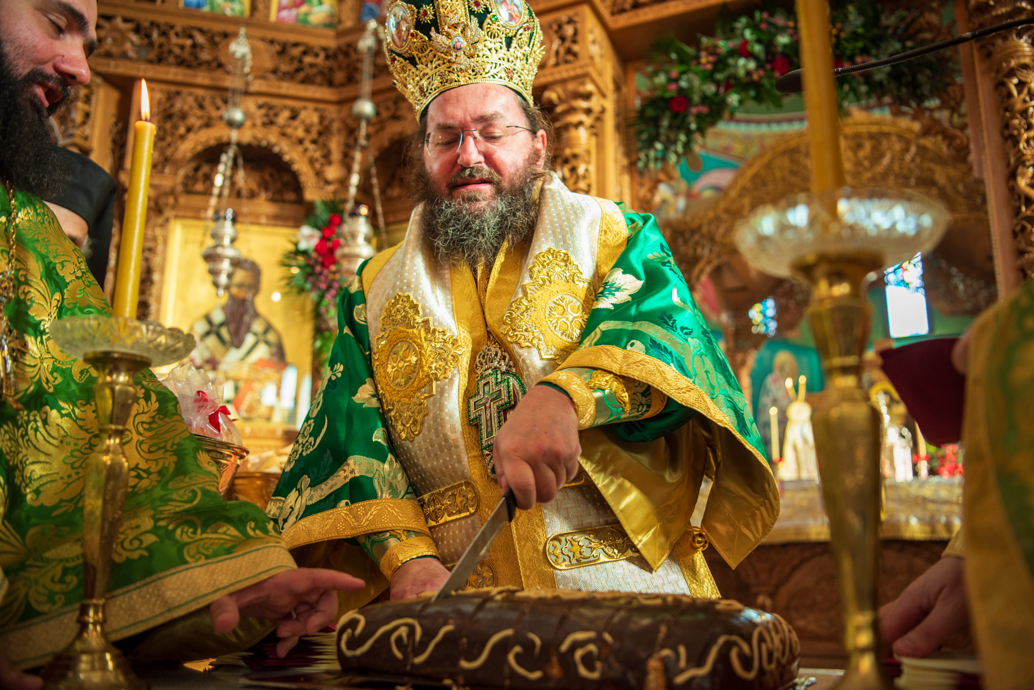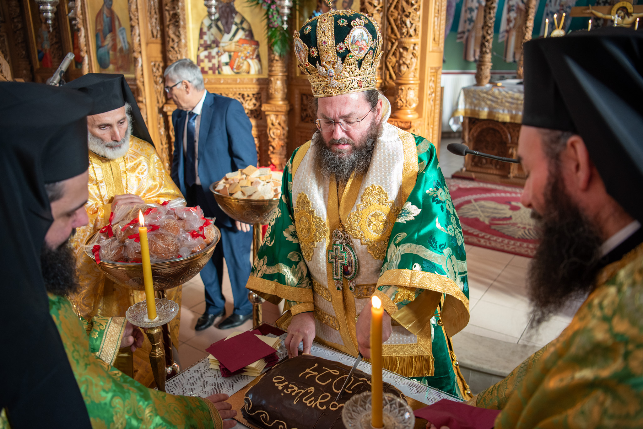 Του πανηγυρικού Όρθρου χοροστάτησε και της Θείας Λειτουργίας του Μ. Βασιλείου προέστη ο σεπτός Ποιμενάρχης του Κιλκίς, Σεβασμιώτατος Μητροπολίτης κ. Βαρθολομαίος, πλαισιούμενος από τον Πρωτοσυγκελλεύοντα της Ι. Μητροπόλεως Παν. Αρχιμ. Επιφάνιο Θεοδωρίδη, τον Παν. Αρχιμ. π. Βαρθολομαίο Τασιούλη και τον π. Βασίλειο Σαββίδη, τον Αρχιδιάκονο π. Φιλόθεο Τσαμπαζάκη και τον Ιεροδιάκονο π. Σάββα Αμοιρίδη, ενώ συμπροσευχόμενοι στο ιερό βήμα παρέστησαν ο πολιός Αρχιμανδρίτης π. Νικόλαος Πιλιτσόπουλος και ο π. Διογένης Λαζαρίδης.