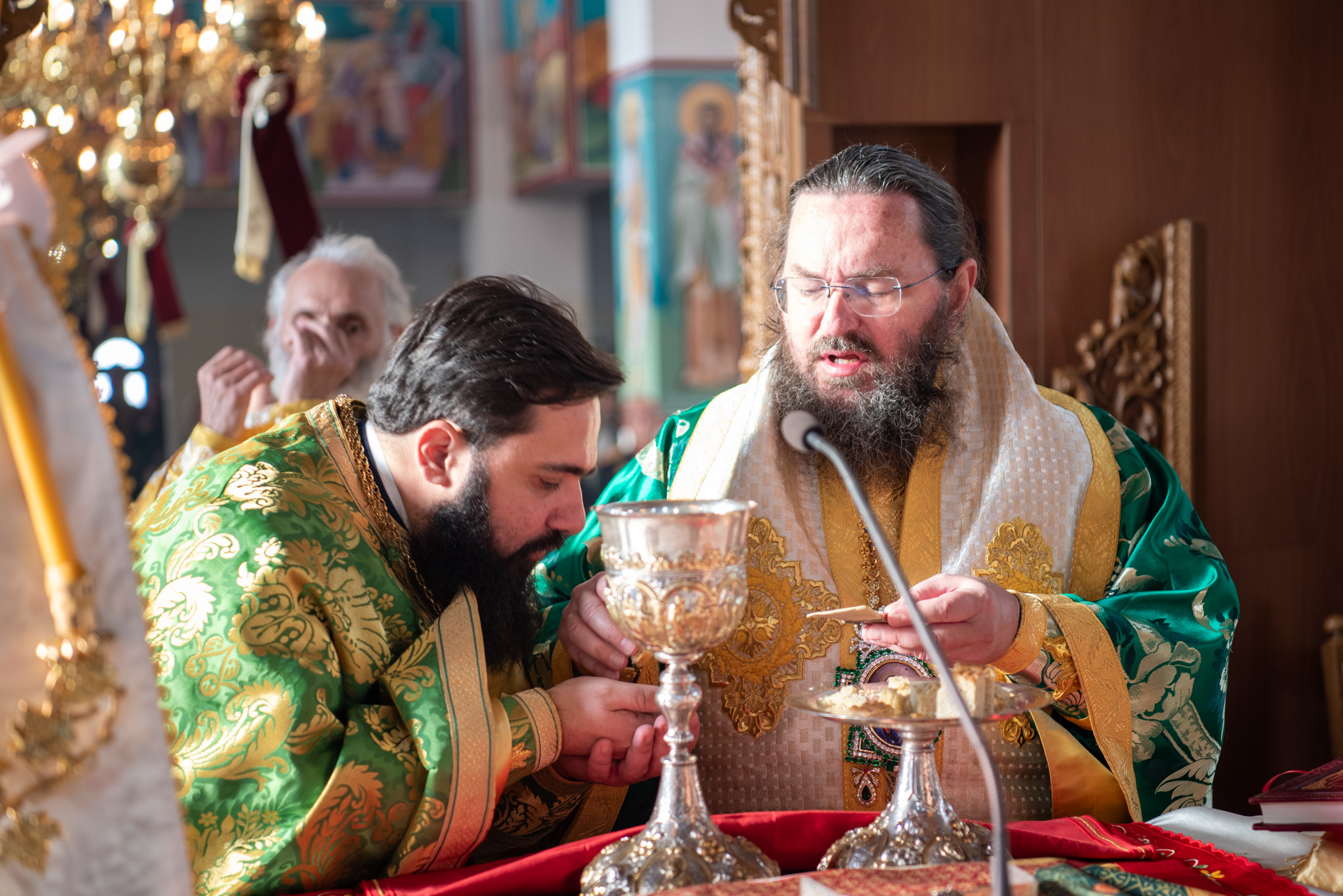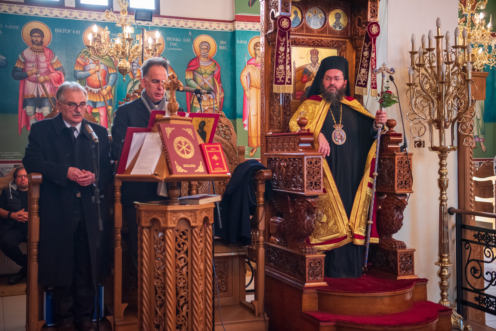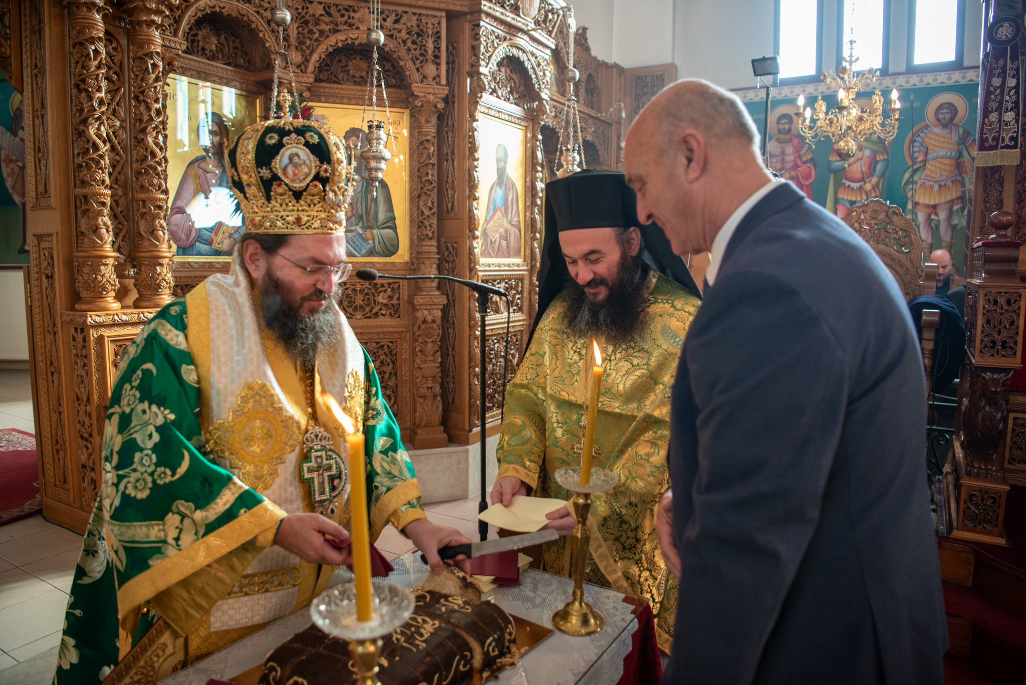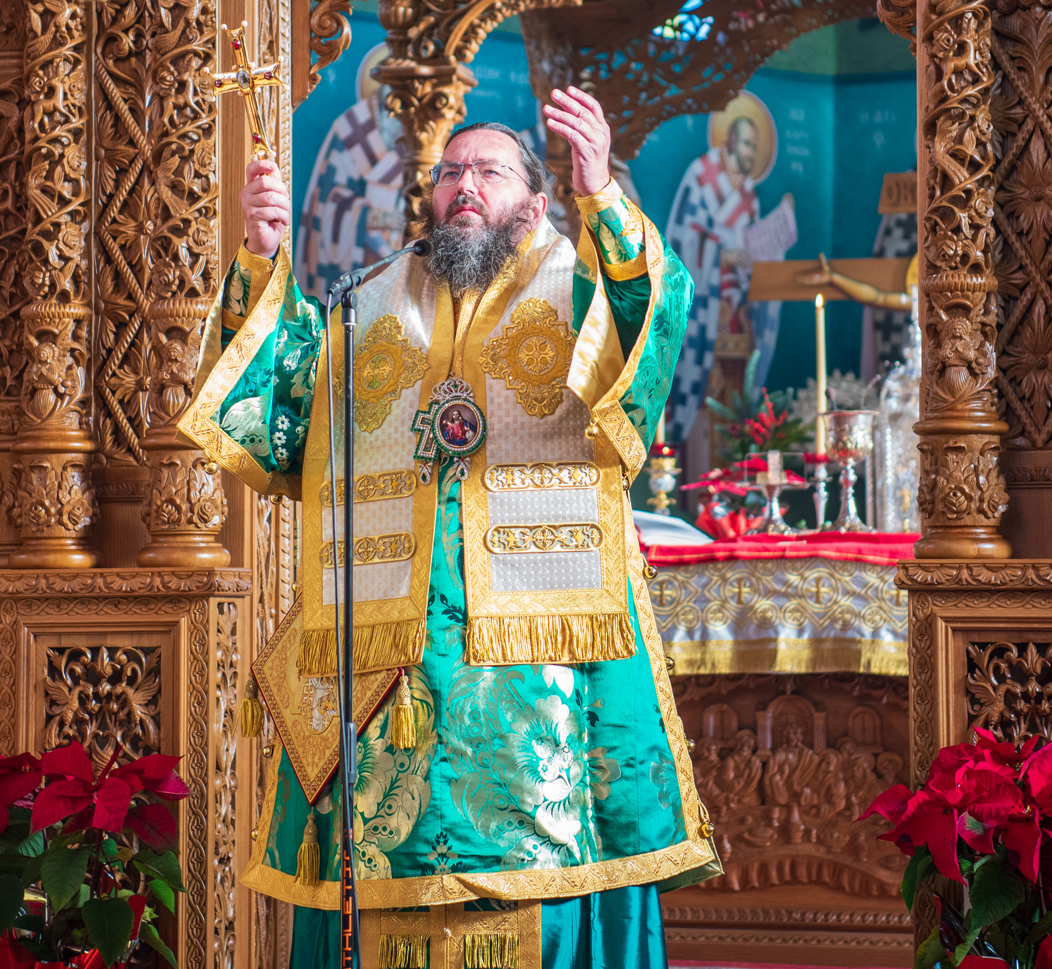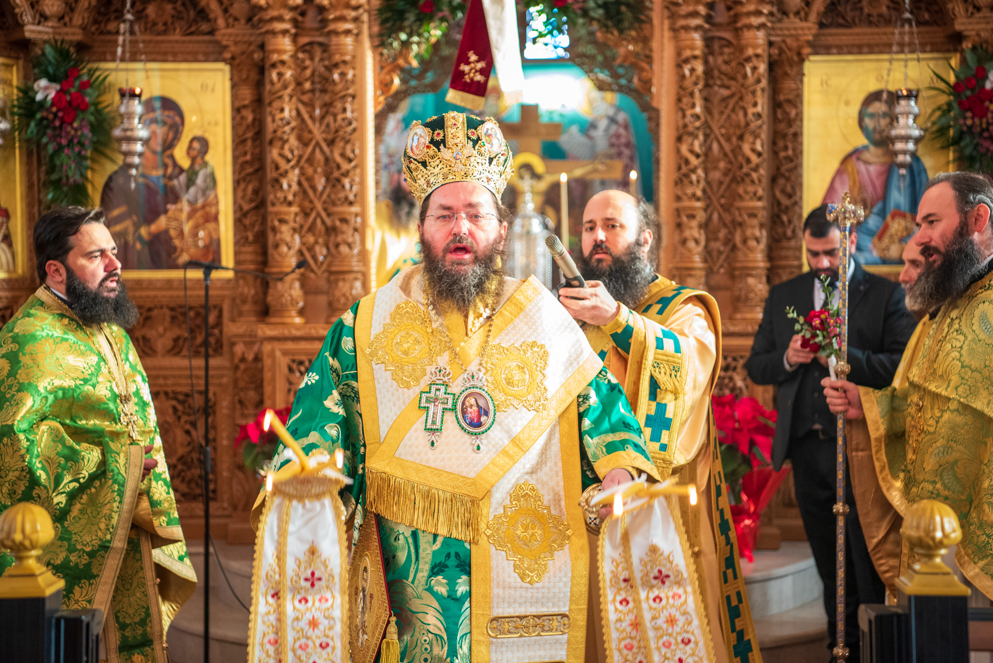 Του πανηγυρικού Όρθρου χοροστάτησε και της Θείας Λειτουργίας του Μ. Βασιλείου προέστη ο σεπτός Ποιμενάρχης του Κιλκίς, Σεβασμιώτατος Μητροπολίτης κ. Βαρθολομαίος, πλαισιούμενος από τον Πρωτοσυγκελλεύοντα της Ι. Μητροπόλεως Παν. Αρχιμ. Επιφάνιο Θεοδωρίδη, τον Παν. Αρχιμ. π. Βαρθολομαίο Τασιούλη και τον π. Βασίλειο Σαββίδη, τον Αρχιδιάκονο π. Φιλόθεο Τσαμπαζάκη και τον Ιεροδιάκονο π. Σάββα Αμοιρίδη, ενώ συμπροσευχόμενοι στο ιερό βήμα παρέστησαν ο πολιός Αρχιμανδρίτης π. Νικόλαος Πιλιτσόπουλος και ο π. Διογένης Λαζαρίδης.