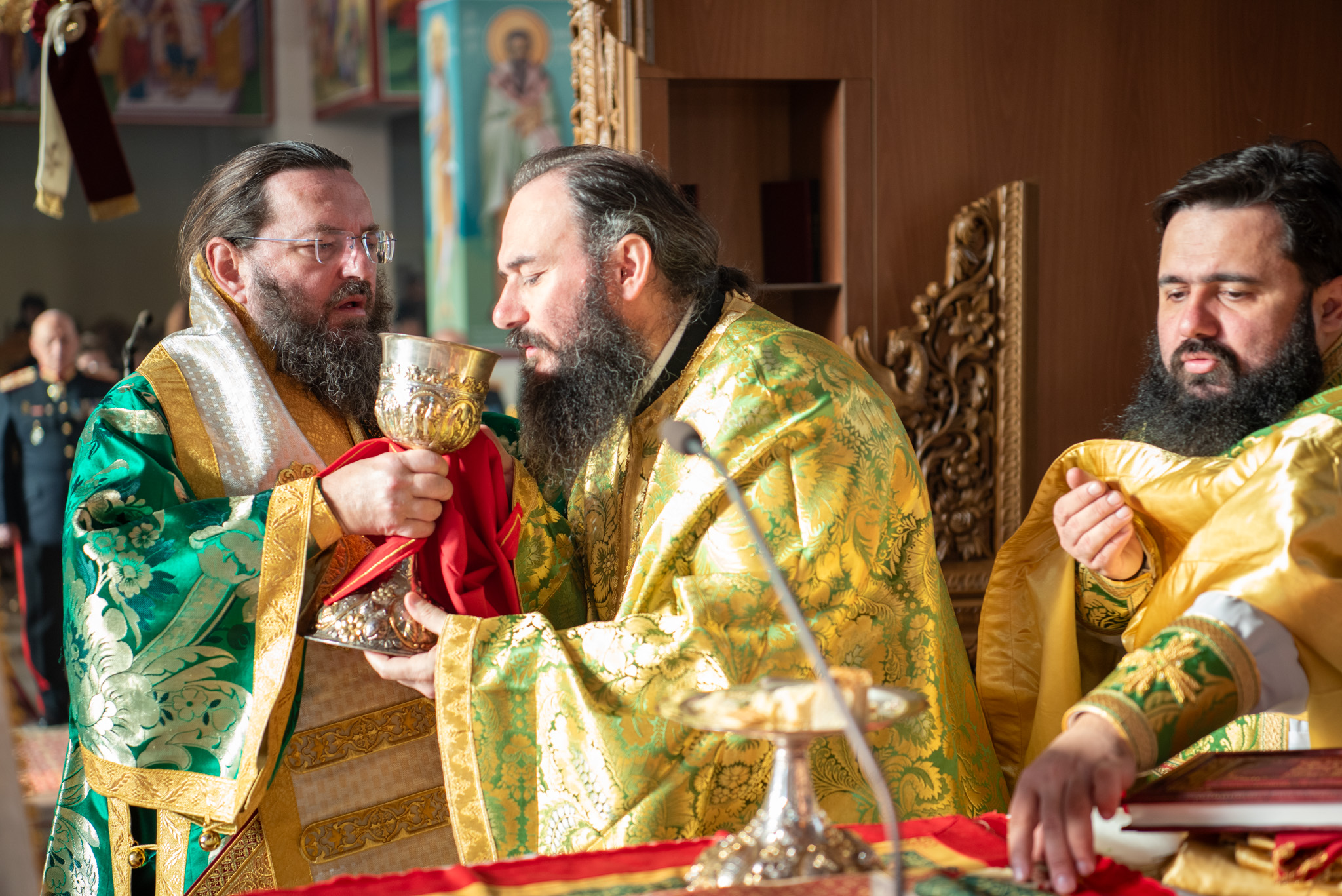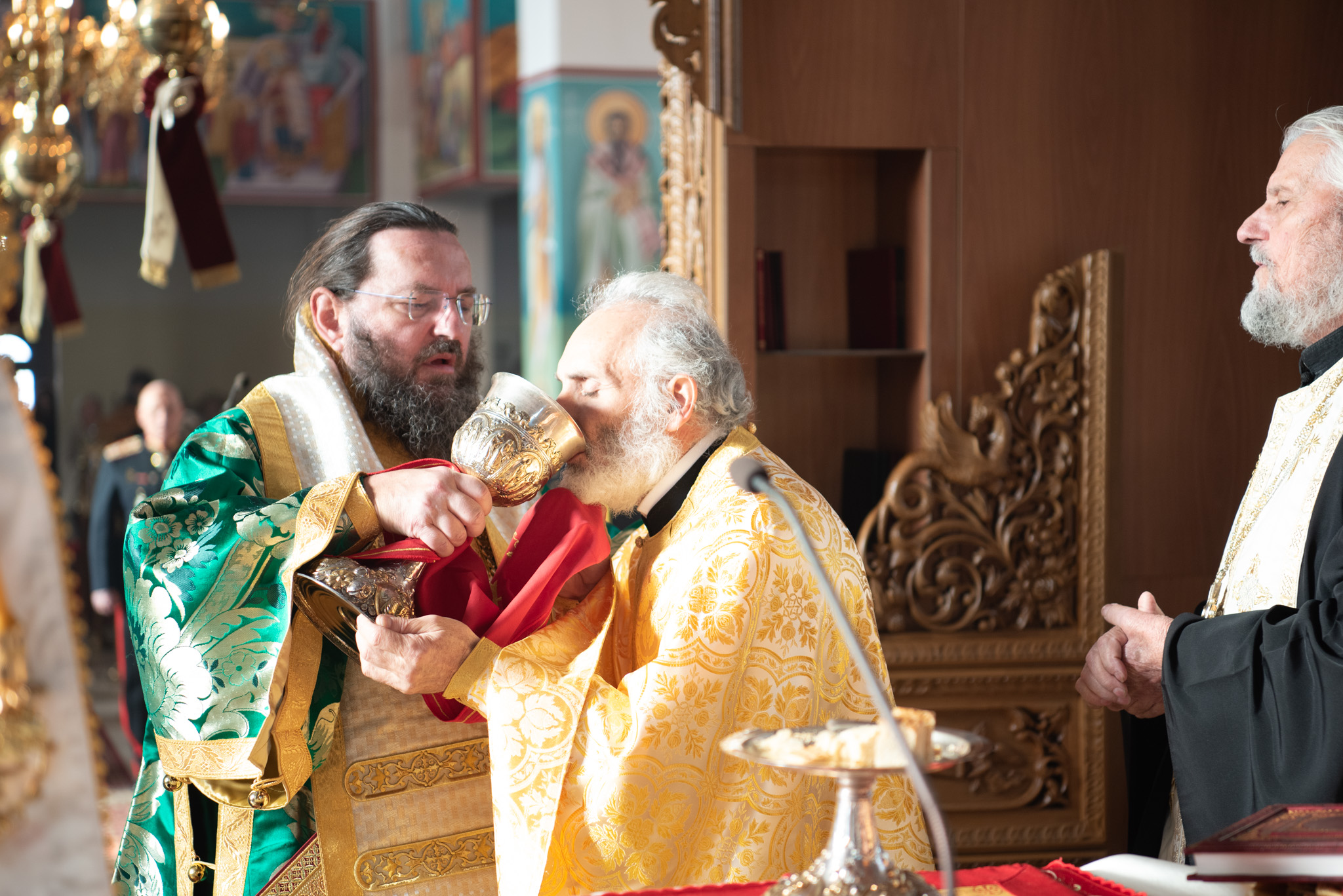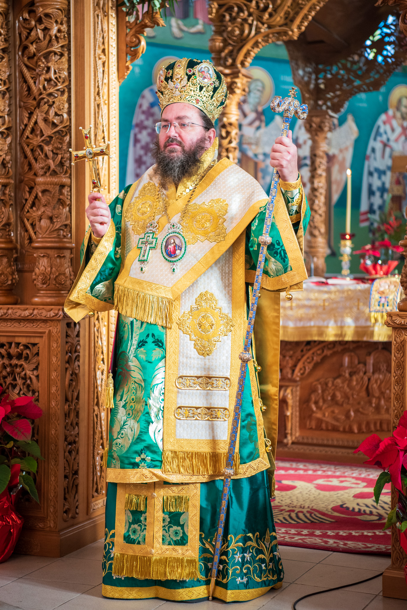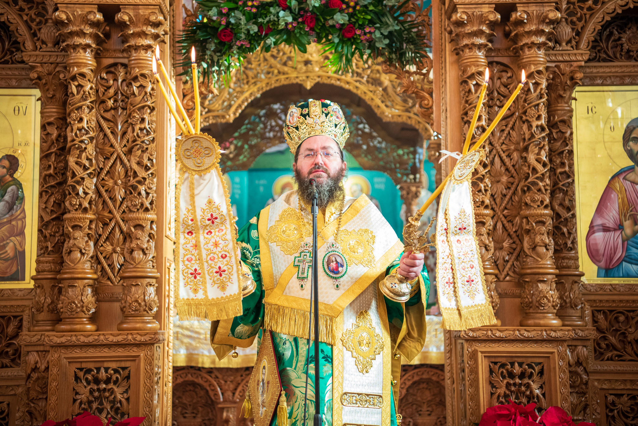 Του πανηγυρικού Όρθρου χοροστάτησε και της Θείας Λειτουργίας του Μ. Βασιλείου προέστη ο σεπτός Ποιμενάρχης του Κιλκίς, Σεβασμιώτατος Μητροπολίτης κ. Βαρθολομαίος, πλαισιούμενος από τον Πρωτοσυγκελλεύοντα της Ι. Μητροπόλεως Παν. Αρχιμ. Επιφάνιο Θεοδωρίδη, τον Παν. Αρχιμ. π. Βαρθολομαίο Τασιούλη και τον π. Βασίλειο Σαββίδη, τον Αρχιδιάκονο π. Φιλόθεο Τσαμπαζάκη και τον Ιεροδιάκονο π. Σάββα Αμοιρίδη, ενώ συμπροσευχόμενοι στο ιερό βήμα παρέστησαν ο πολιός Αρχιμανδρίτης π. Νικόλαος Πιλιτσόπουλος και ο π. Διογένης Λαζαρίδης.