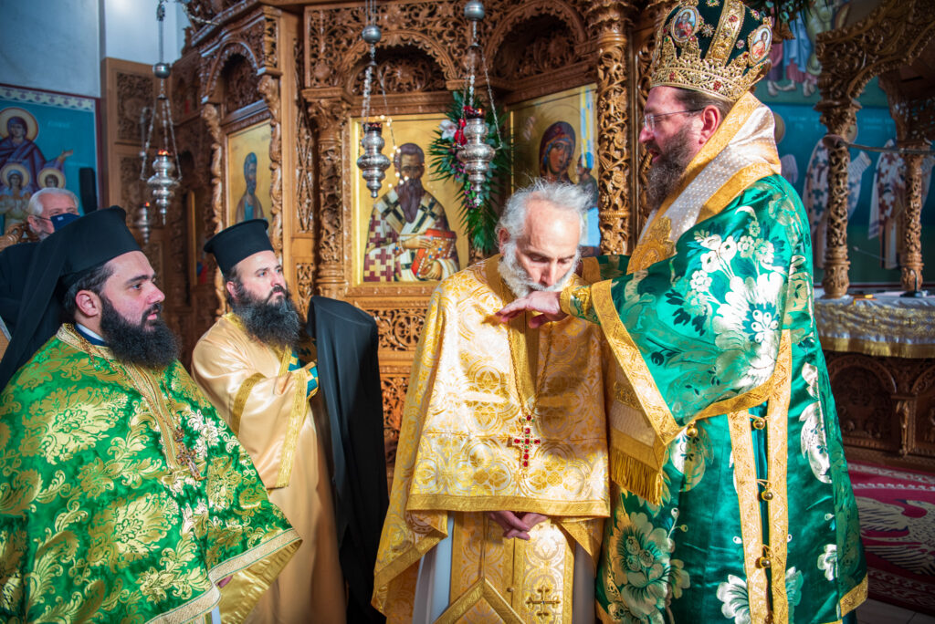 Προ της απολύσεως ο Σεβασμιώτατος χειροθέτησε σε Αρχιμανδρίτη τον π. Βασίλειο Σαββίδη, αναφωνόντας “Άξιος”!