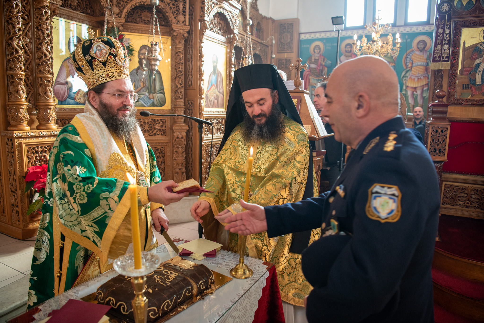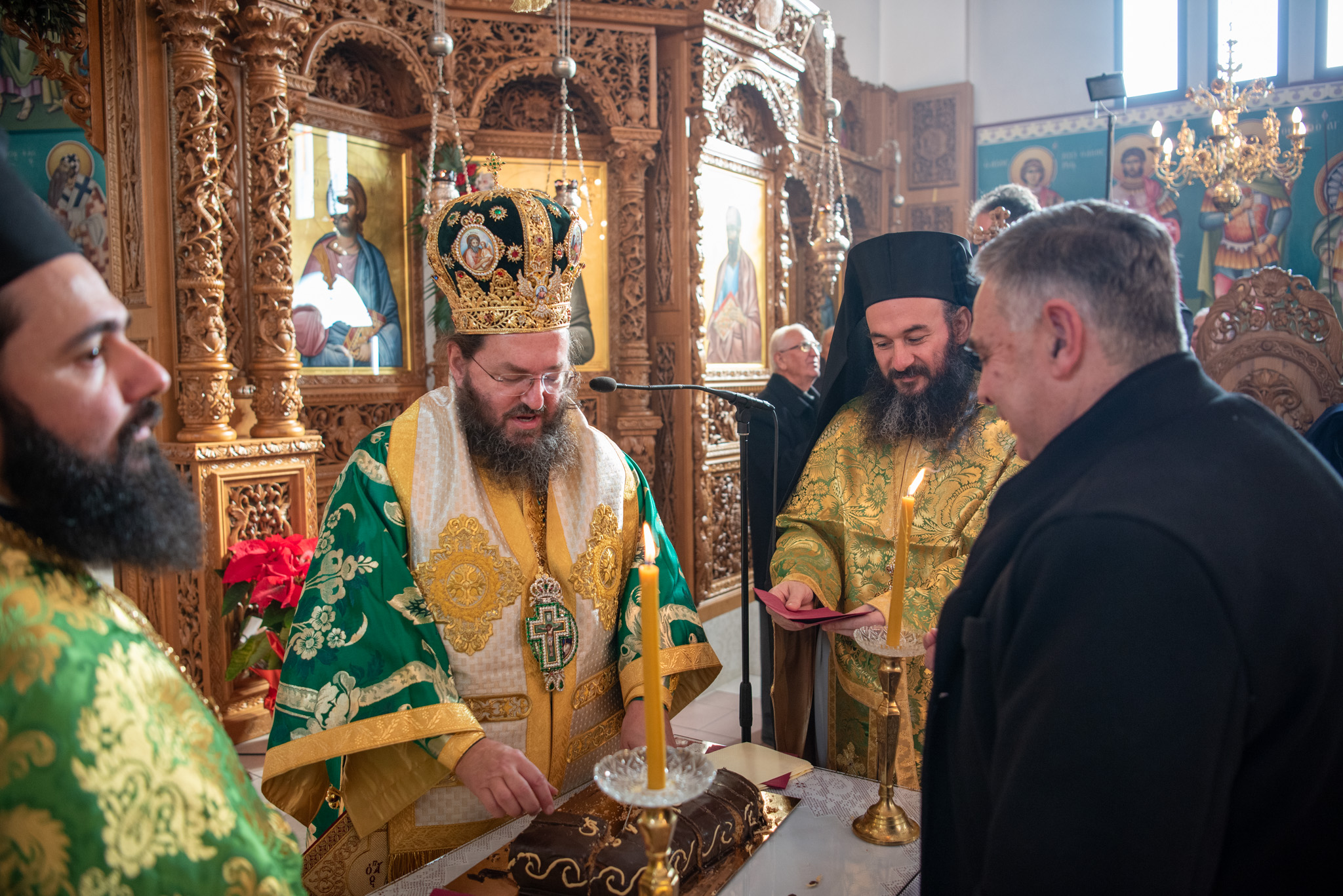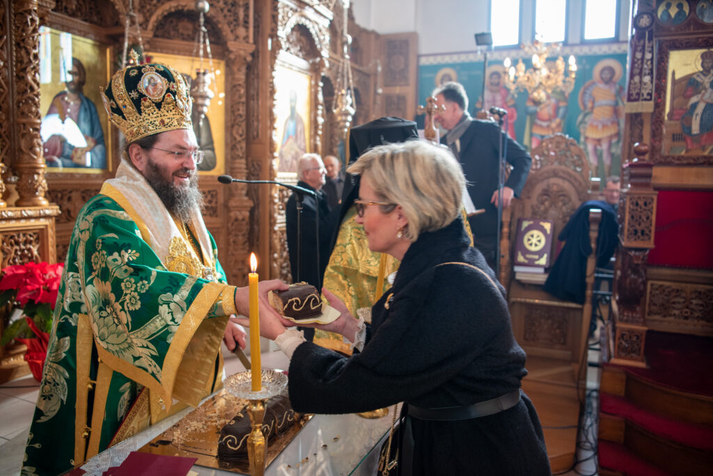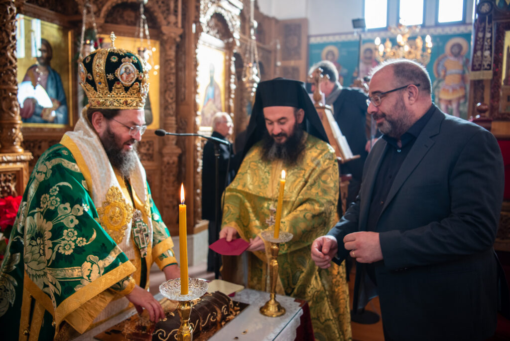 Ο Σεβασμιώτατος κ. Βαρθολομαίος ευλόγησε και έκοψε την πατροπαράδοτη βασιλειόπιτα, ευχόμενος καταλλήλως για τη νέα χρονιά με υγεία και ειρήνη προς τους άρχοντες, τον ιερό κλήρο και το εκκλησίασμα.