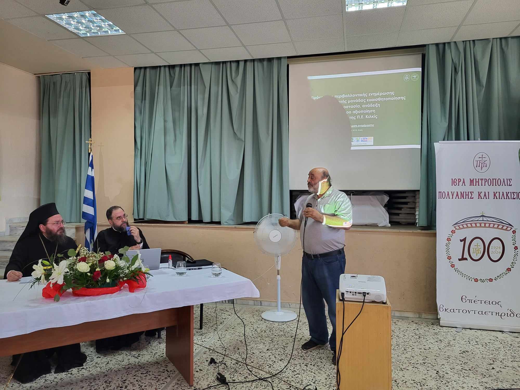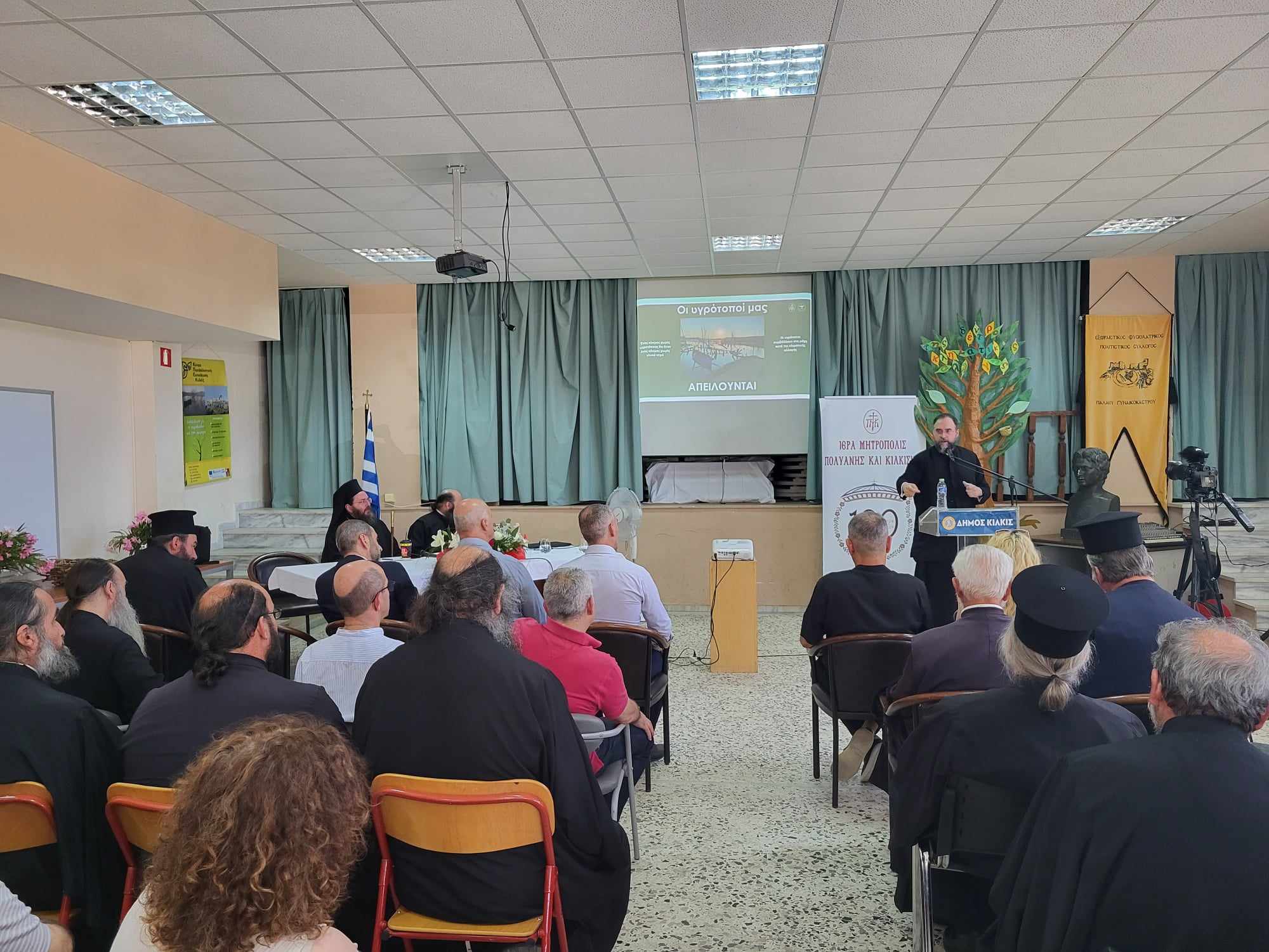 Ο Σεβασμιώτατος Μητροπολίτης Πολυανής και Κιλκισίου κ. Βαρθολομαίος πριν την ολοκλήρωση της συνάξεως αφού ευχαρίστησε τον ομιλητή, τους εκπροσώπους των φορέων αλλά και τους κληρικούς της Ιεράς Μητροπόλεως για την παρουσία τους, μίλησε για το πόσο σημαντική είναι η προστασία του περιβάλλοντος και έδωσε το έναυσμα για τον προγραμματισμό και την υλοποίηση δράσεων προς αυτή την κατεύθυνση.