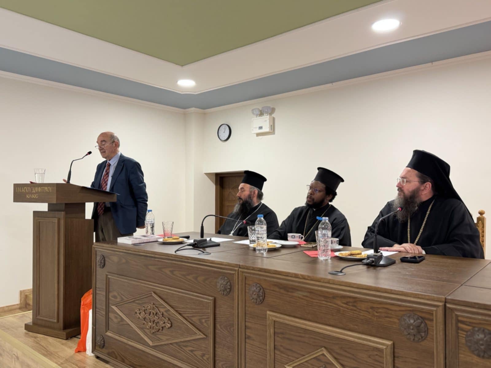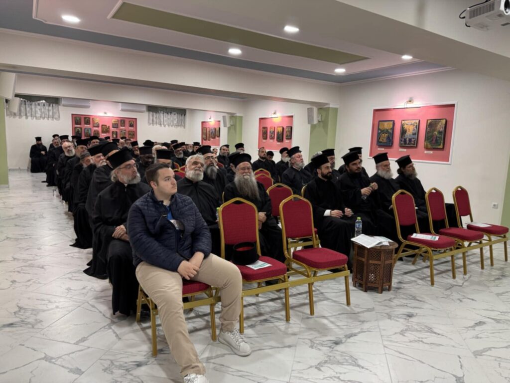 Μετά την εναρκτήρια προσευχή, ο Σεβασμιώτατος Μητροπολίτης Πολυανής και Κιλκισίου κ. Βαρθολομαίος παρουσίασε στους Ιερείς τον Θεοφιλέστατο Επίσκοπο Τζίντζας και Ανατολικής Ουγκάντα κ. Σίλβεστρο, ο οποίος μίλησε για την πορεία και την προσφορά της Ορθοδοξίας και της Ιεραποστολής στην Ουγκάντα.