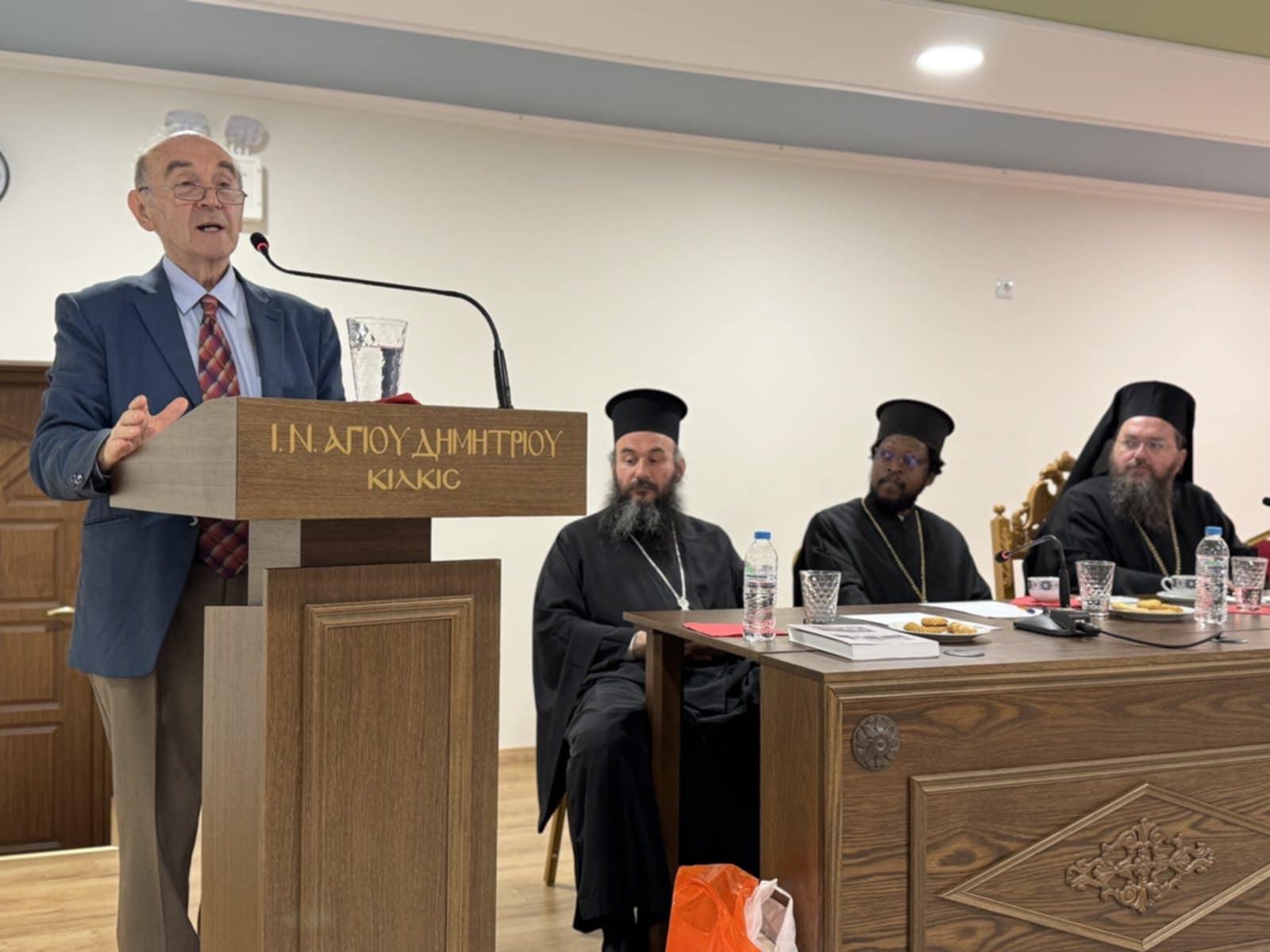 Στη συνέχεια το λόγο έλαβε ο Ομότιμος Καθηγητής της Θεολογικής Σχολής του Α.Π.Θ. κ. Μιχαήλ Τρίτος, ο οποίο ανέπτυξε το θέμα: “Ο Ιερεύς απέναντι στις προκλήσεις της αθεΐας”. Αφού ολοκλήρωσε την εμπεριστατωμένη εισήγησή του, απάντησε και σε σχετικές με αυτή ερωτήσεις των Ιερέων και πραγματοποιήθηκε γόνιμος διάλογος.