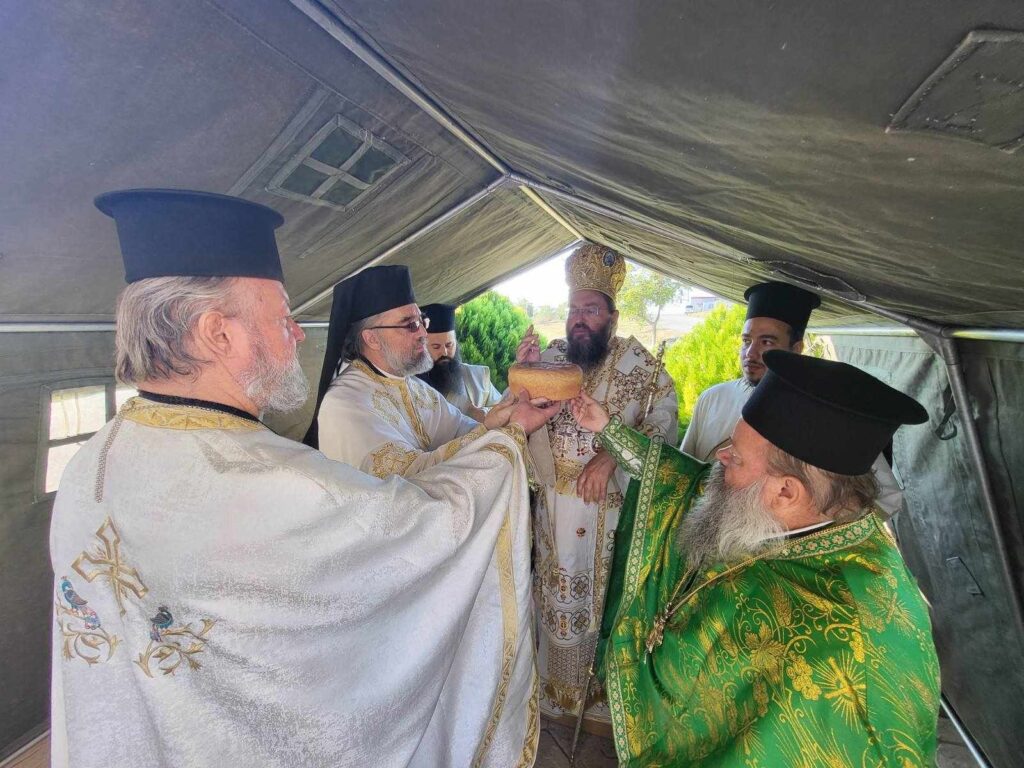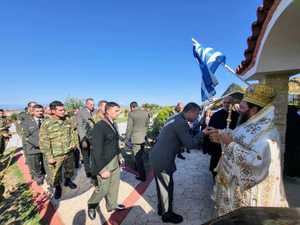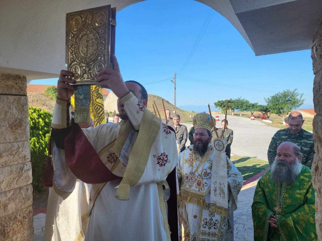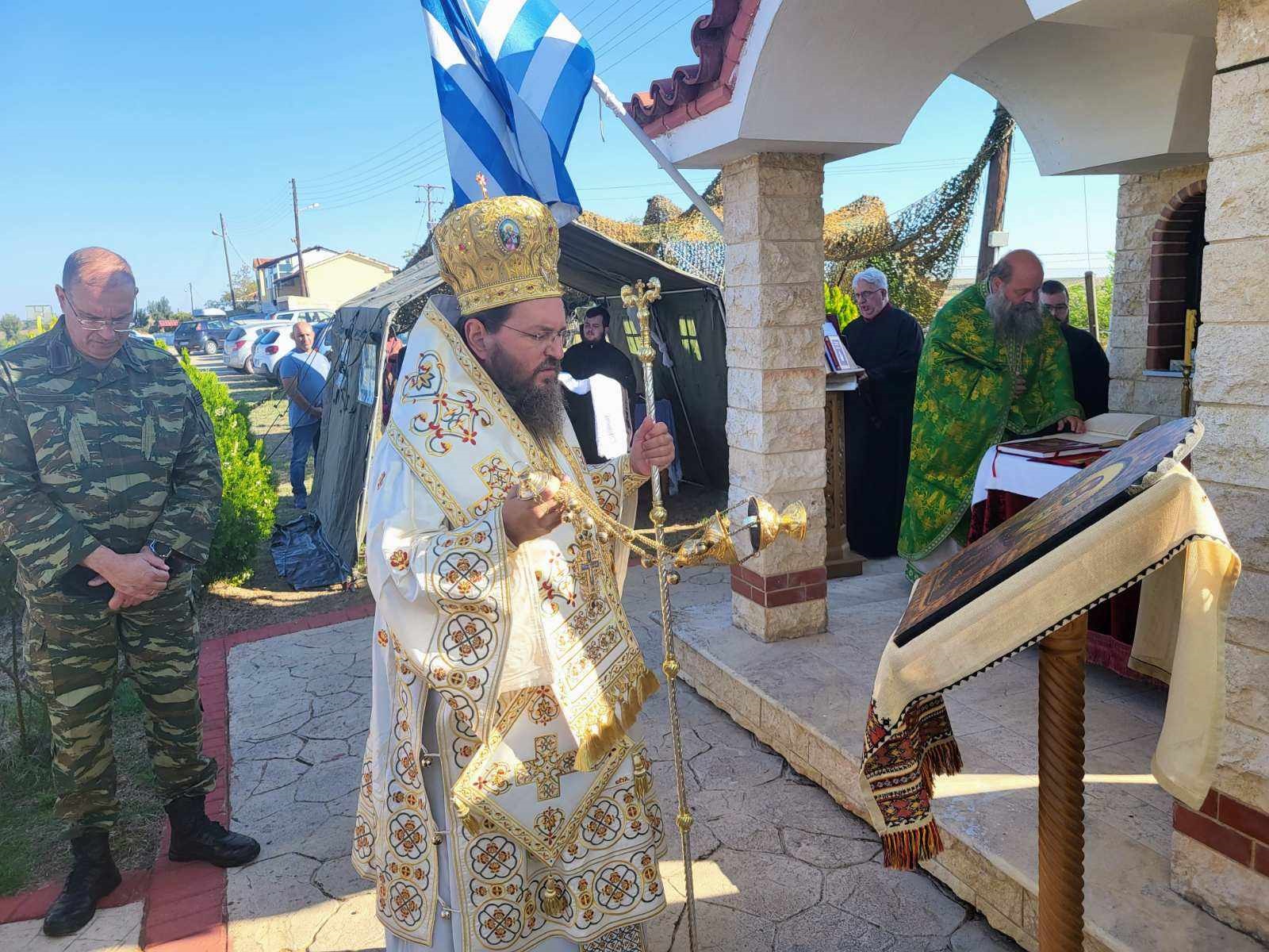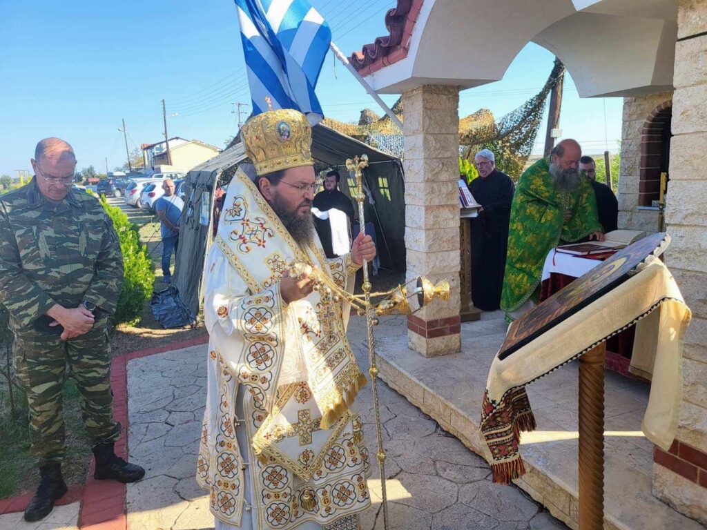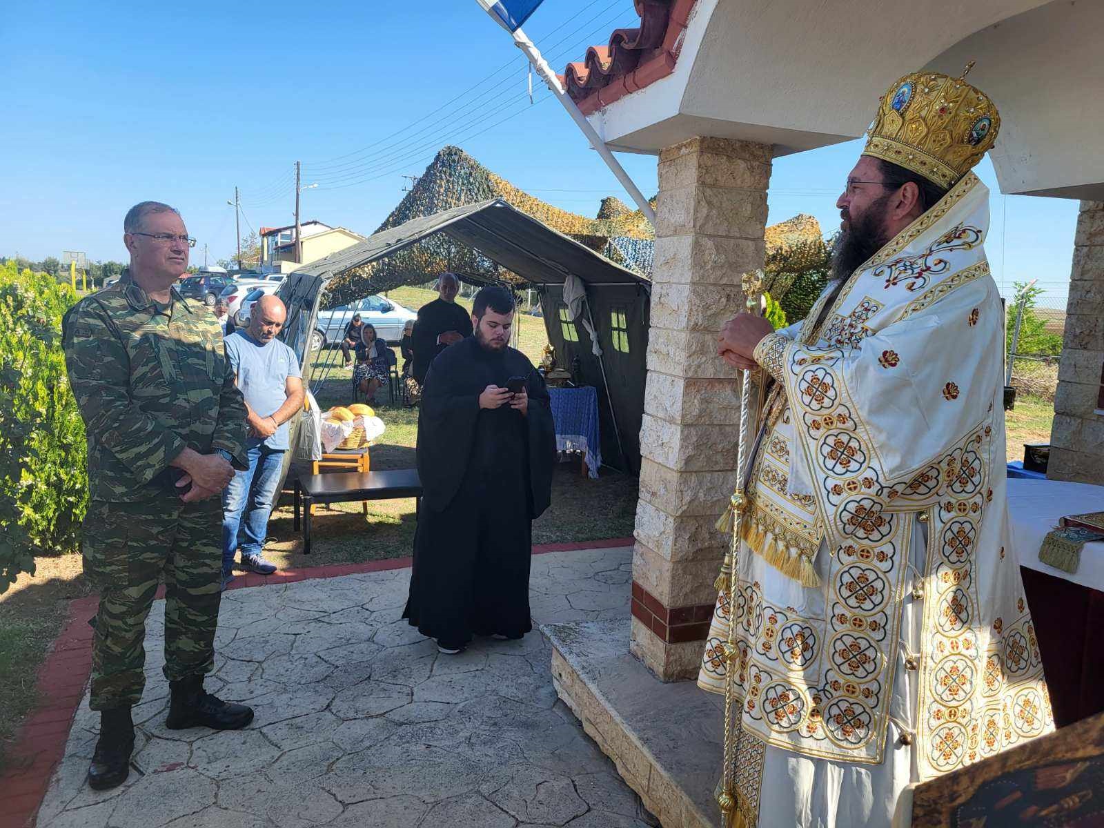 “Μεγάλη χαρά που στο Στρατόπεδο μας βρίσκεται Ιερό Θυσιαστήριο αφιερωμένο σε έναν Μάρτυρα της πίστεώς μας, ο οποίος τον 3ο μ.Χ. αι. δεν λιποτάκτησε από το καθήκον αλλά έδωσε την ορθή Μαρτυρία δηλώνοντας ότι είναι μαθητής του Χριστού” τόνισε στην αρχή της ομιλίας του ο σεπτός Ποιμενάρχης του Κιλκίς κ. Βαρθολομαίος και συνέχισε: