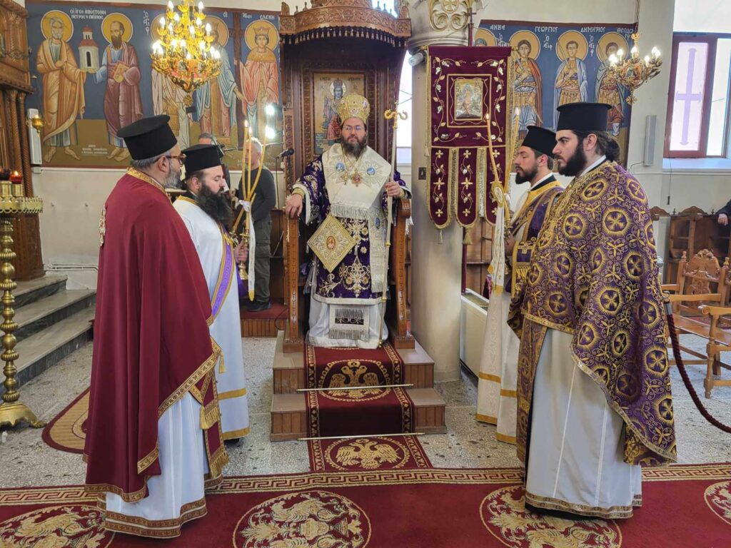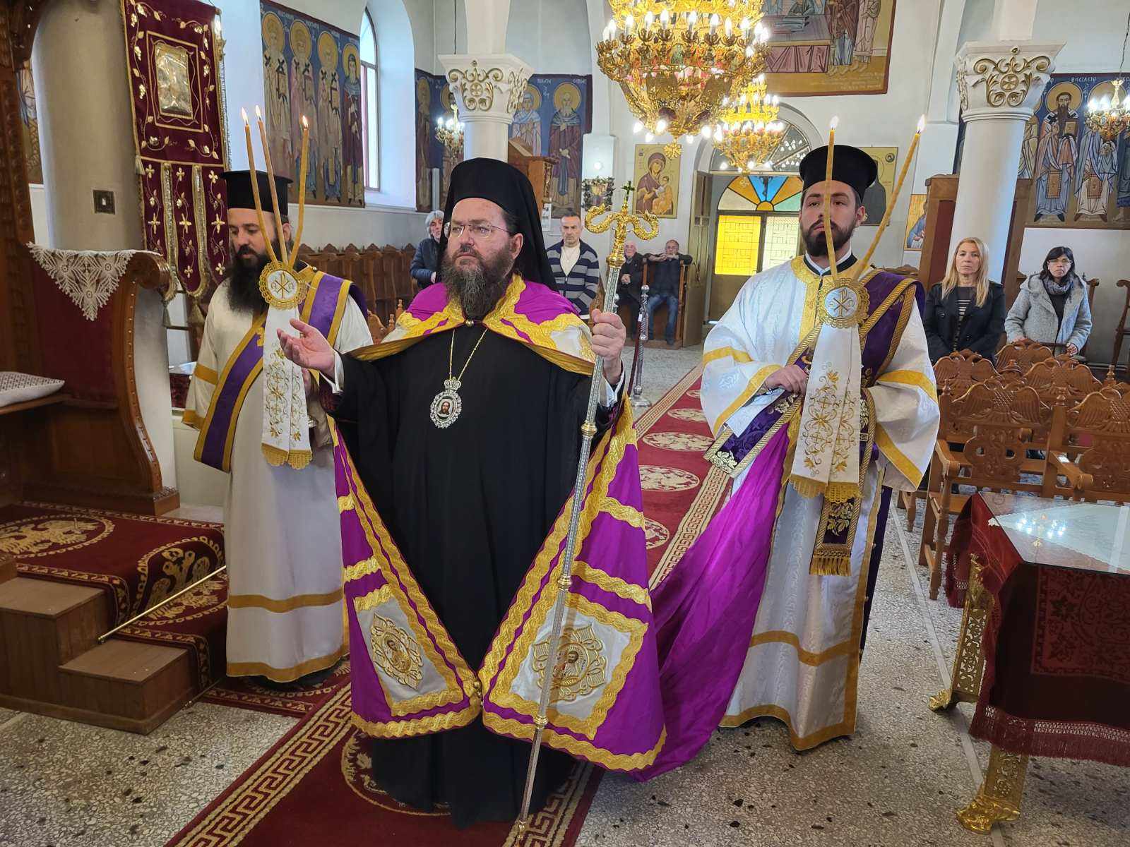 Στον Ιερό Ναό Υπαπαντής του Κυρίου του ορεινού οικισμού των Θεοδοσίων Κιλκίς ιερούργησε σήμερα, Β’ Κυριακή των Νηστειών, 31 Μαρτίου 2024, ο Σεβασμιώτατος Μητροπολίτης Πολυανής και Κιλκισίου κ. Βαρθολομαίος. Ημέρα, κατά την οποία η Αγία μας Εκκλησία προβάλλει την πατερική μορφή του Αγίου Γρηγορίου του Παλαμά, Αρχιεπισκόπου Θεσσαλονίκης, η οποία λειτουργεί ως φωτεινό ορόσημο την κατανυκτική περίοδο που διανύουμε.