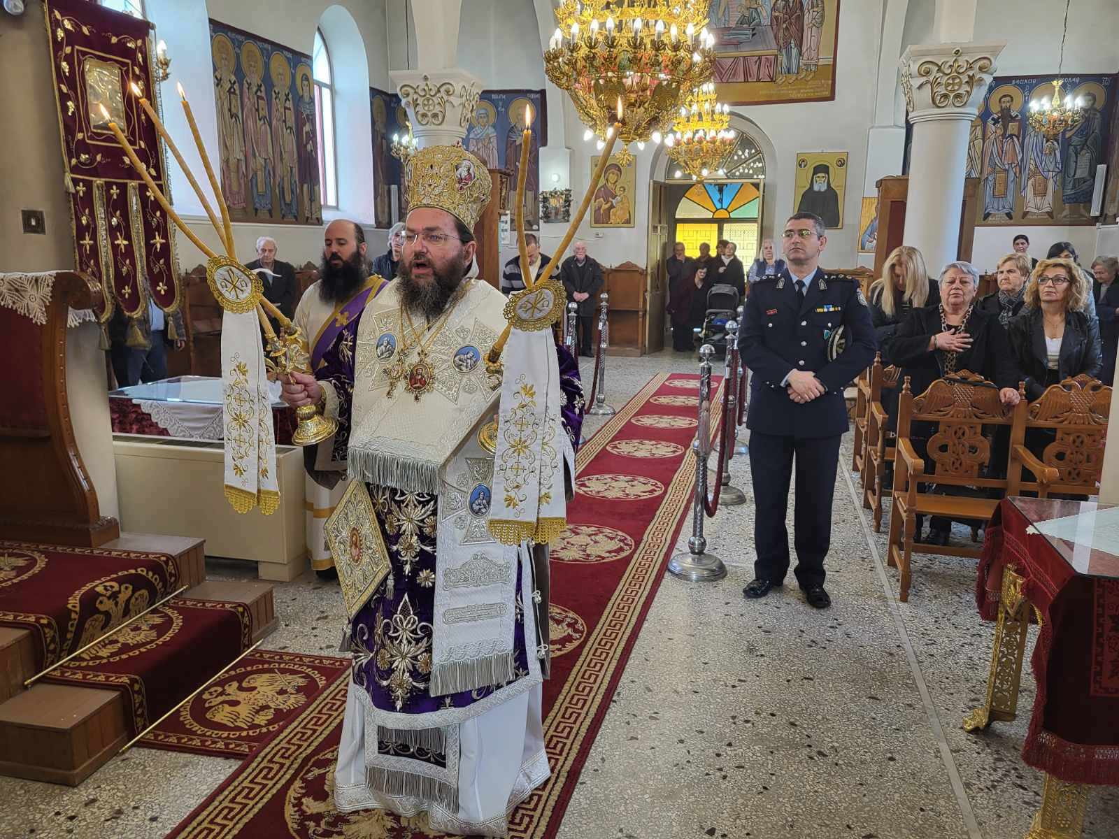 Ο Σεβασμιώτατος στο κήρυγμά του αναφέρθηκε στην ακουσθείσα Ευαγγελική Περικοπή περί της θεραπείας του παραλυτικού της Καπερναούμ για να τονίσει ότι η πίστη των τεσσάρων φίλων του έγινε αφορμή και αιτία να θεραπεύσει ο Κύριος τον παραλυτικό, διότι ο ευαγγελιστής μας πληροφορεί ότι «ιδών ο Ιησούς την πίστιν αυτών» προχωρεί στο θαύμα.