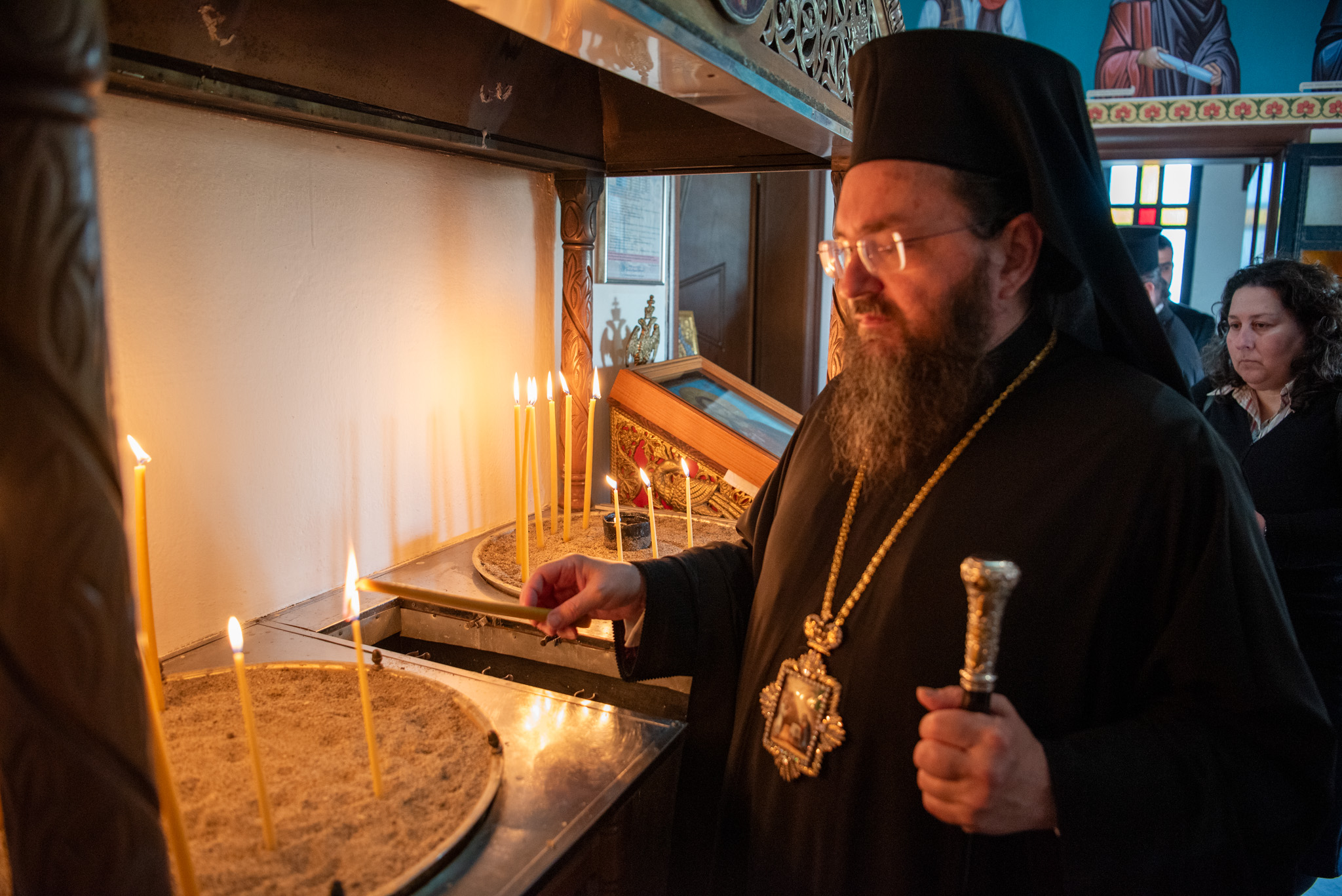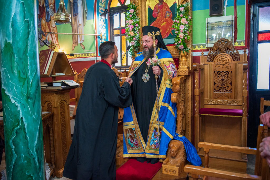 Το απόγευμα της Παρασκευής 5ης Απριλίου τ.έ., ο Σεβασμιώτατος Μητροπολίτης Πολυανής και Κιλκισίου κ. Βαρθολομαίος, ακολουθούμενος από τον Αρχιδιάκονο της Ιεράς Μητροπόλεως π. Φιλόθεο Τσαμπαζάκη, χοροστάτησε στην Γ’ Στάση των Χαιρετισμών της Υπεραγίας Θεοτόκου στον καλαίσθητο Ιερό Ναό Αγίου Γεωργίου Λαοδικηνού.