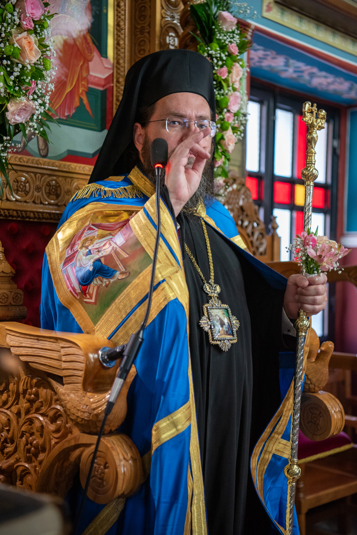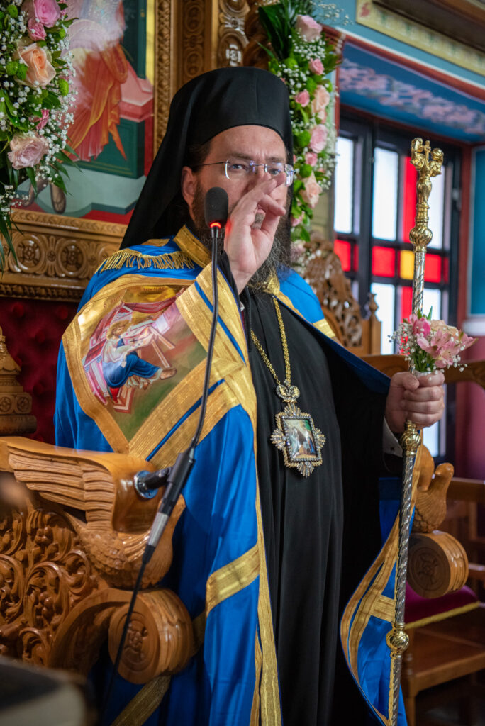 Εξήρε την αρετή της εγκράτειας για να ευχηθεί η Παναγία ως άνθος αφθαρσίας και ως στέφος εγκρατείας να σκηνώσει στη ζωή και να οδηγεί τα διαβήματα όλων και συνεχάρη τον δραστήριο Ιερέα π. Φίλιππο για την καλή του διακονία στις Ενορίες που υπηρετεί με ιερό ζήλο και αφοσίωση.