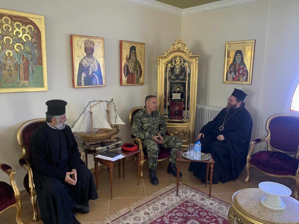 Τον νέο Διοικητή της 71ης Α/Μ Ταξιαρχίας “Πόντος” που εδρεύει στη Ν. Σάντα Κιλκίς, Ταξίαρχο κ. Χαράλαμπο Στραβοπόδη, υποδέχθηκε στο Επισκοπείο σήμερα, Τετάρτη 20 Μαρτίου 2024, ο Σεβασμιώτατος Μητροπολίτης Πολυανής και Κιλκισίου κ. Βαρθολομαίος, με κάθε τιμή και σεβασμό.