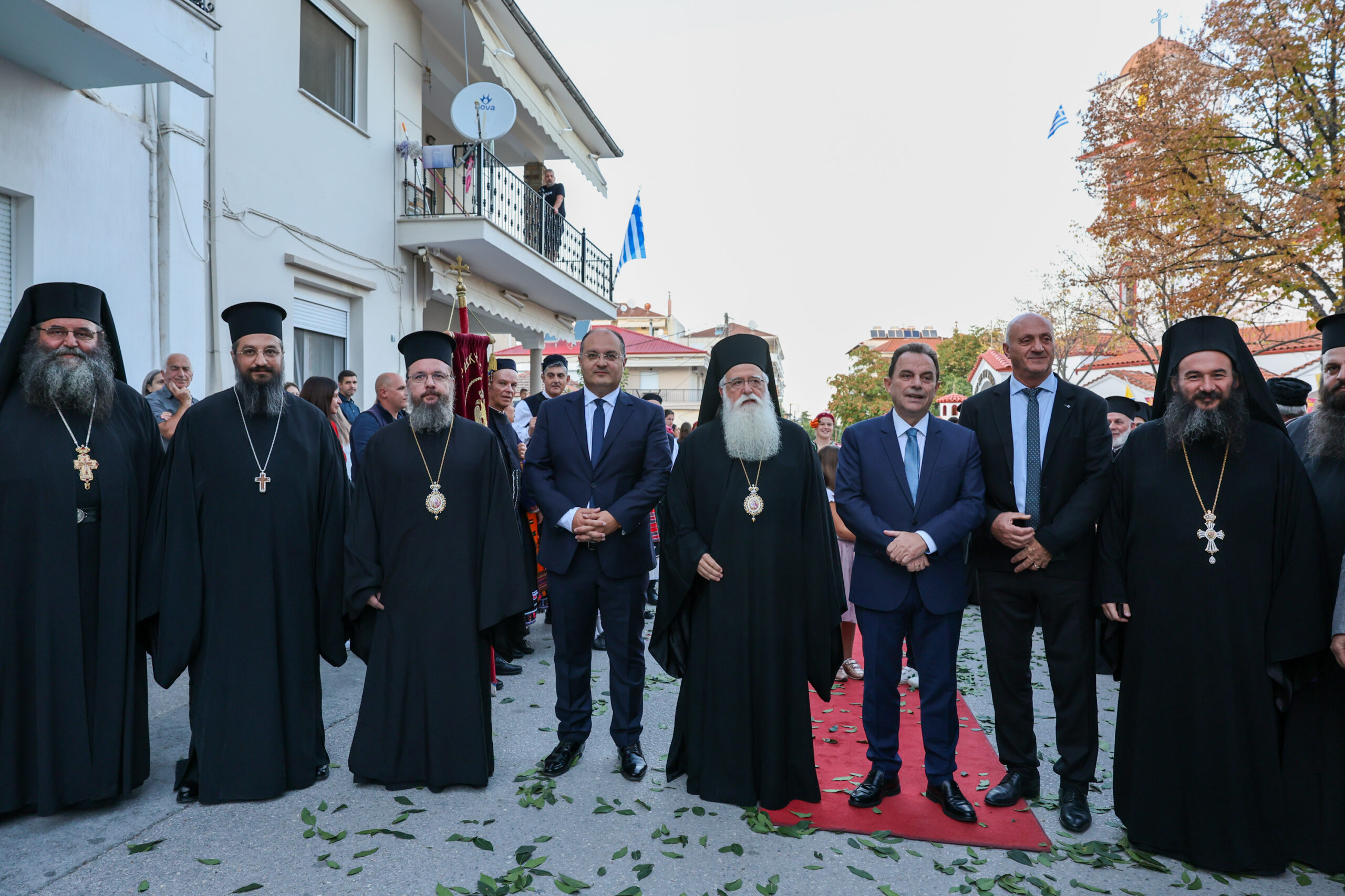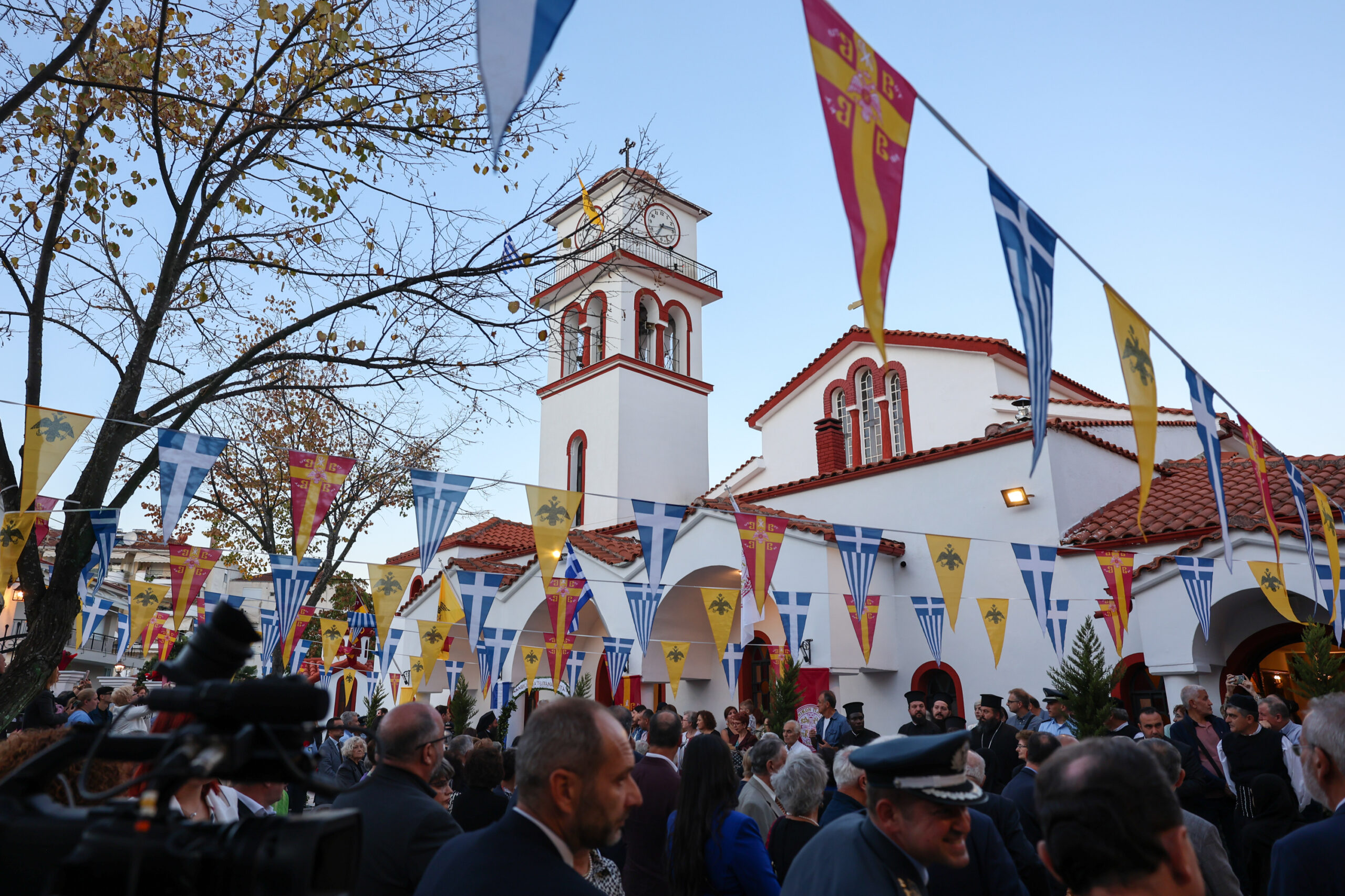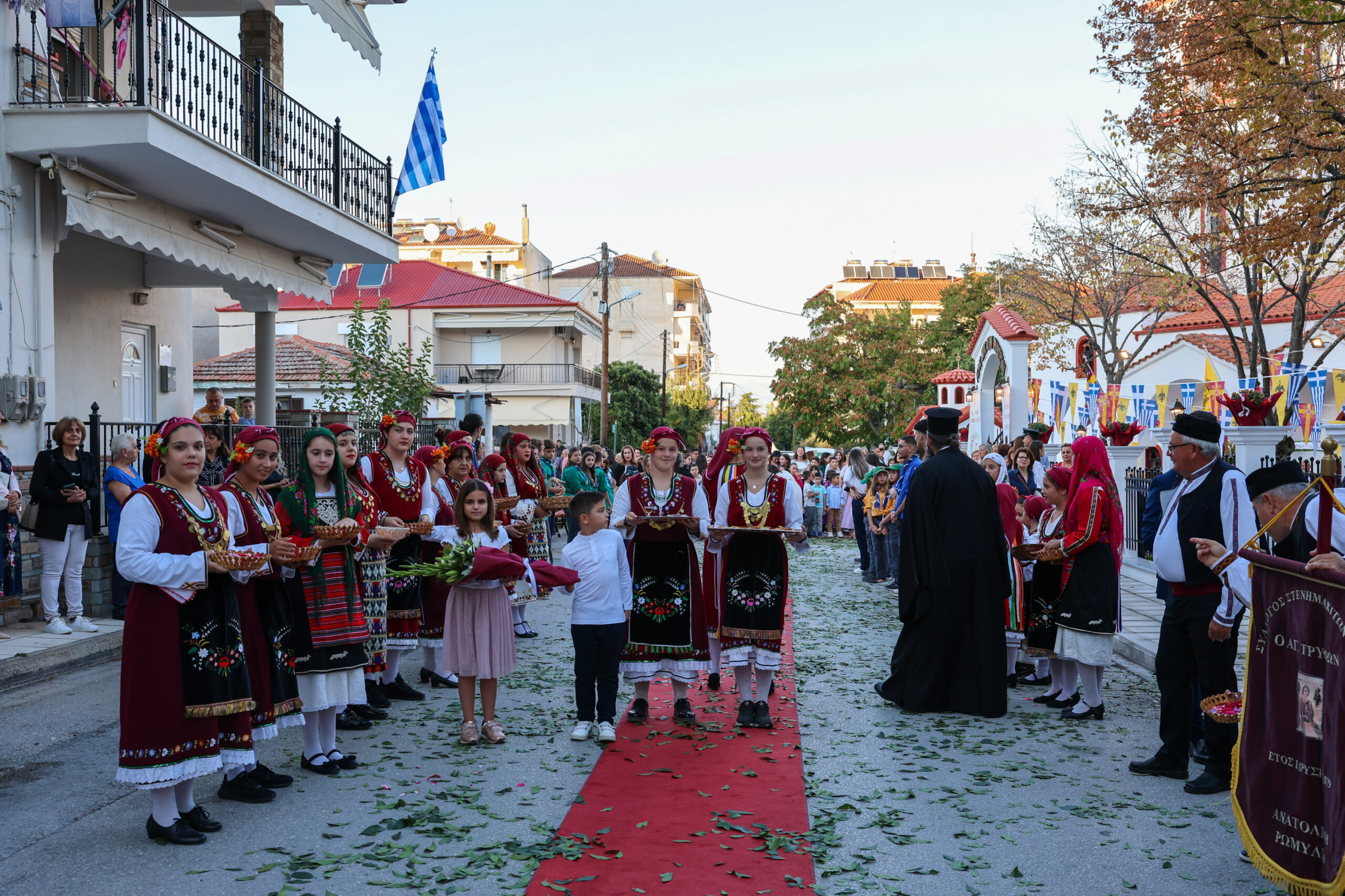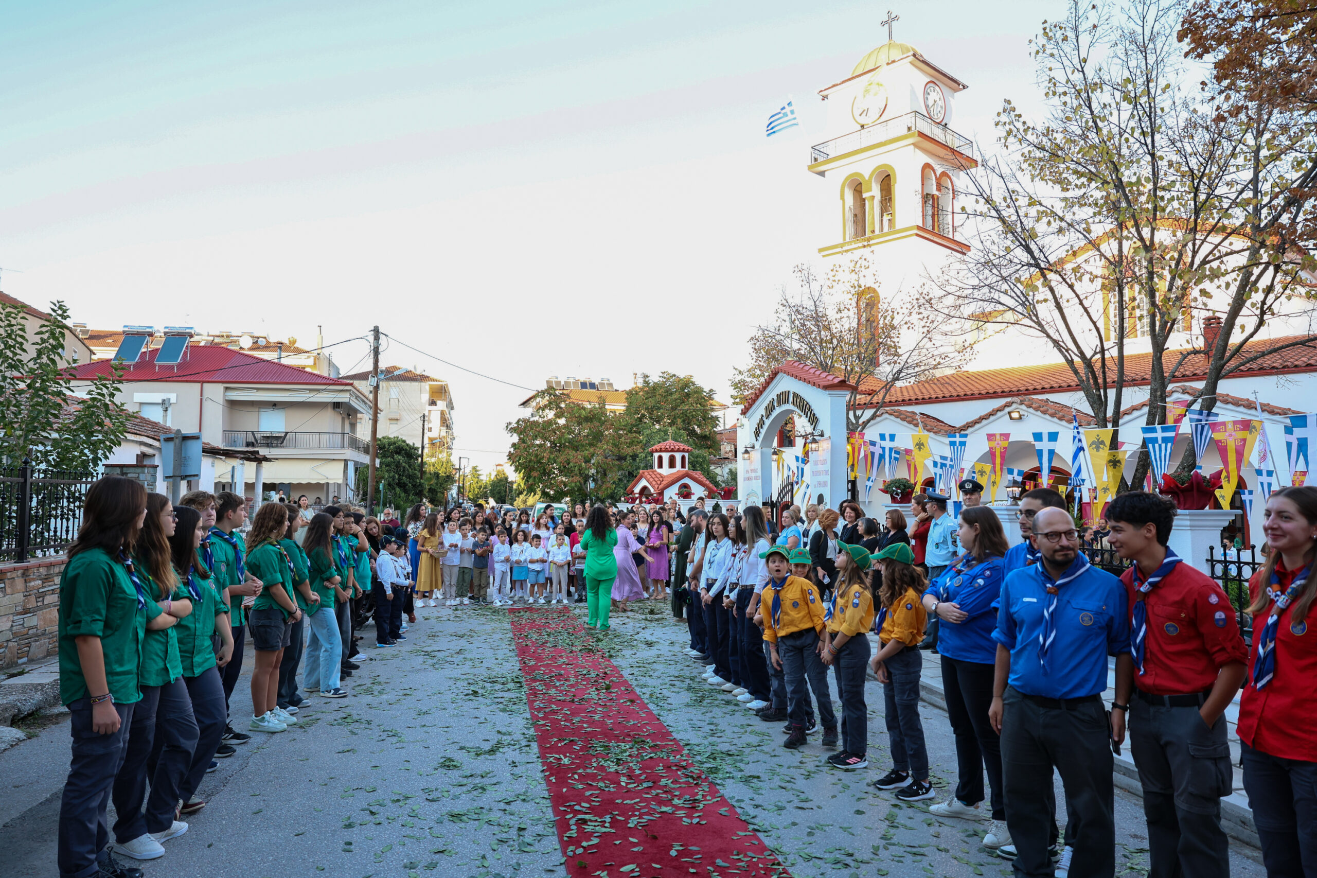 Στον ανακαινισμένο προαύλειο χώρο του Ιερού Ναού έγινε δεκτός από πλήθος ευσεβών πιστών, μεταξύ των οποίων πολλών μικρών παιδιών και νέων, που έσπευσαν να λάβουν την ευχή του και να ακούσουν τον πατρικό του λόγο.