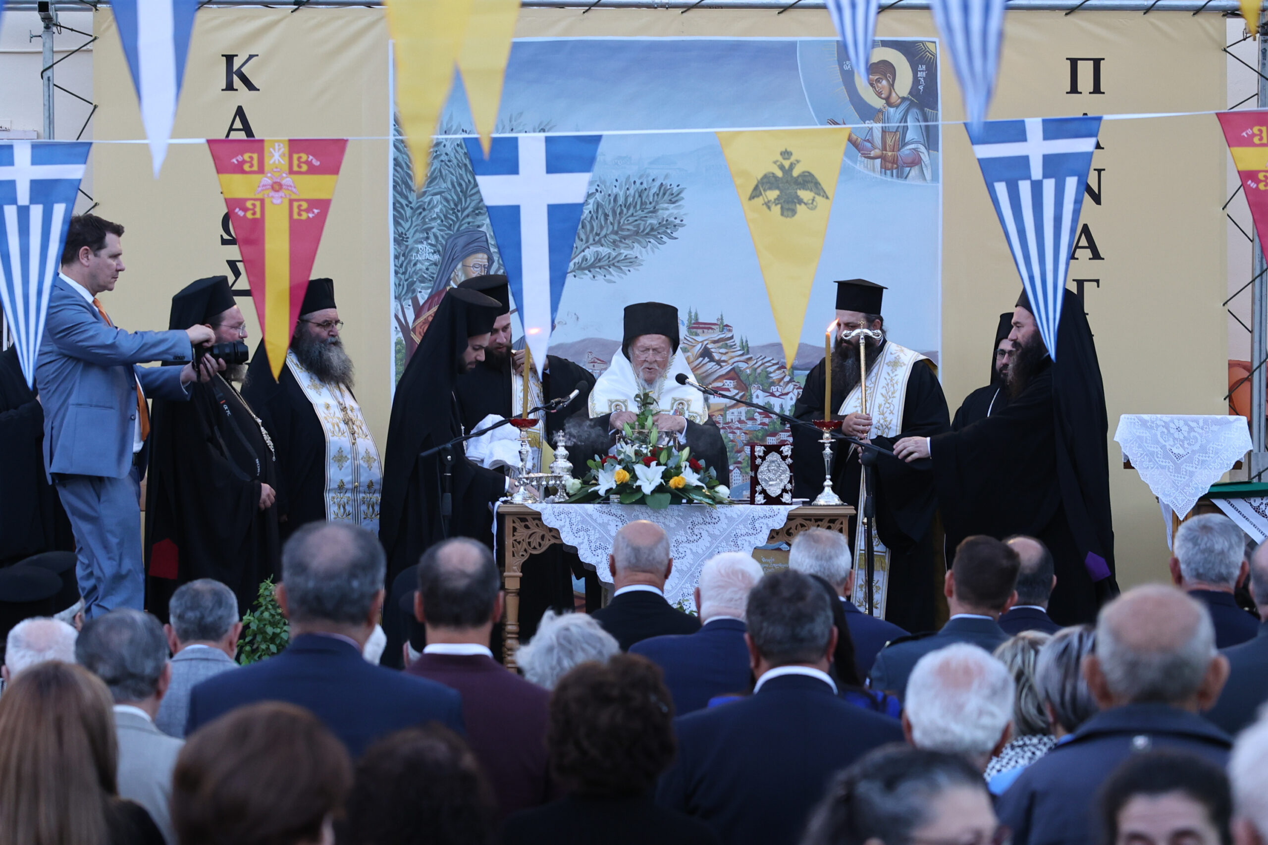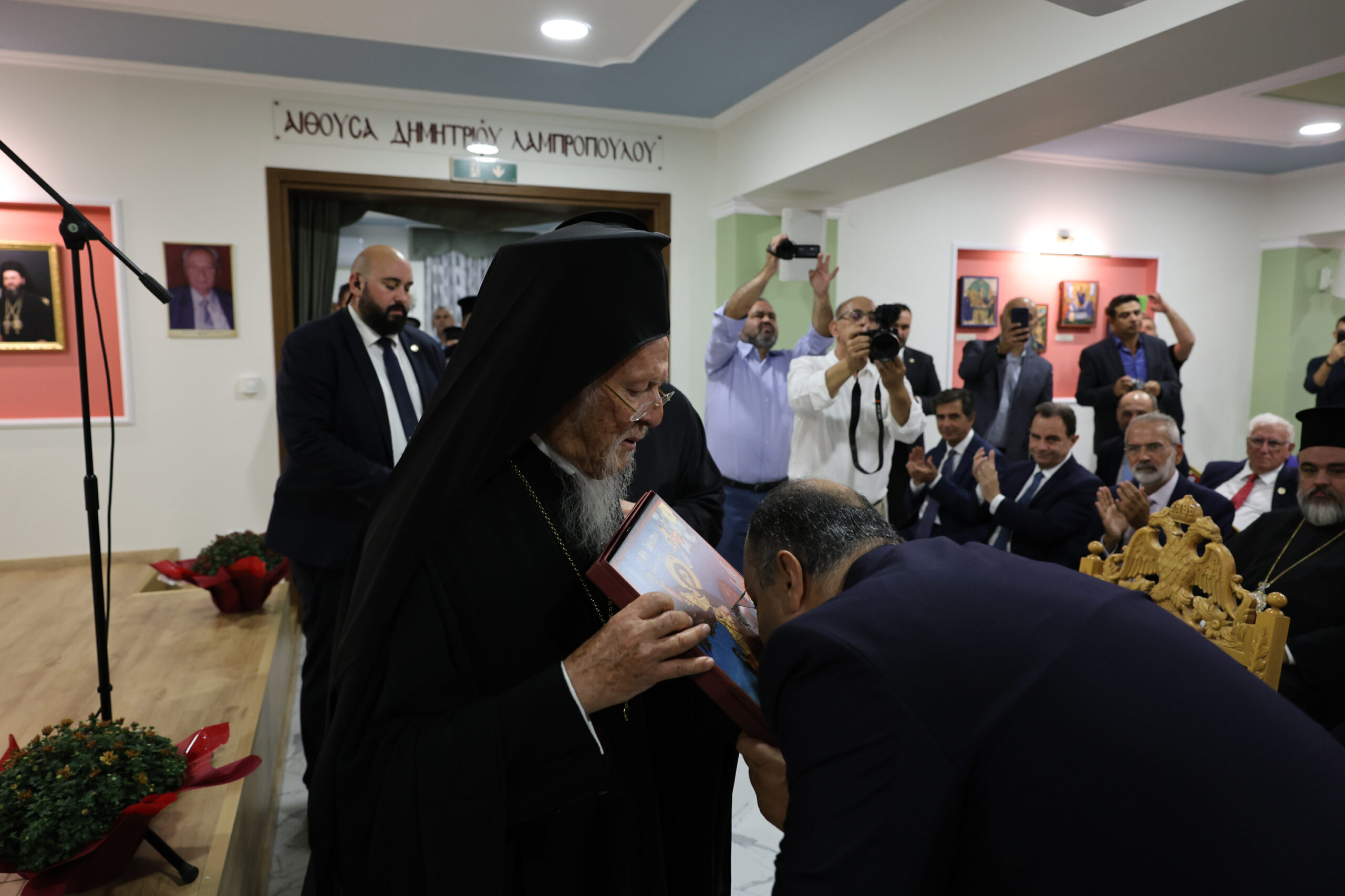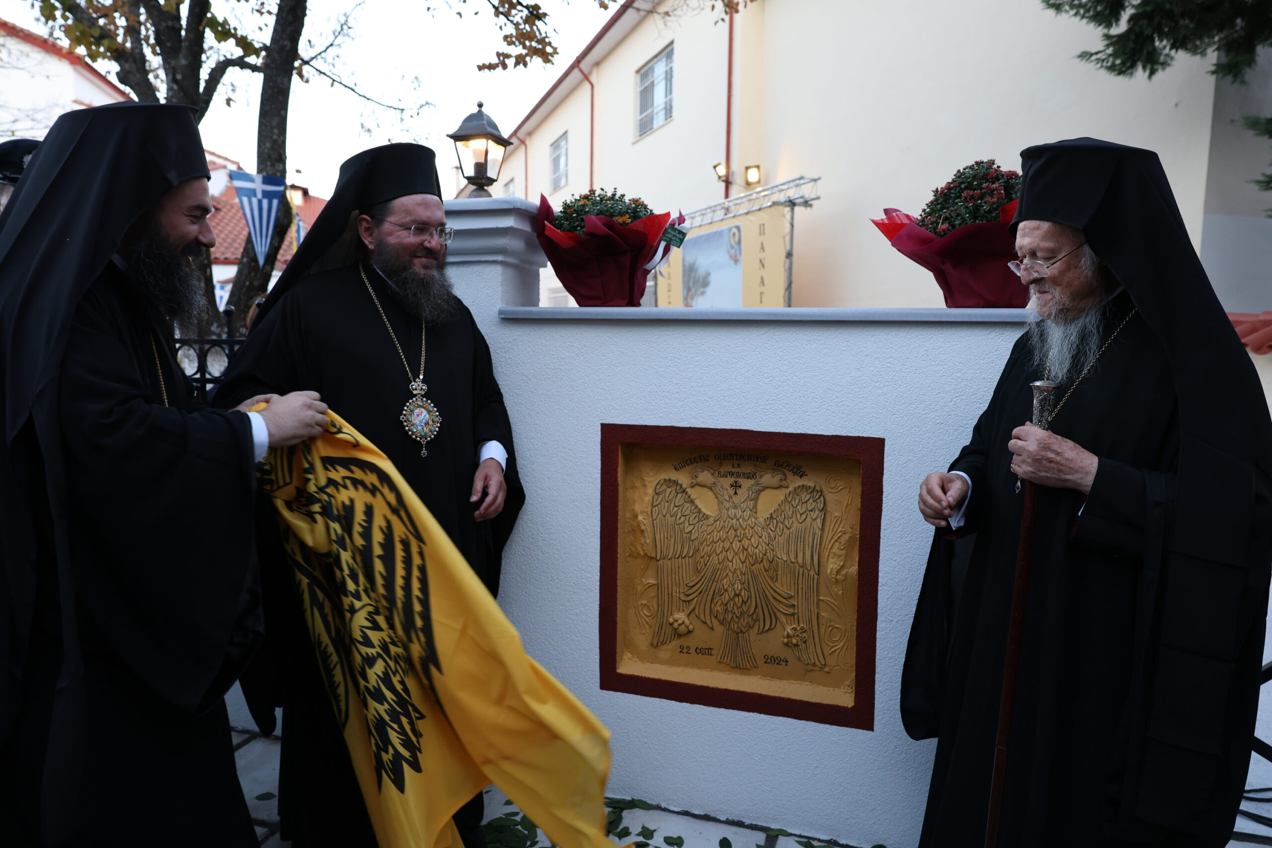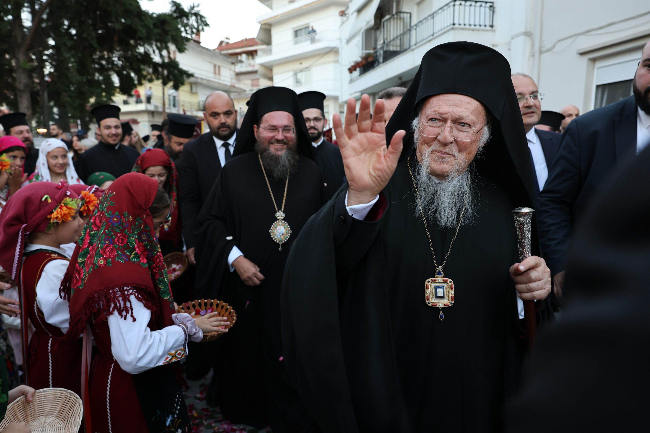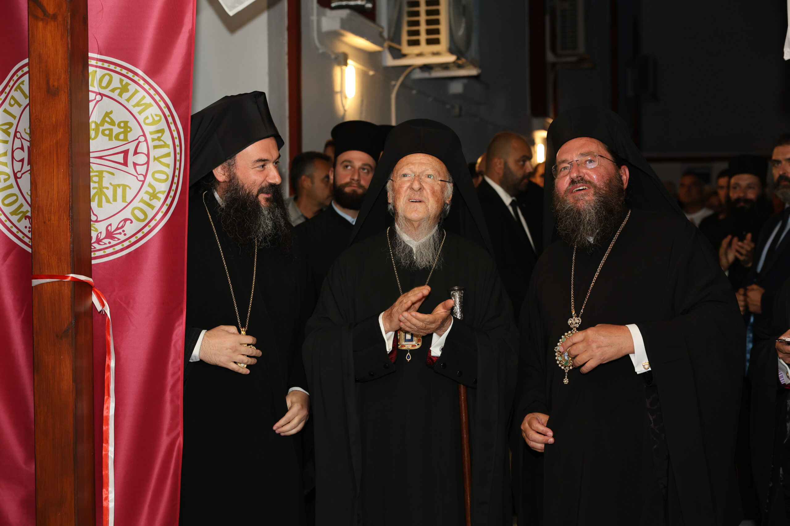 Εν συνεχεία ο Προϊστάμενος του Ναού και Πρωτοσύγκελλος της τοπικής Μητροπόλεως Παν. Αρχιμ. π. Επιφάνιος Θεοδωρίδης καλωσόρισε θερμά τον Οικουμενικό Πατριάρχη διερμηνεύοντας τα αισθήματα όλων των ενοριτών και παρουσίασε την συνοπτικά την ιστορία του Ναού από τον ερχομό των προσφύγων έως σήμερα καθώς και τις δράσεις που επιτελεί η Ενορία στο ποιμαντικό και φιλανθρωπικό της έργο, υπό την καθοδήγηση του Ποιμενάρχου κ Βαρθολομαίου.