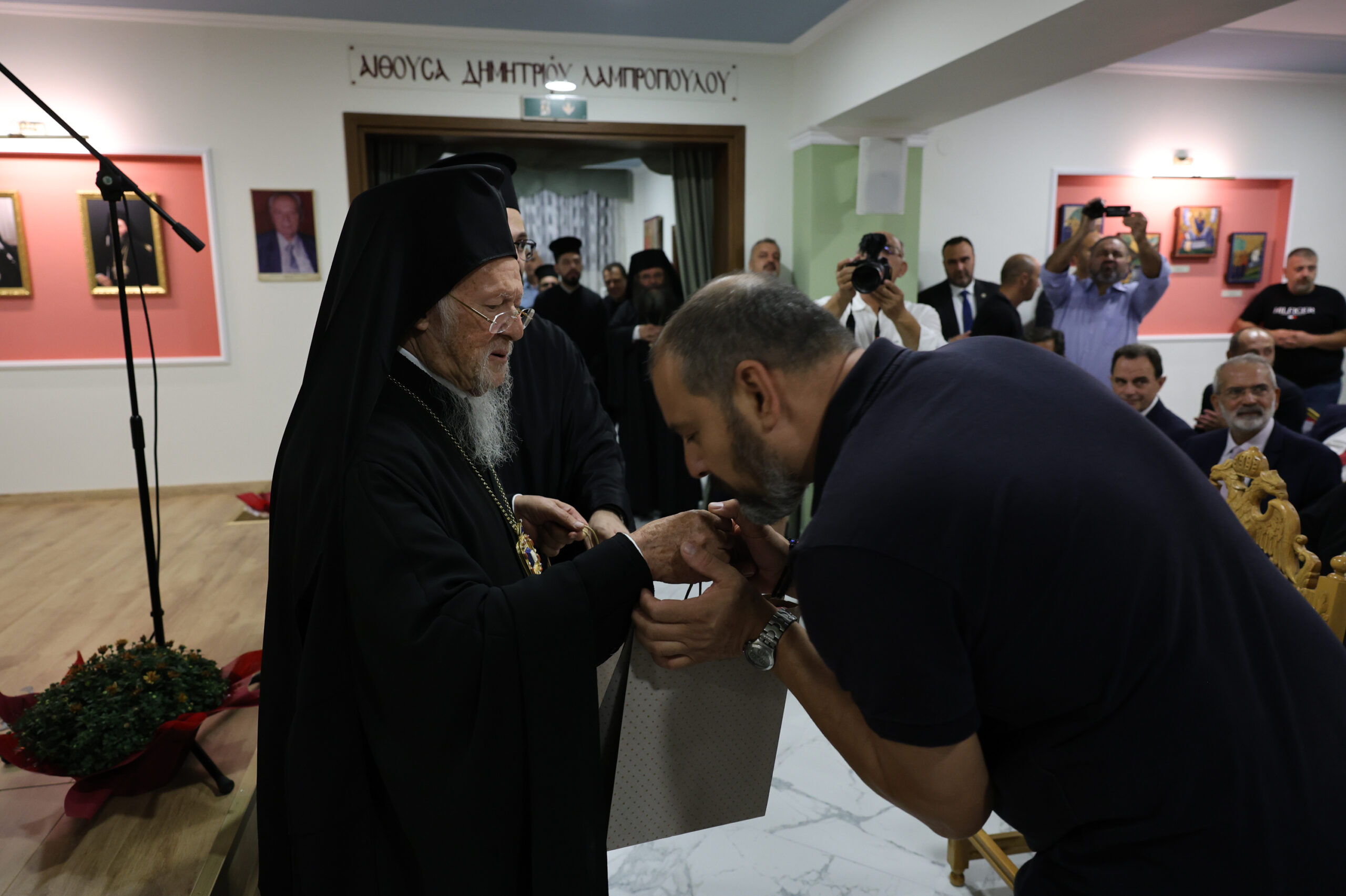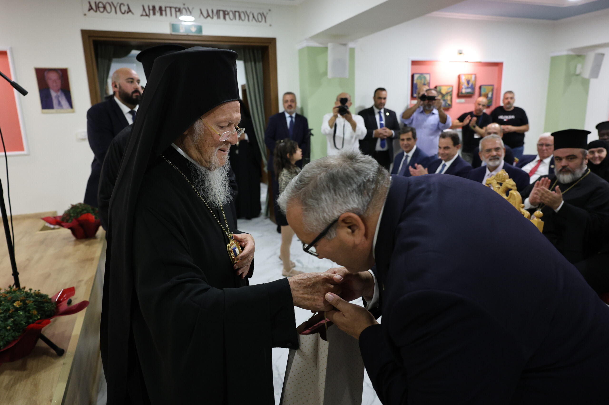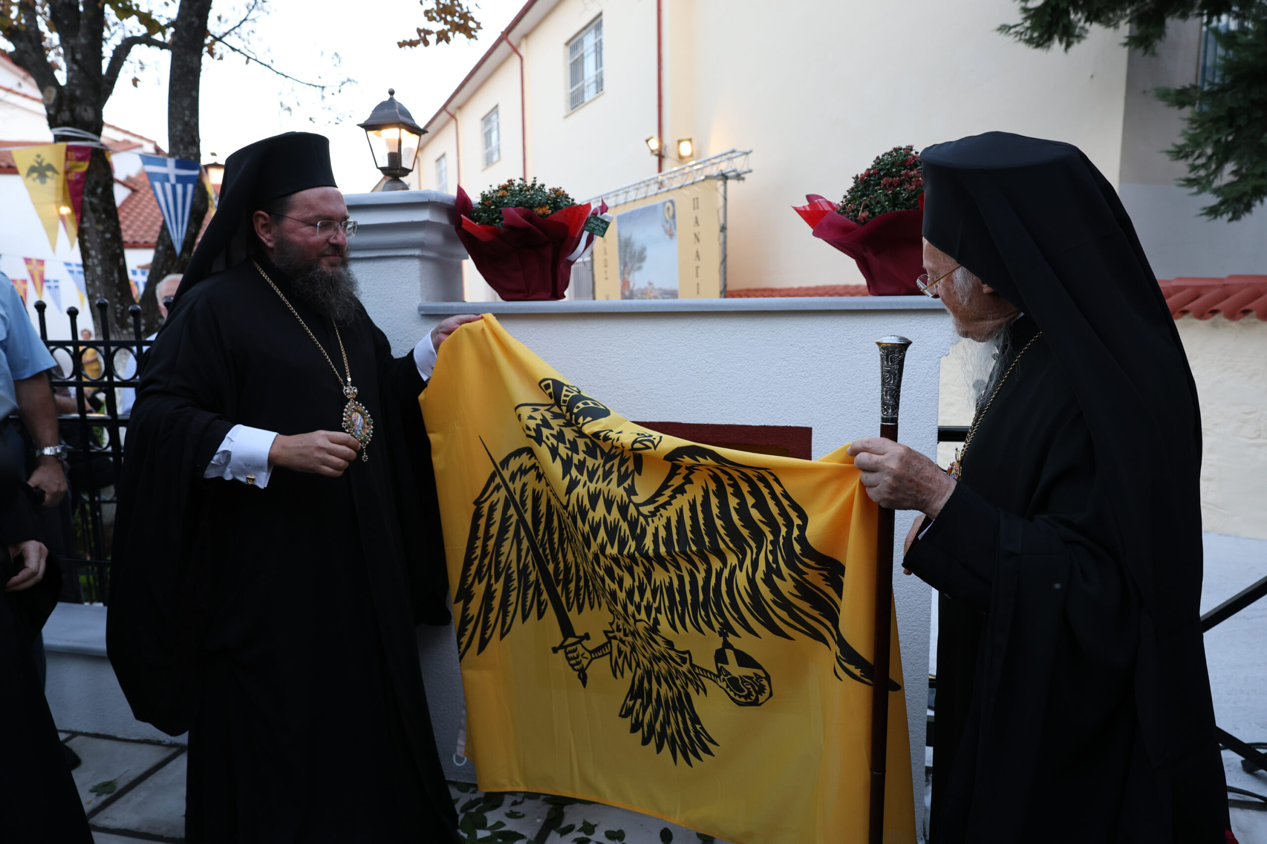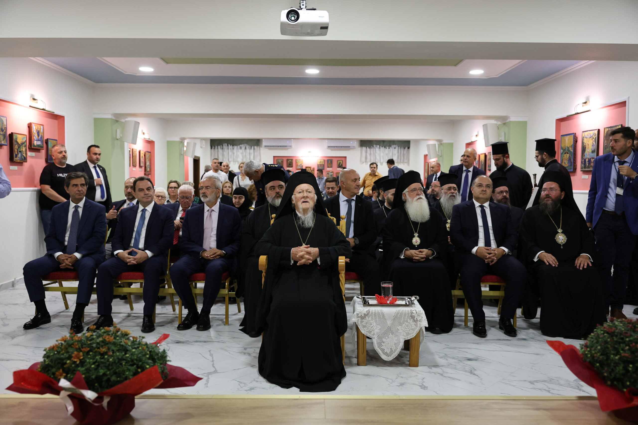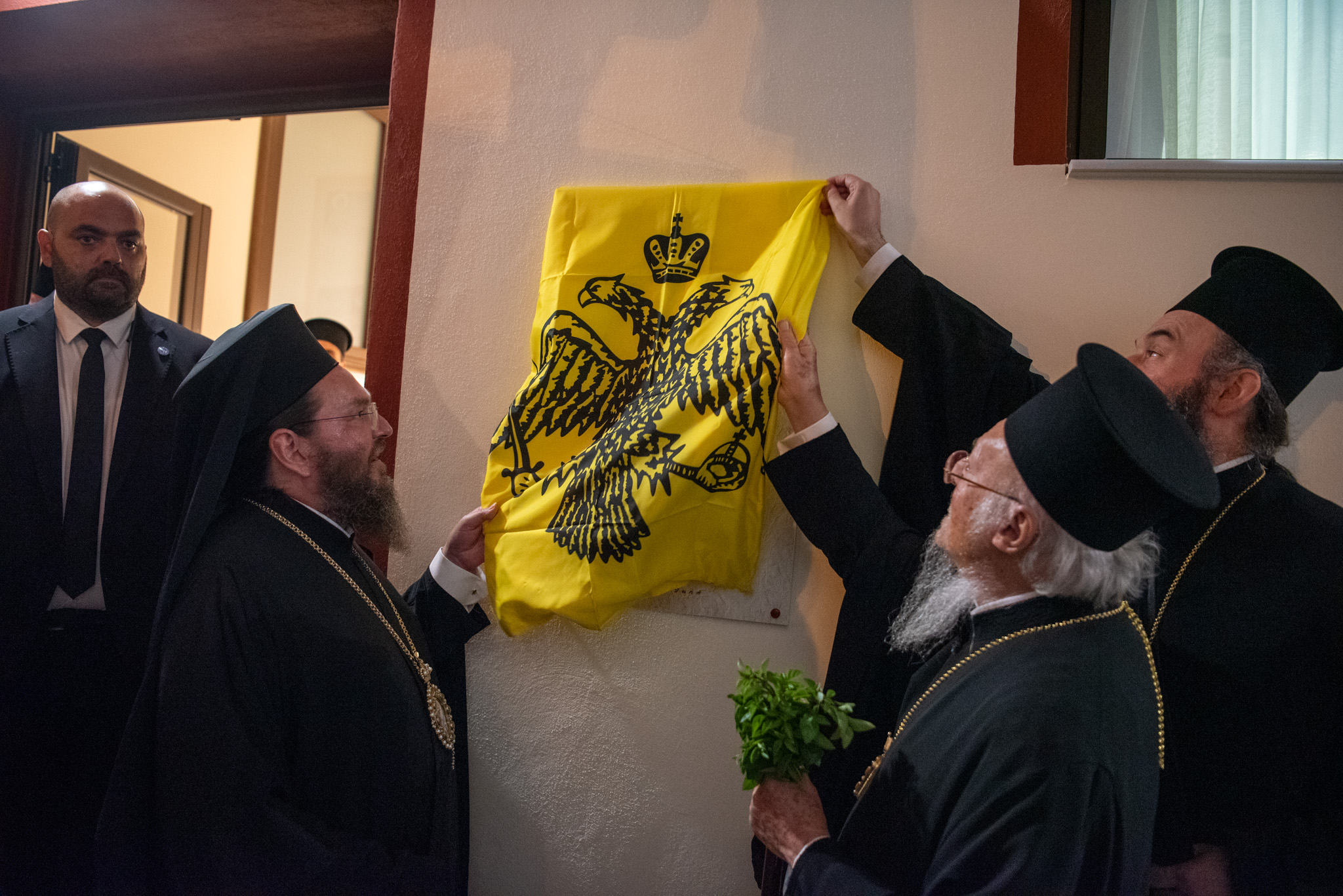 Εν συνεχεία ο Προϊστάμενος του Ναού και Πρωτοσύγκελλος της τοπικής Μητροπόλεως Παν. Αρχιμ. π. Επιφάνιος Θεοδωρίδης καλωσόρισε θερμά τον Οικουμενικό Πατριάρχη διερμηνεύοντας τα αισθήματα όλων των ενοριτών και παρουσίασε την συνοπτικά την ιστορία του Ναού από τον ερχομό των προσφύγων έως σήμερα καθώς και τις δράσεις που επιτελεί η Ενορία στο ποιμαντικό και φιλανθρωπικό της έργο, υπό την καθοδήγηση του Ποιμενάρχου κ Βαρθολομαίου.