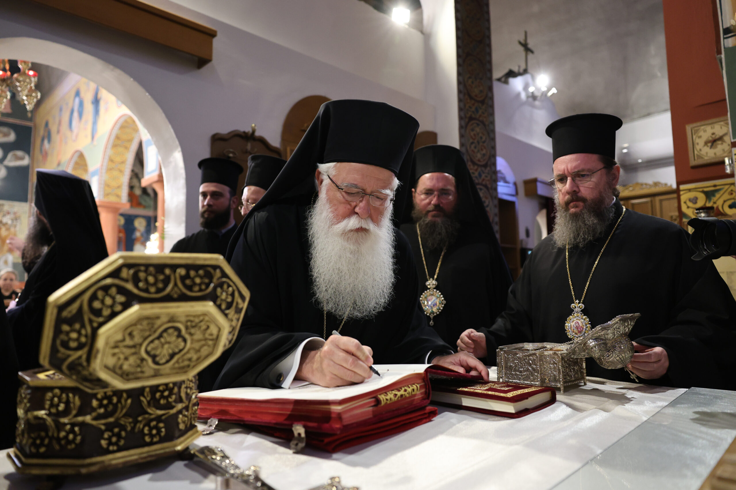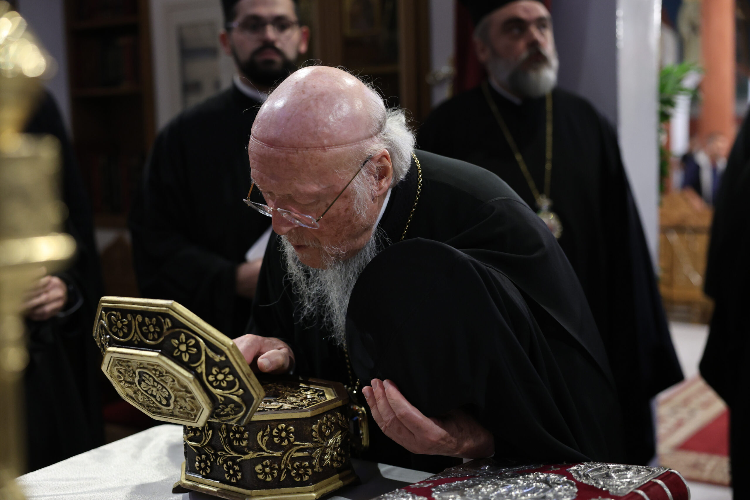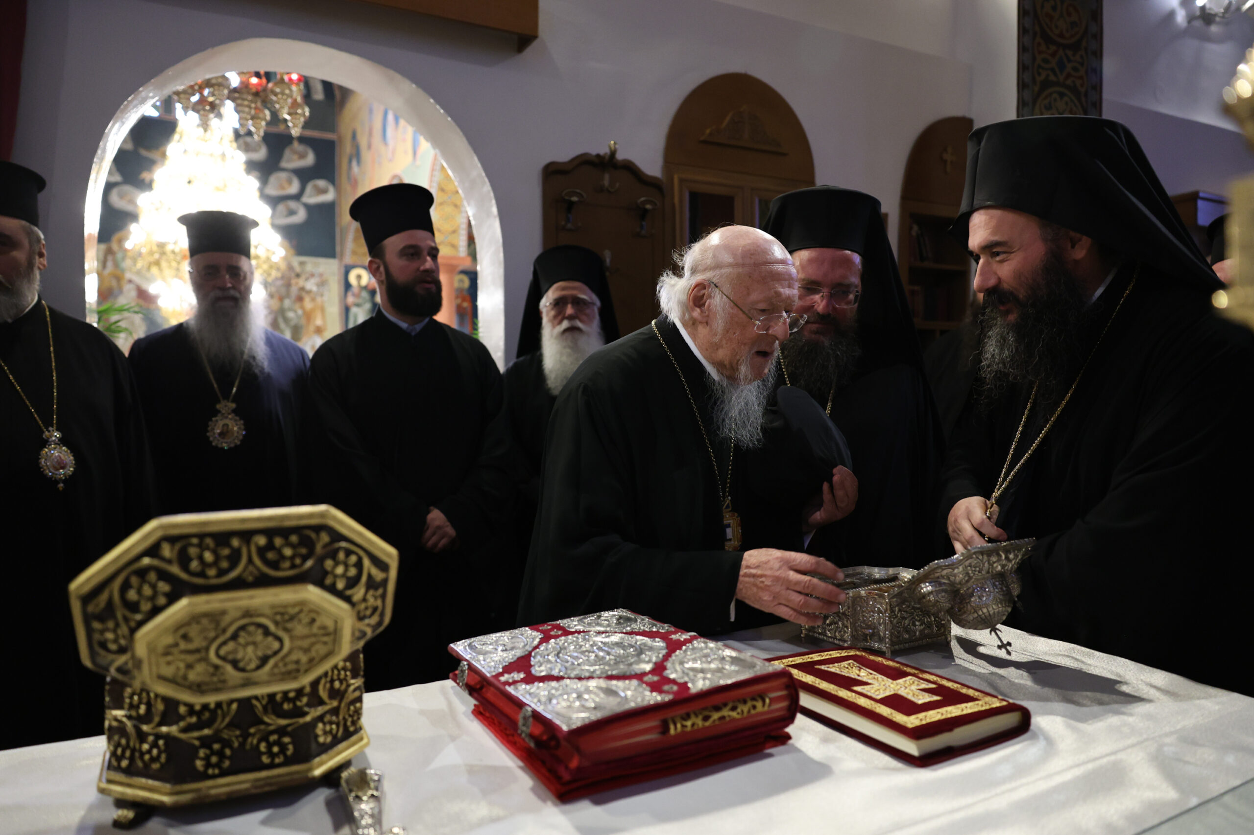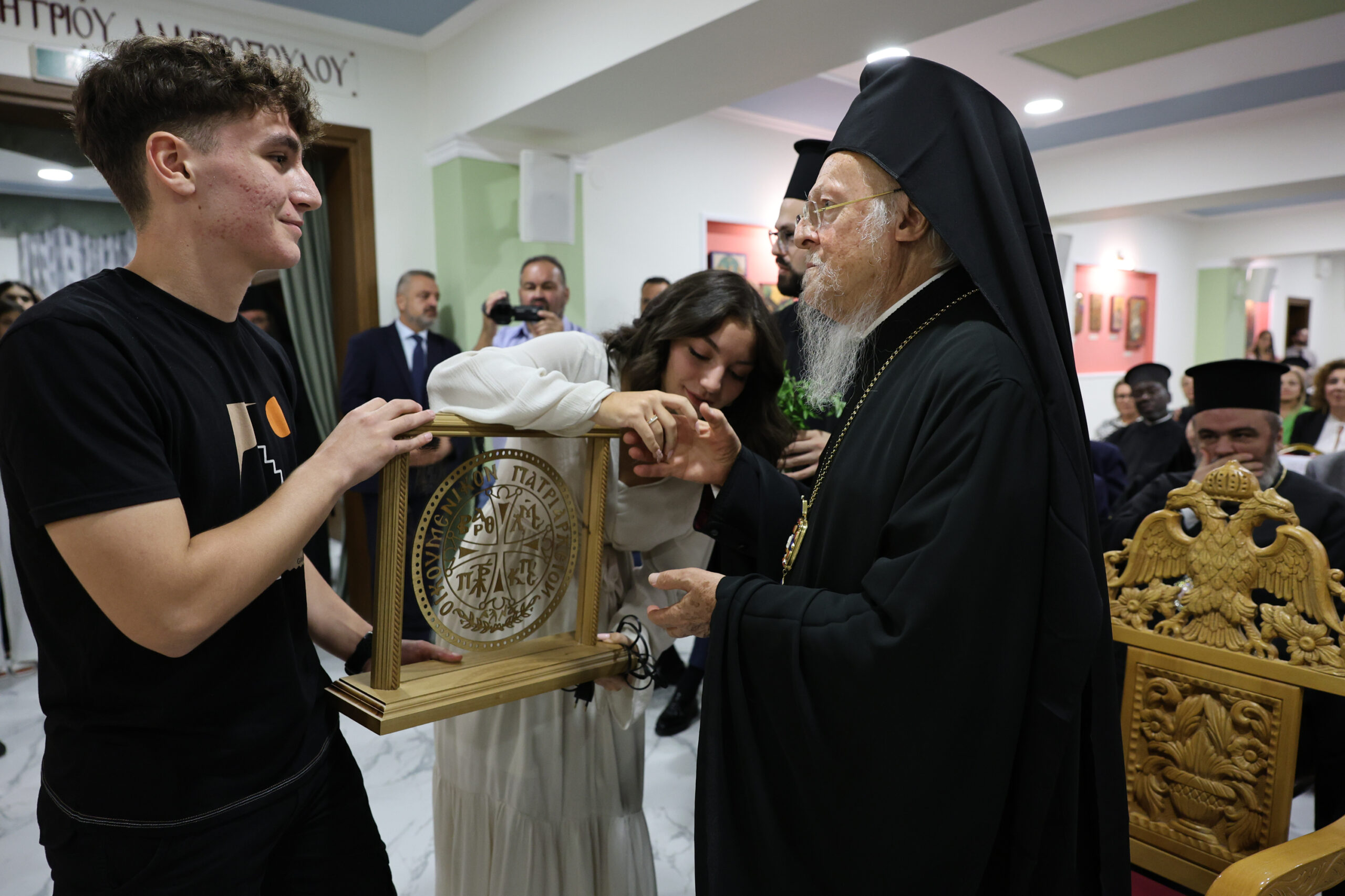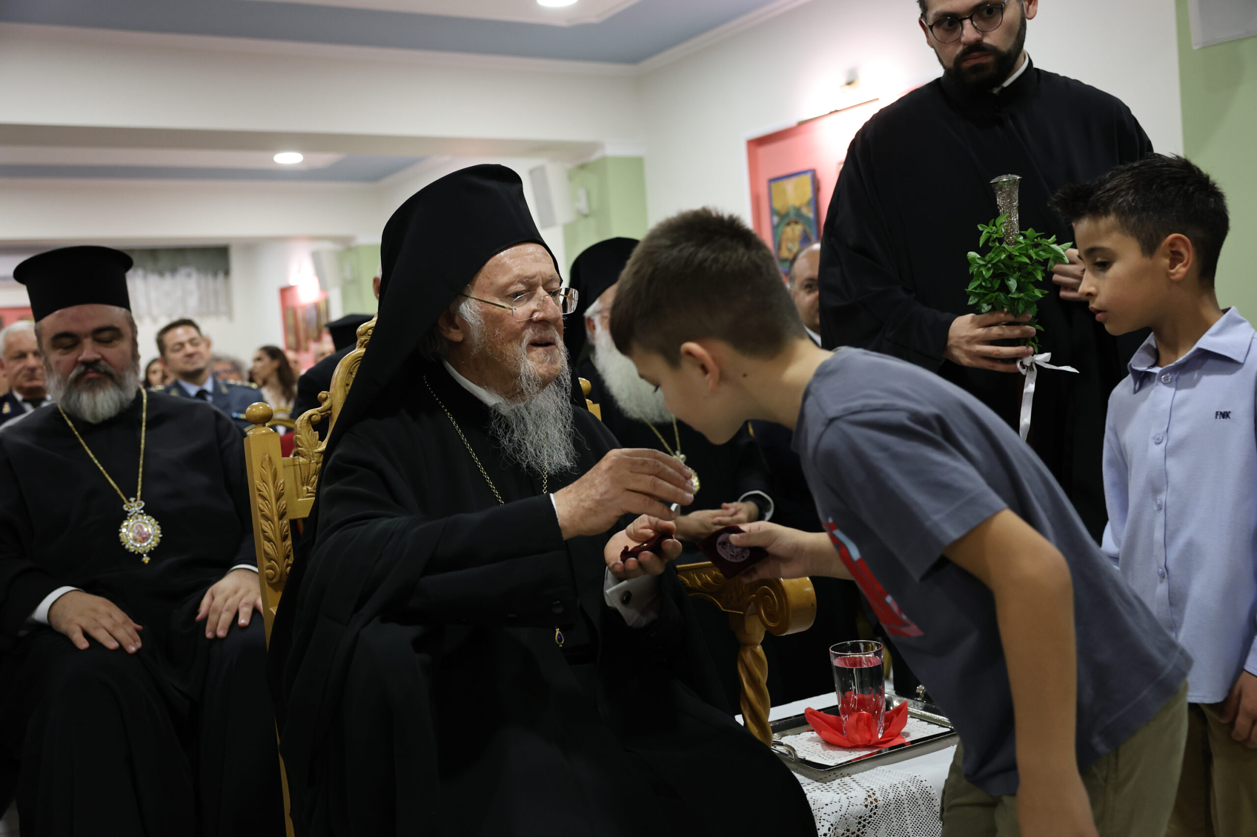 Την ιδιαίτερη χαρά του που βρίσκεται στην Ενορία του Μυροβλήτου Αγίου εξέφρασε ο Παναγιώτατος στην αντιφώνησή του, υπογραμμίζοντας την αξία των κατηχητικών, καθώς είναι ανάγκη επαναβαπτισμού στα νάματα της ευσεβείας.