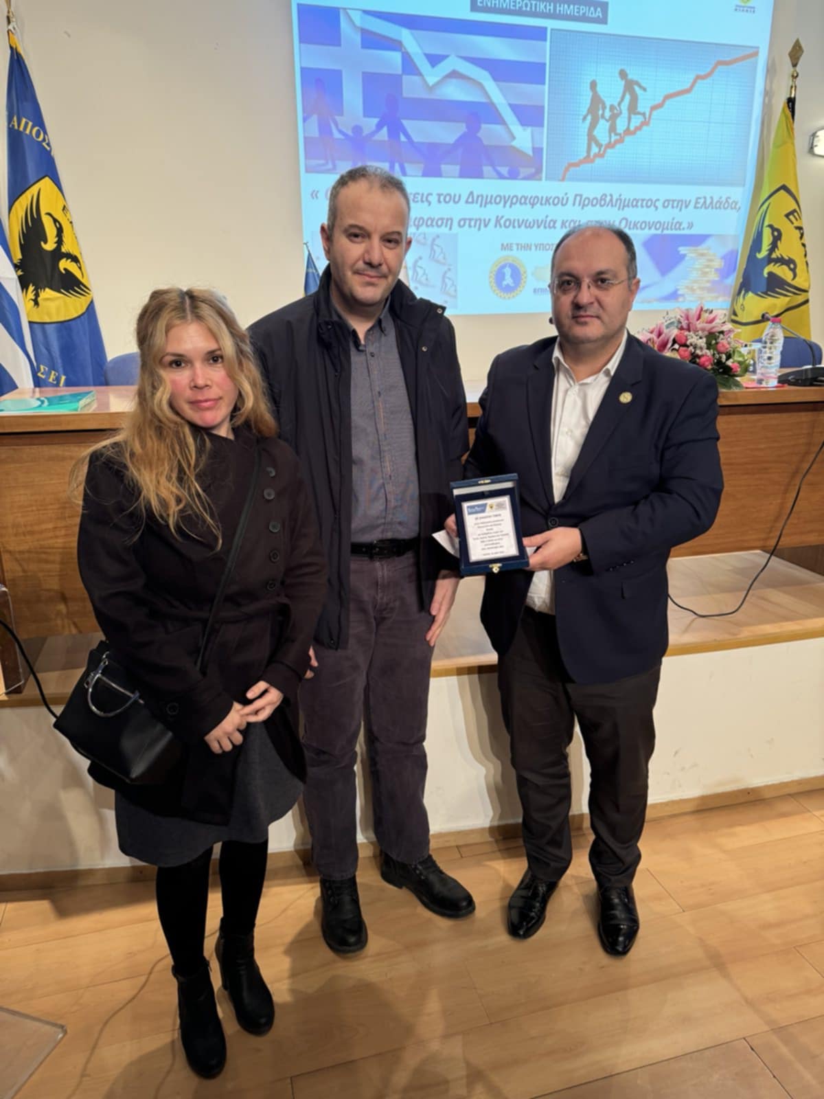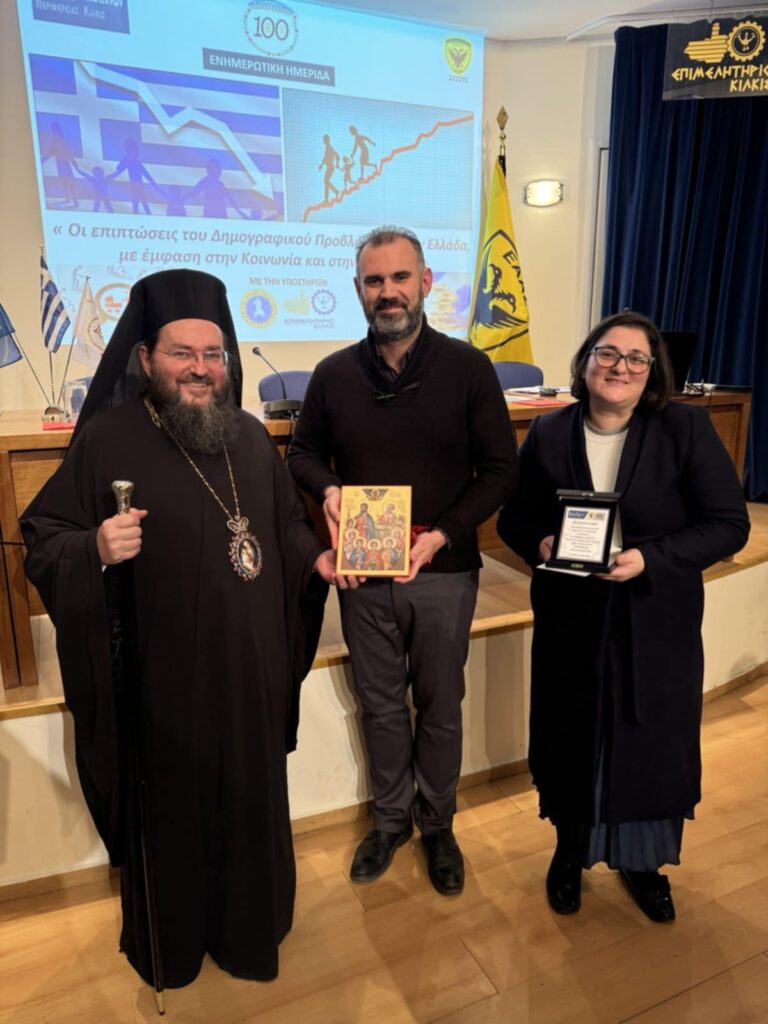 Ενημερωτική ημερίδα με θέμα τις επιπτώσεις του Δημογραφικού προβλήματος στην Ελλάδα, με έμφαση στην Κοινωνία και στην Οικονομία πραγματοποίησε η Ένωση Απόστρατων Αξιωματικών – Παράρτημα Κιλκίς και ο Σύλλογος Πολυτέκνων Περιφέρειας Κιλκίς, το πρωί της Κυριακής 22 Δεκεμβρίου 2024, στην αίθουσα του Επιμελητηρίου Κιλκίς.